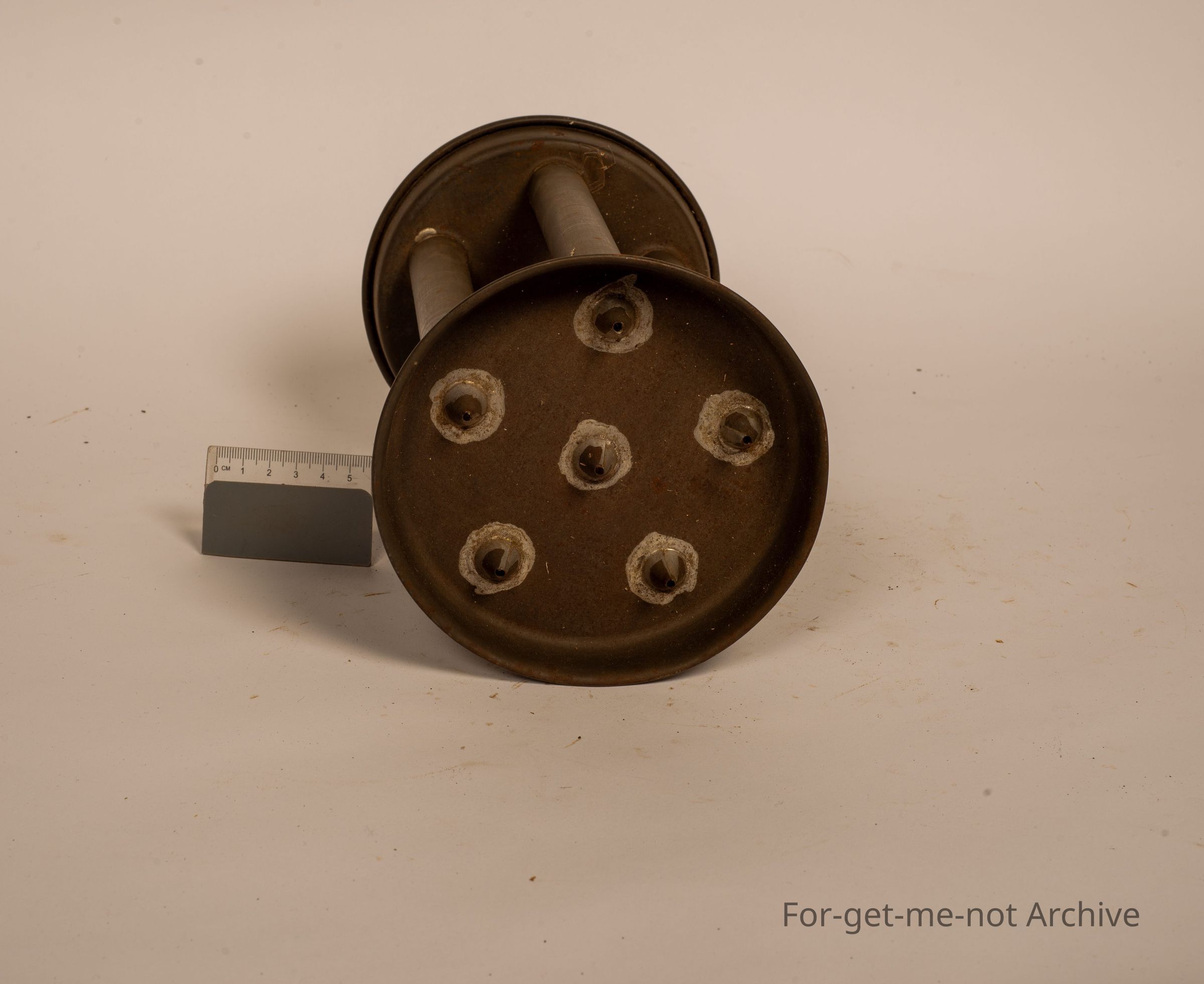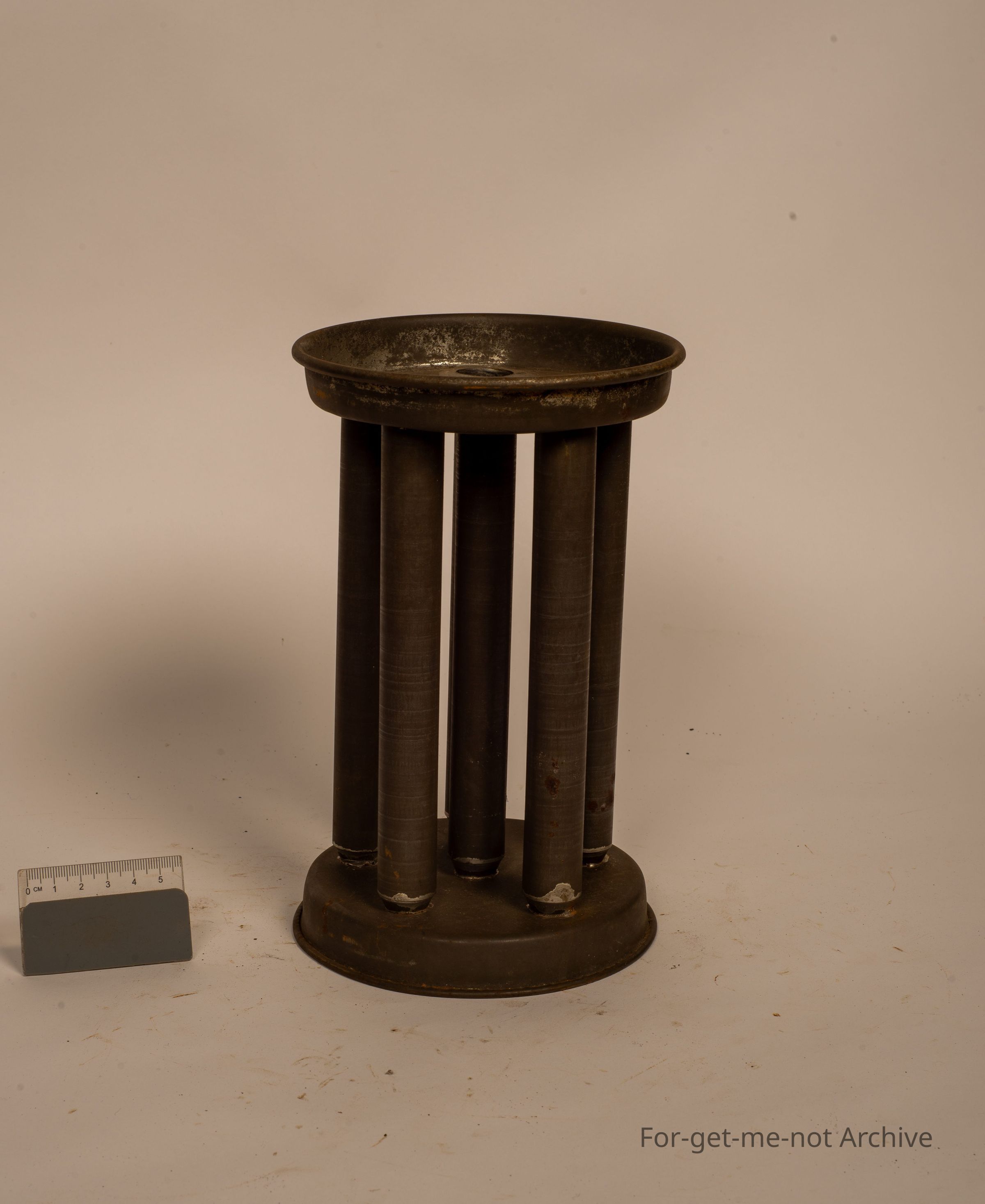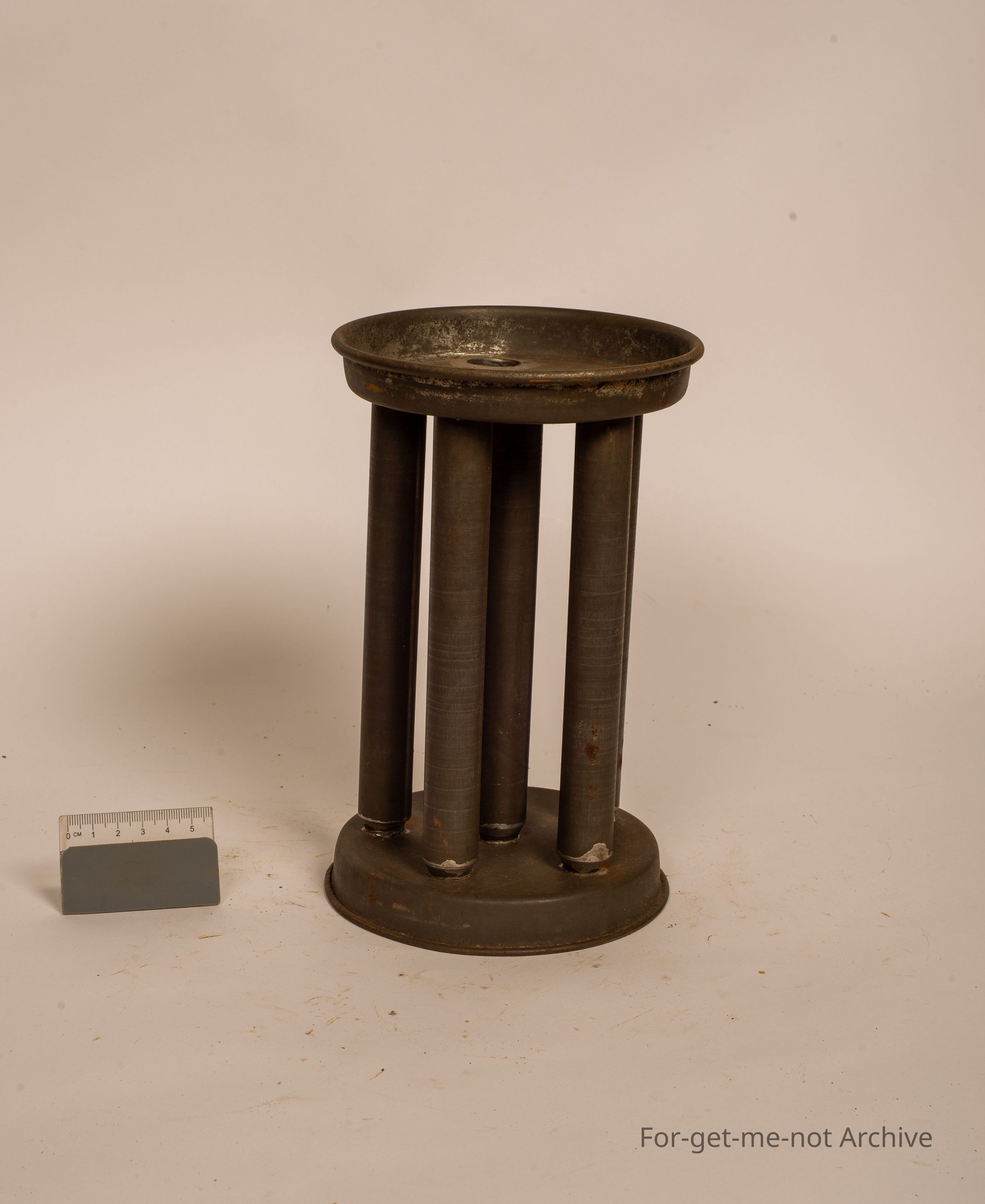 This is a tinware circular candle mold. Does 6 candles at once. Unusual to see a circular one. They're usually always rectangular or square. This one's in beautiful condition.