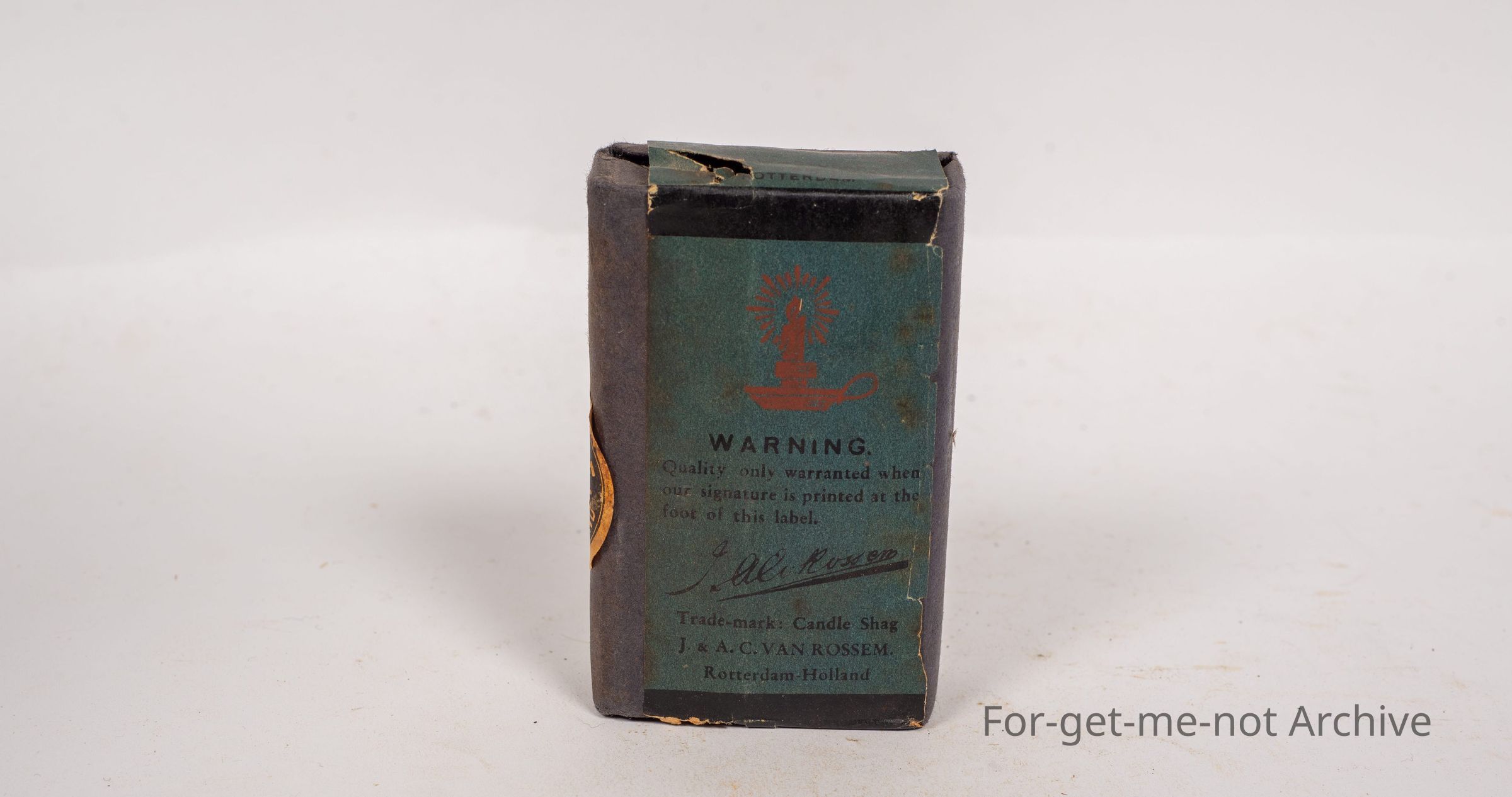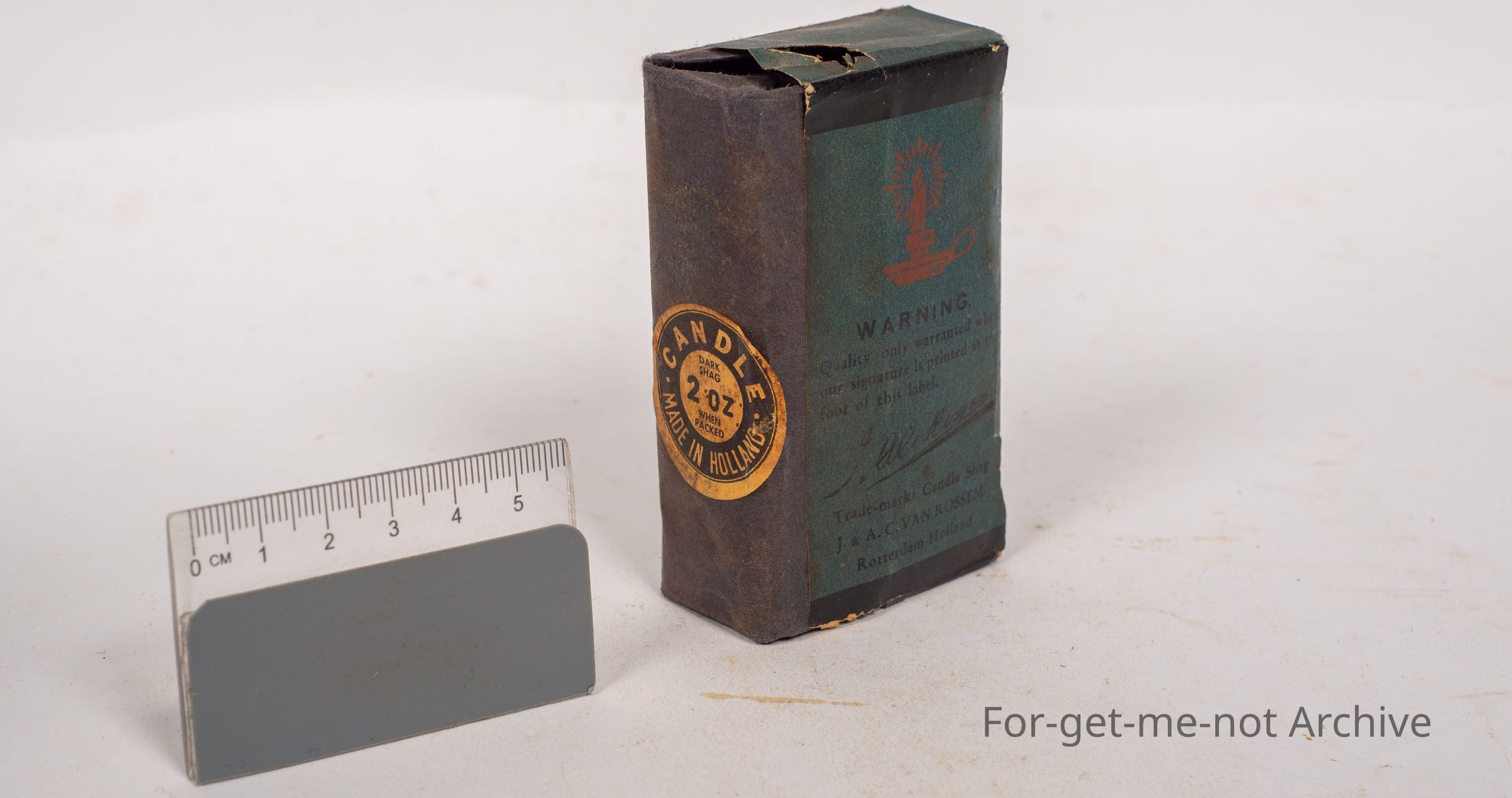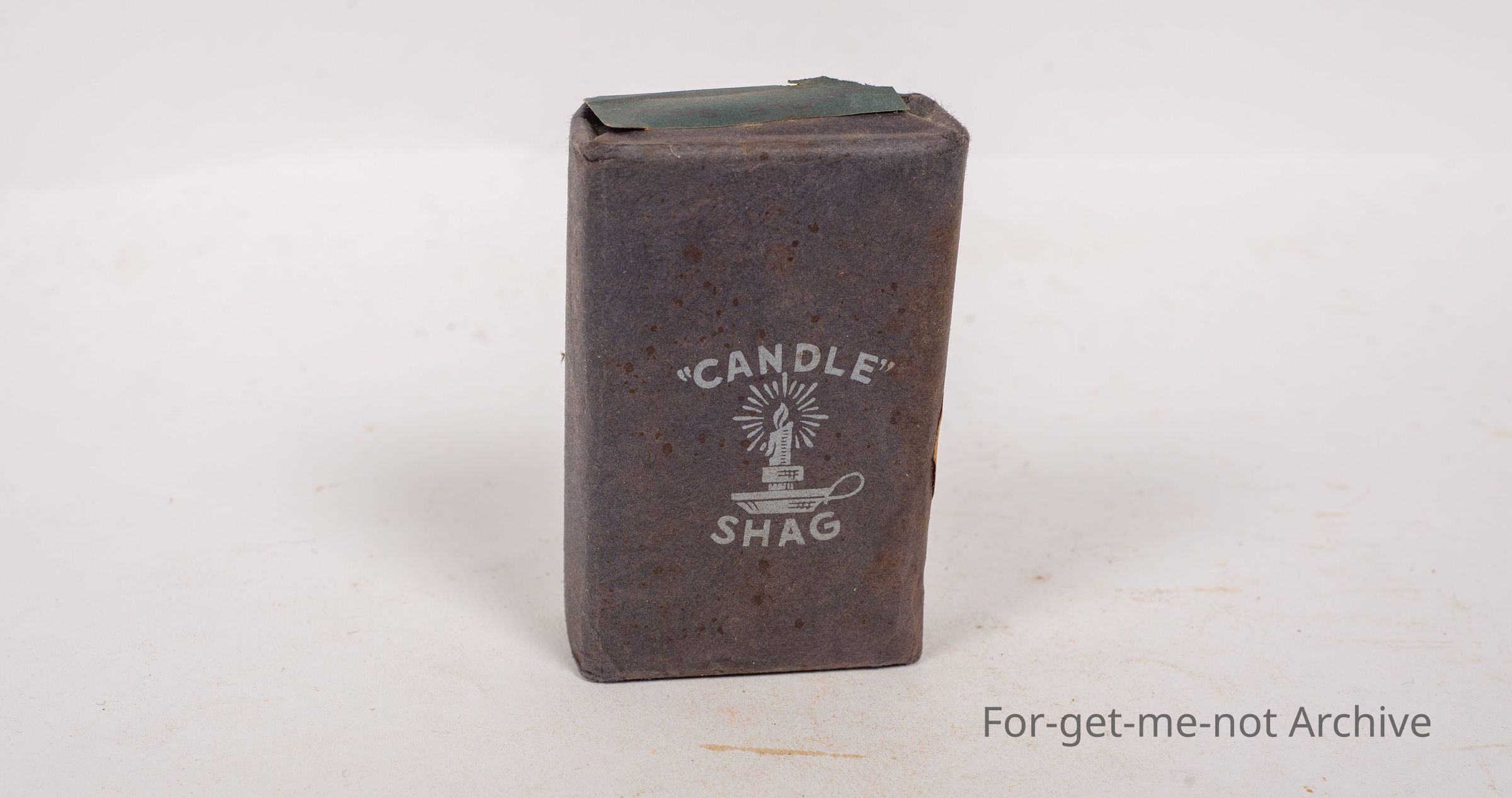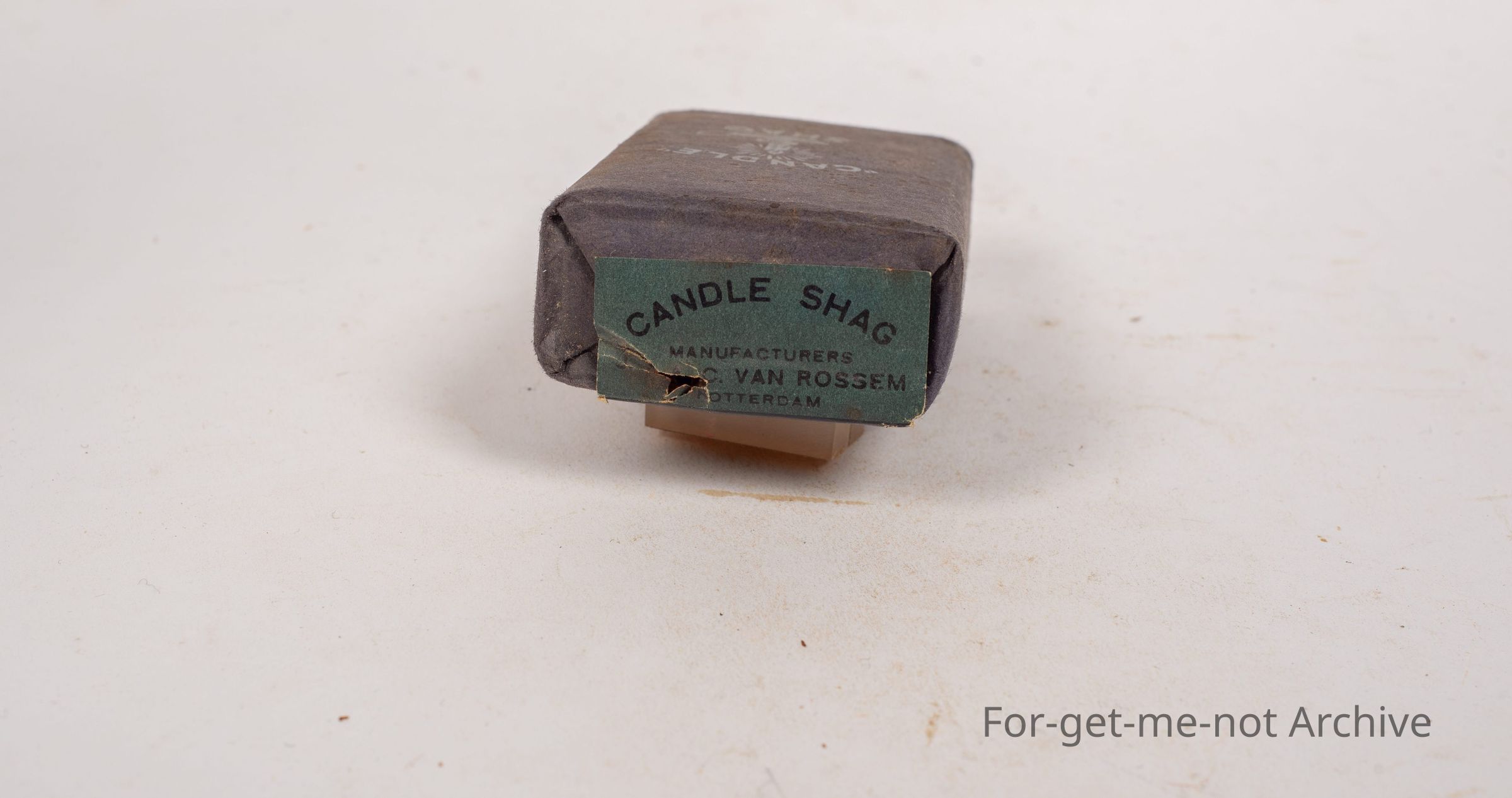 Paper wrapped block of candle, 2 ounce dark shag tobacco made in Holland called candle shag