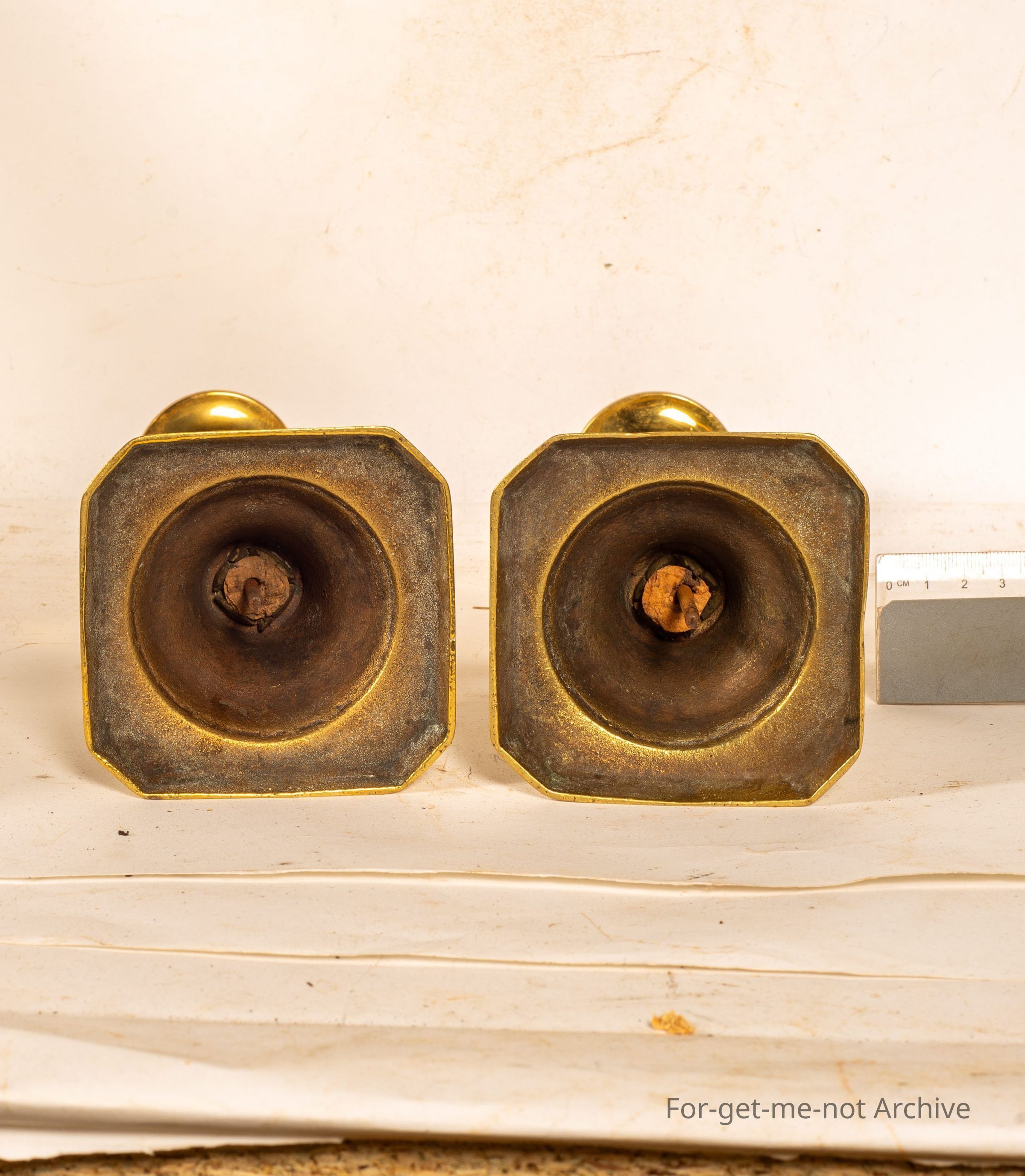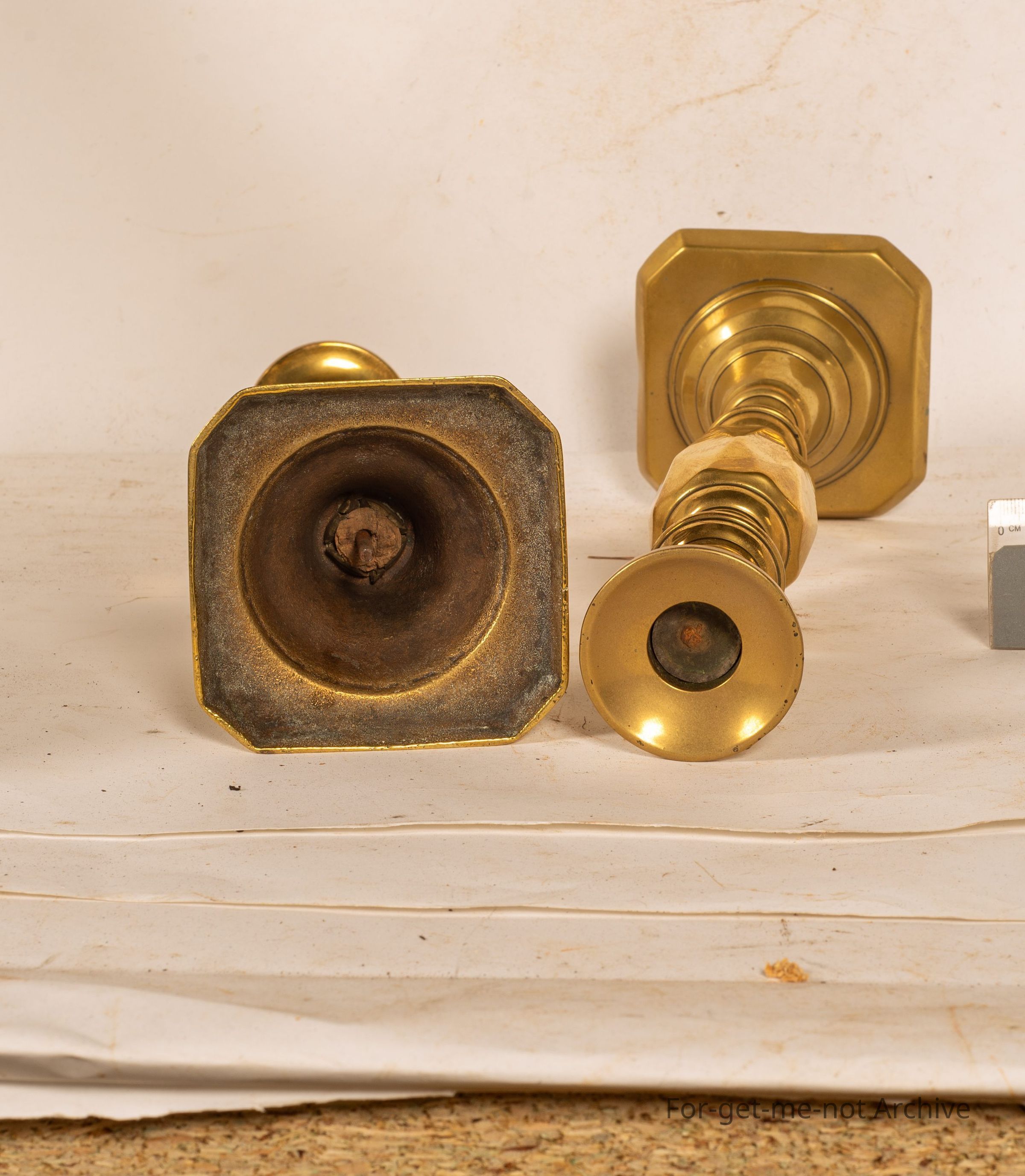 Sangeet Collection. These are 2 brass early candlesticks from the series of King, Queen. These 2 are known as the Prince. A pair of Prince candlesticks with the thrust, the push candle lifter intact underneath.Collection