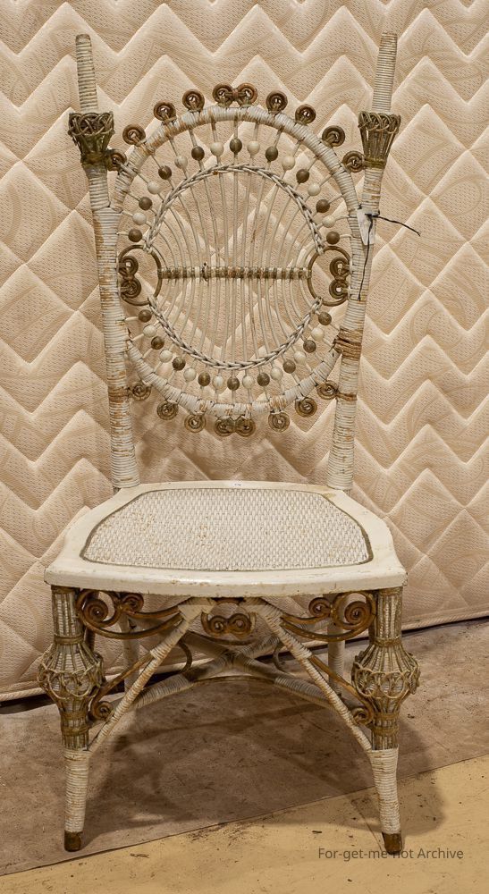 very ornate chair with white enamel paint on the seat, probably from the ballarat cane shop in Sturt street