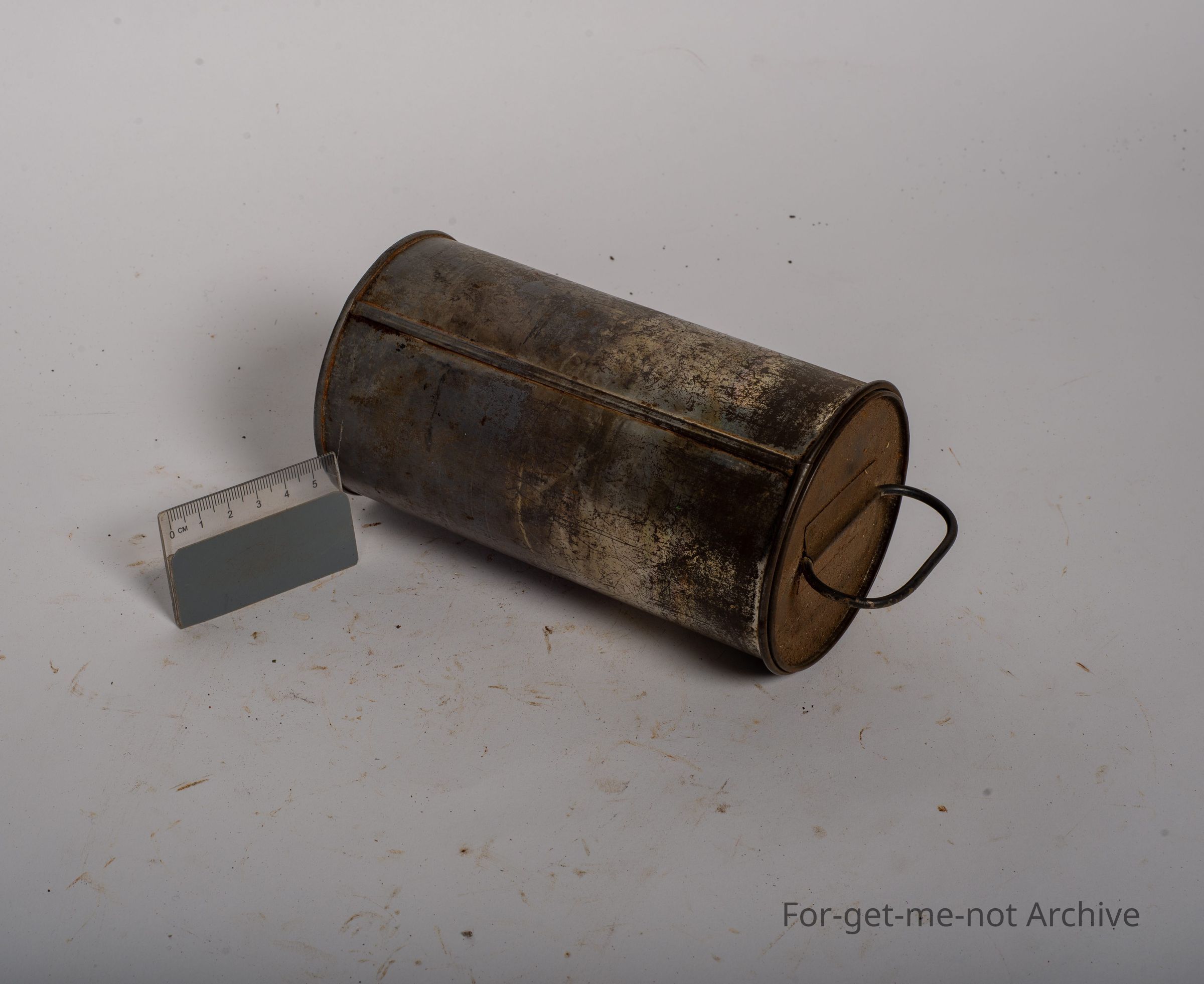 This is tin wear. This is the canister that you made a nut loaf in. When you pull the handle out, you rotate the top and it releases the nut load from the inside of the tin.