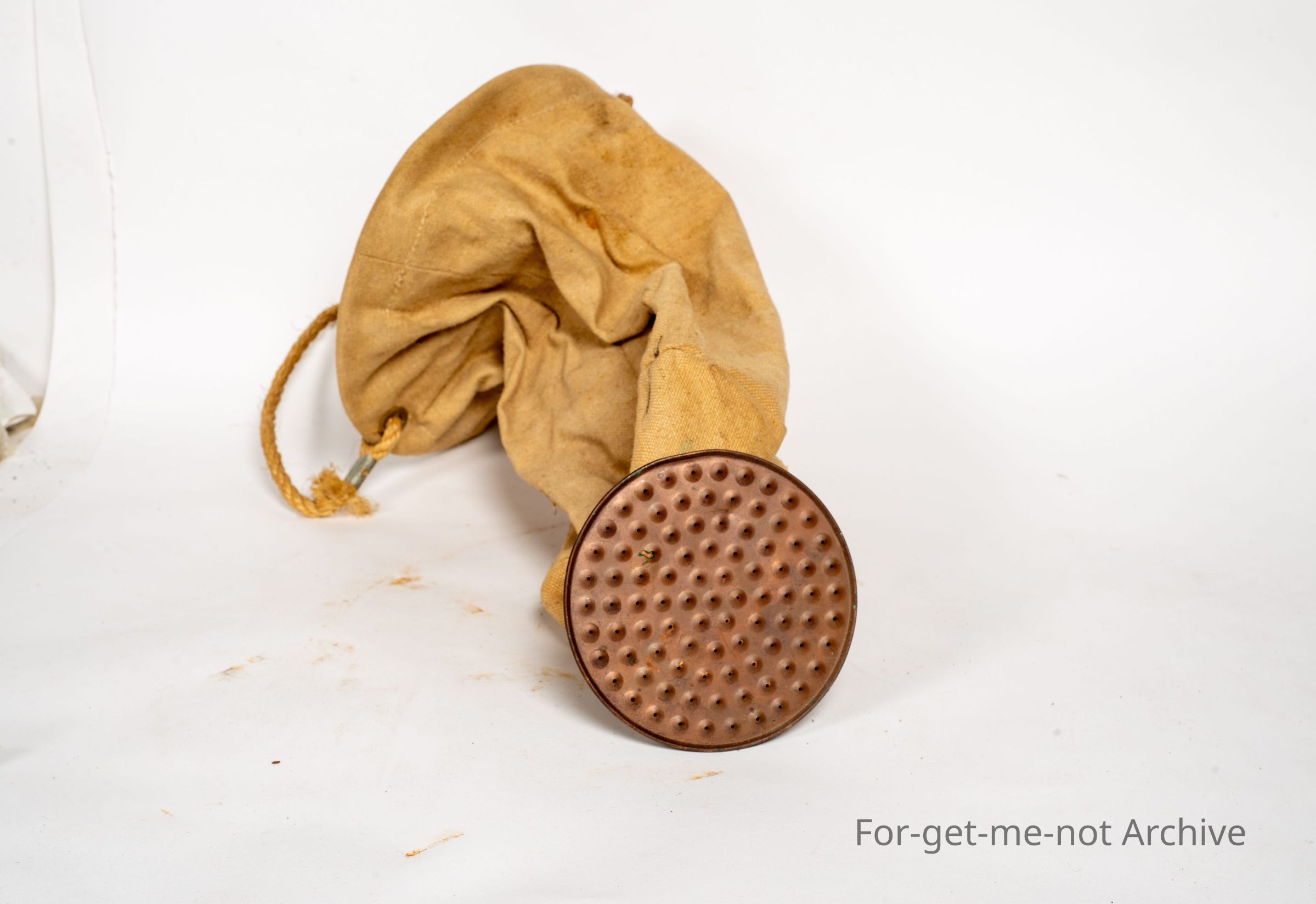 This is a beautiful, canvas bush shower that would have hung, from a tree, perhaps. Got a copper rose on the bottom in beautiful usable condition.