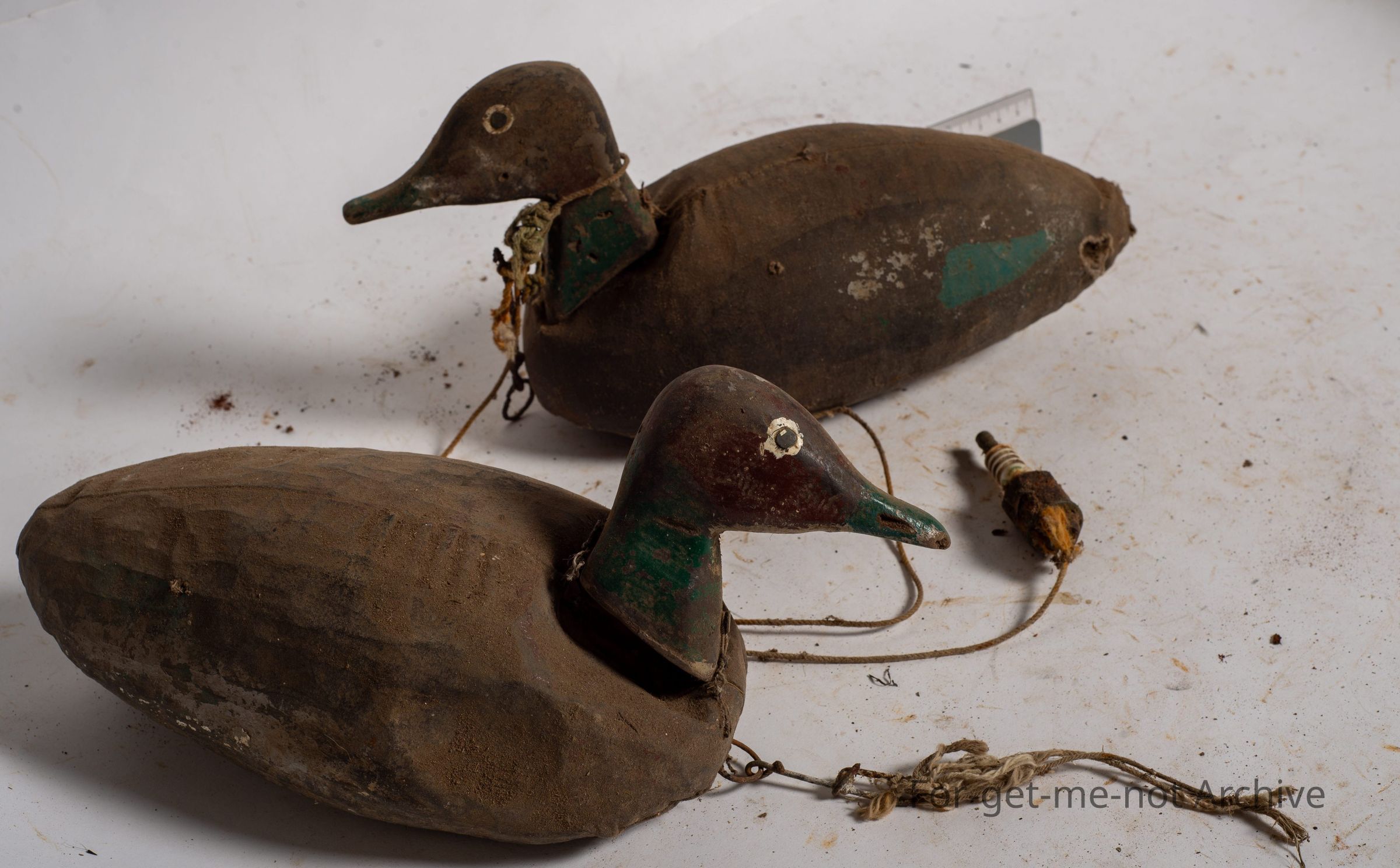 These are decoy ducks that have been made from canvas and stuffed. They're all hand done probably from the Depression era. They are quite cleverly done and hand painted.Collection