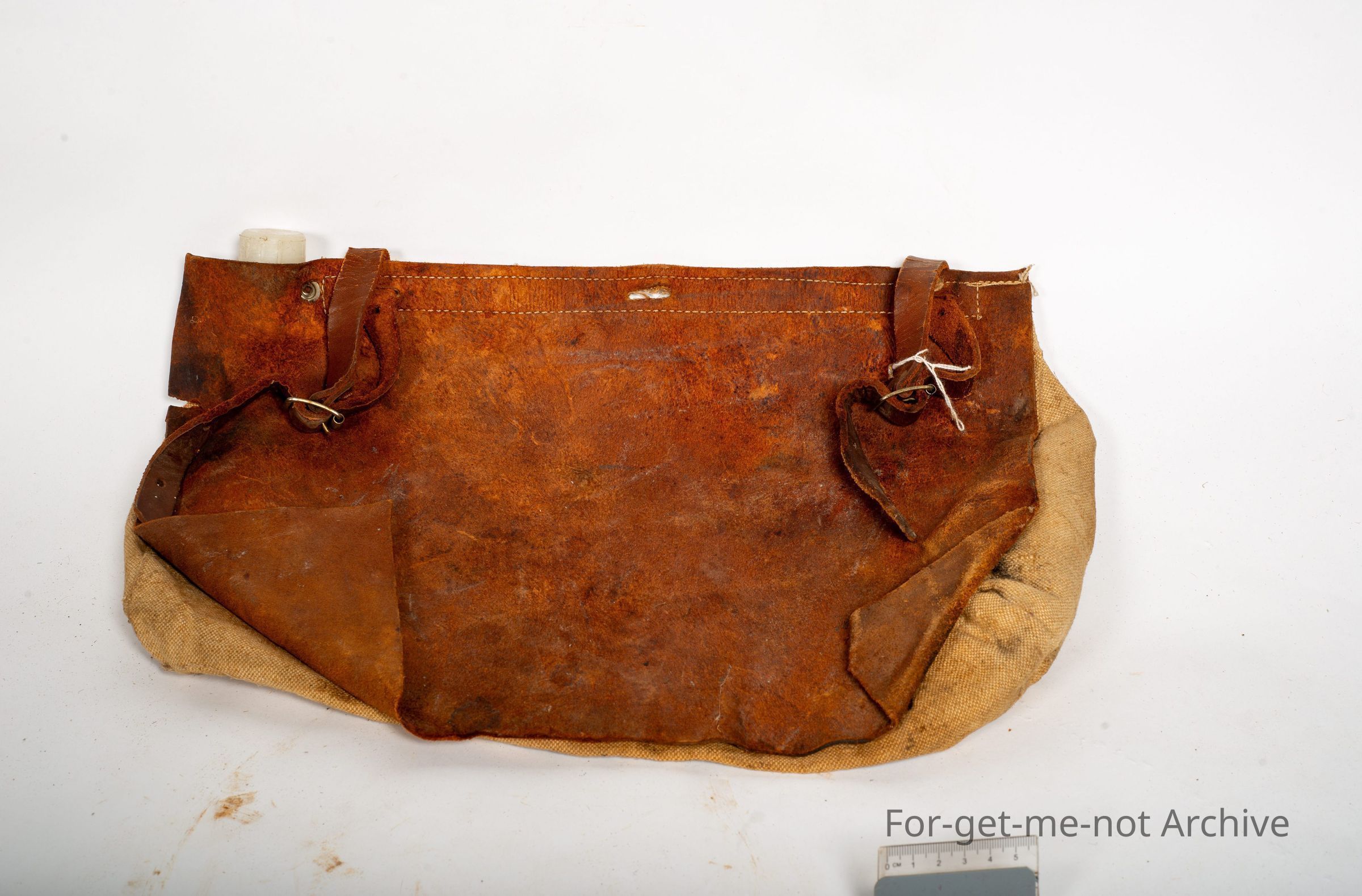 This is another canvas water bag that it's been on a pack saddle perhaps. A leather backing strip so as not to tank the water. Very lightly built in comparison to RM Williams. A plastic spout, so not very old either.Collection