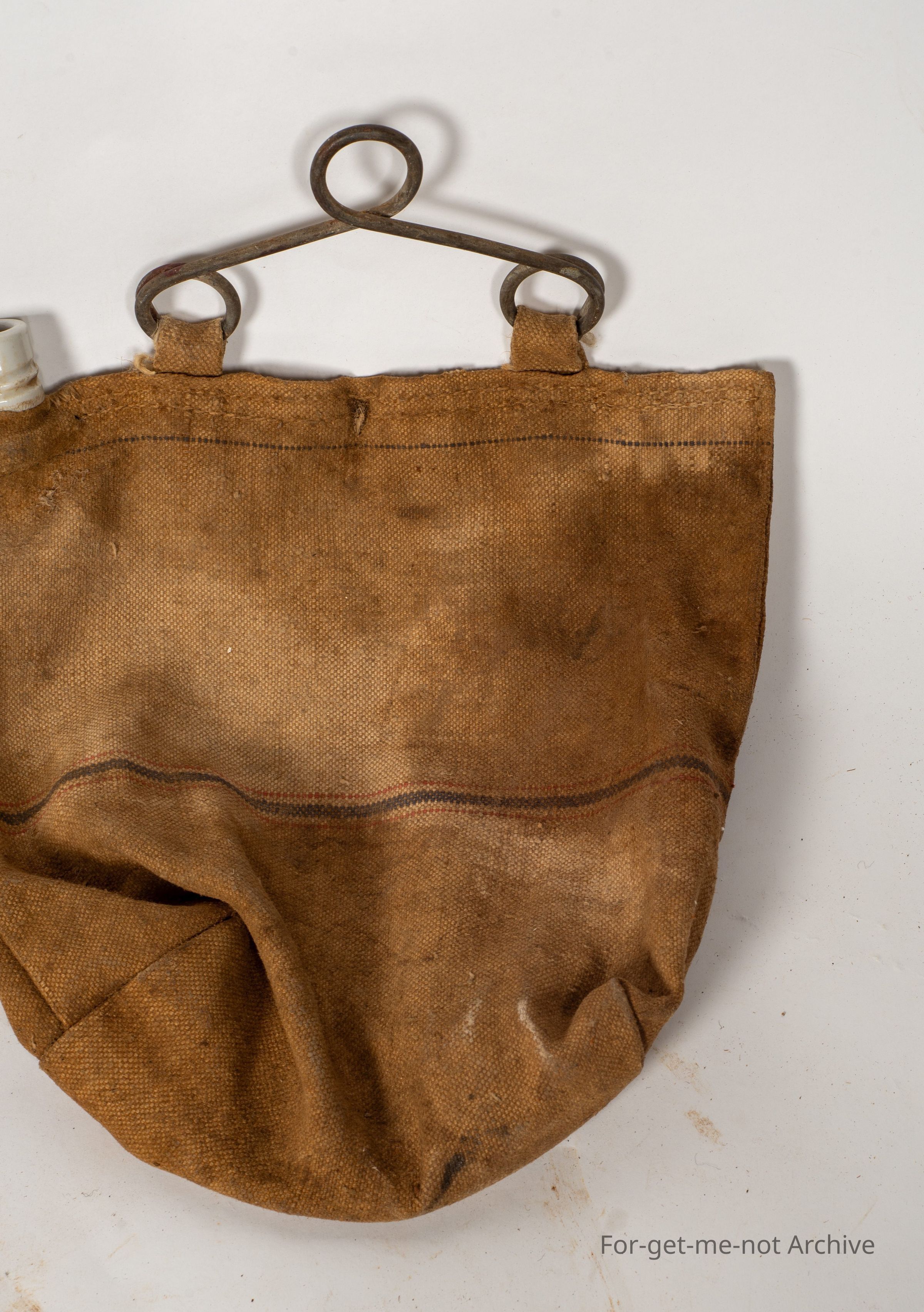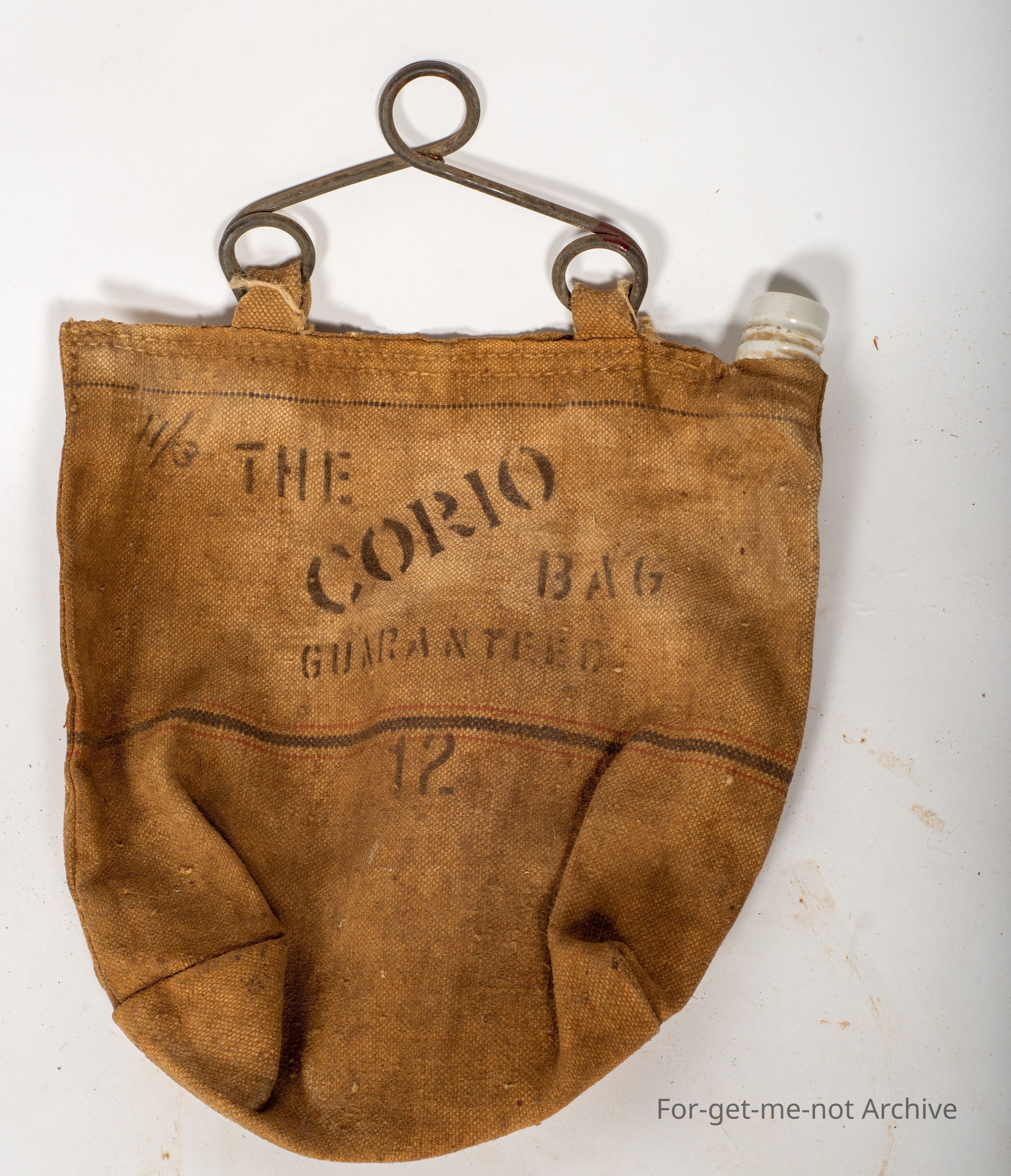 This is another canvas water bag, that hung in the front of the car. This is quite an early one stencilled, "The Corio bag guaranteed" with a ceramic neck