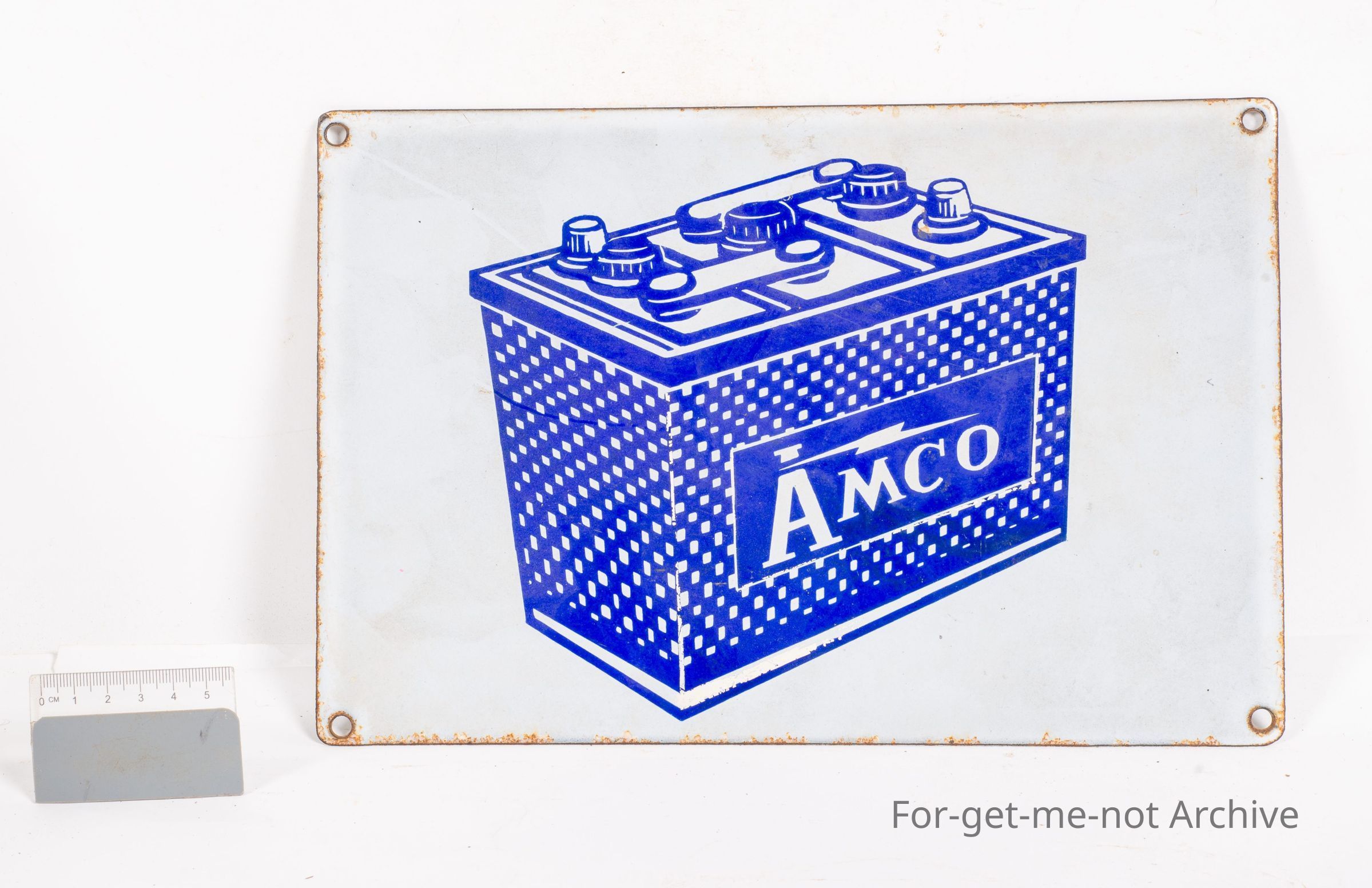 Sangeet Collection. Enamel sign of a battery, a car battery called AMCO, in quite good condition.
