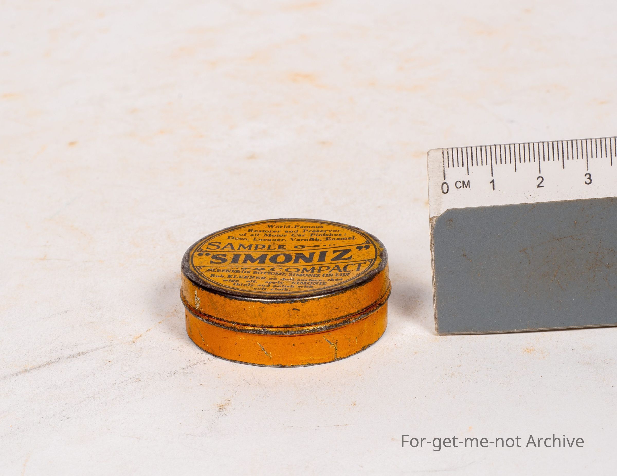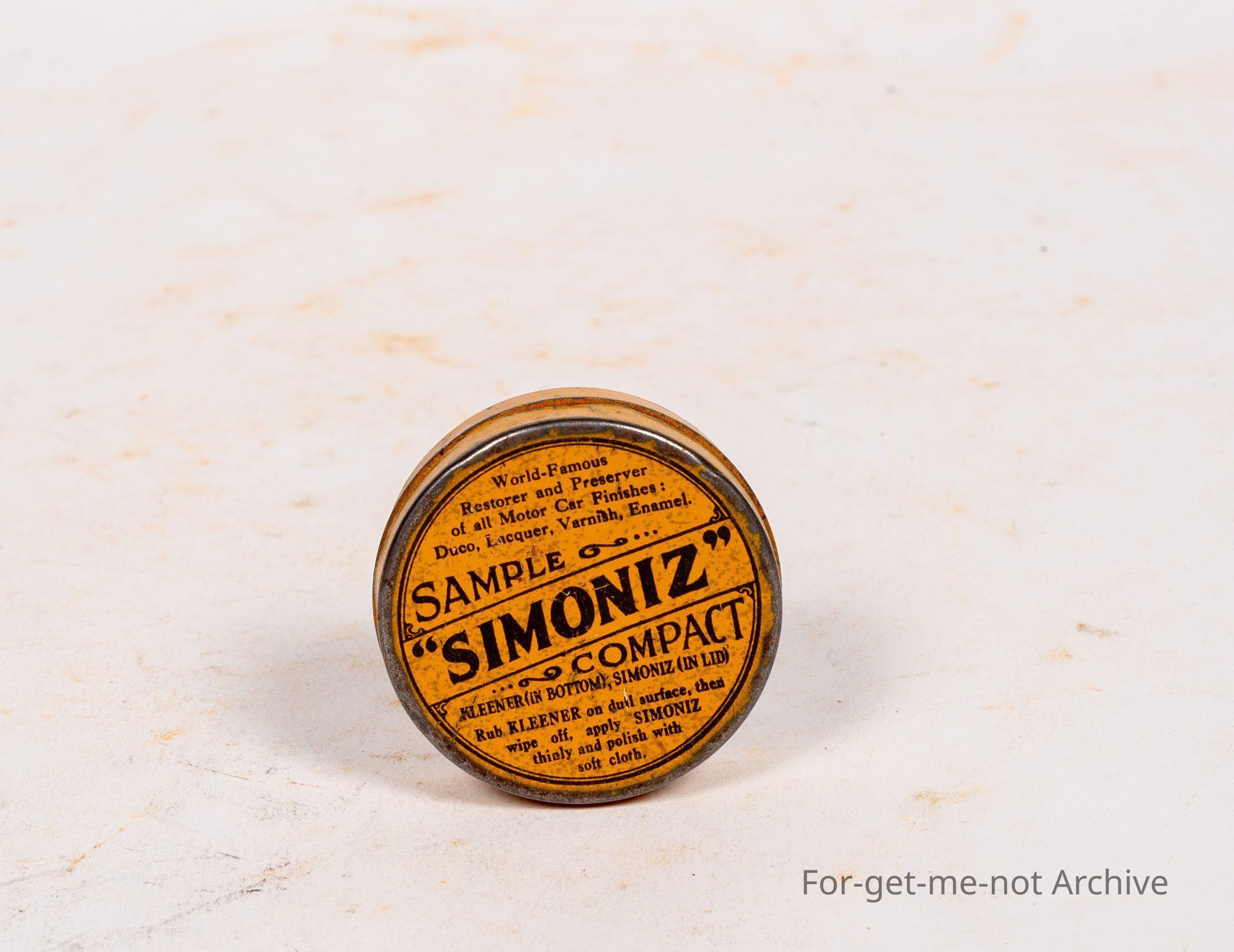 A sample of Simoniz, this is world famous restorer and preserver of motor carb finishes, Chuco Laco lacquer varnish enamel. Lovely little tin, probably quite scarce. This is an Australian one made by motor white equipment Melbourne.Collection