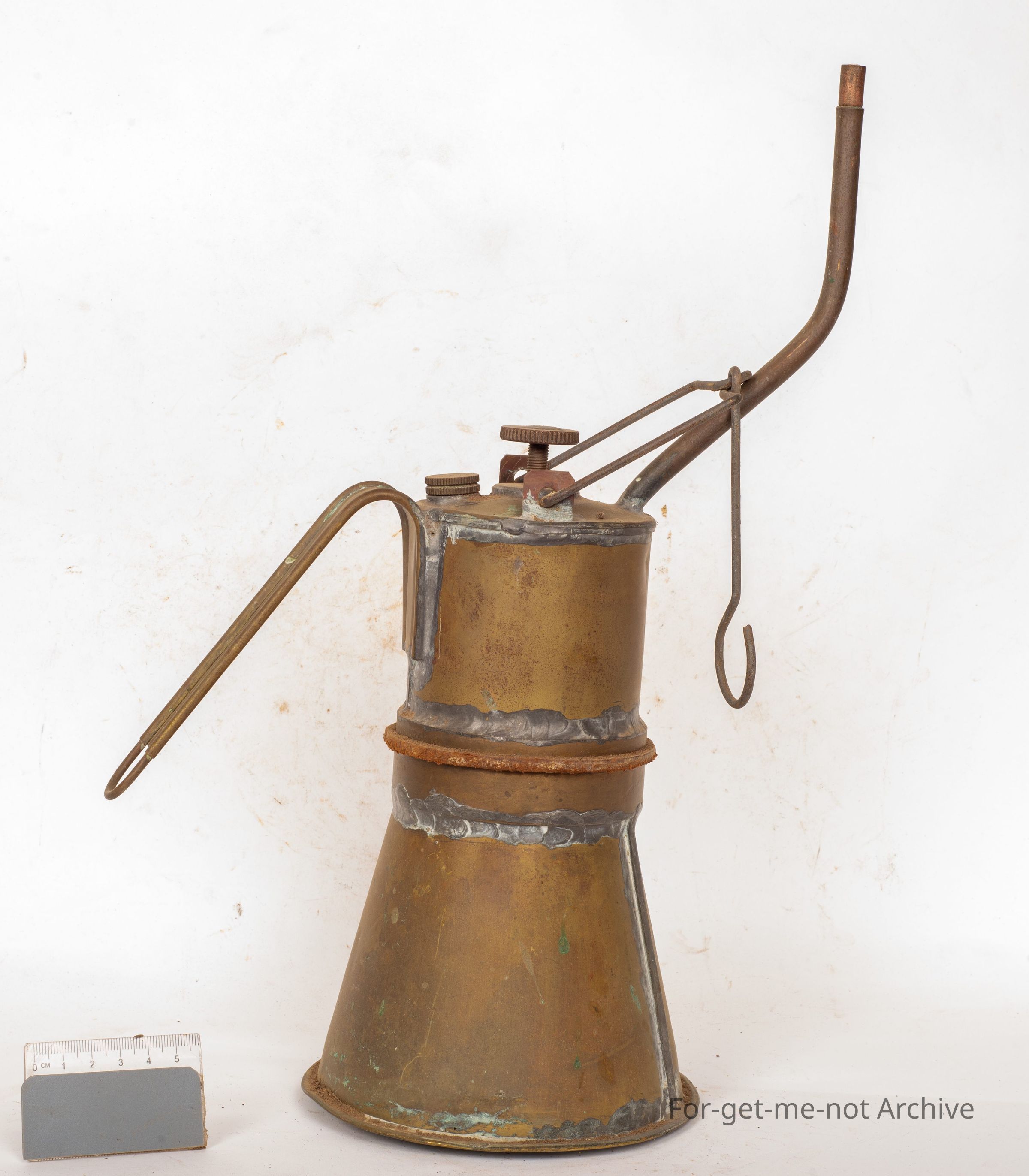 This is quite a sturdily made carbide light, all made of brass canister and the whole lot. Even the handle, all complete. Got the, ceramic valve in the top is still in good order. Some pretty heavy duty soldering being done on itCollection