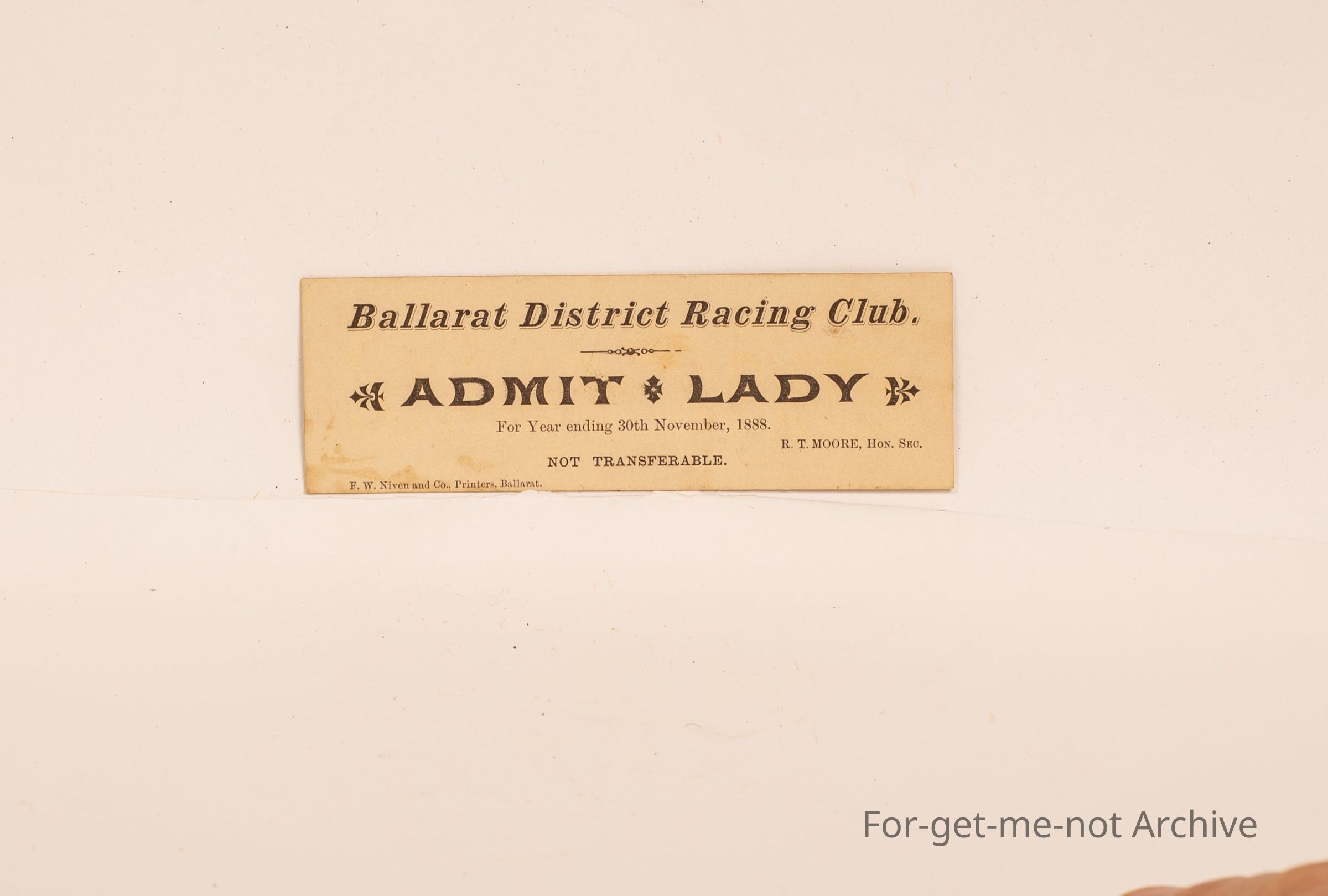 Cardboard Ballarat District Racing Club. Ticket to admit 1 lady.