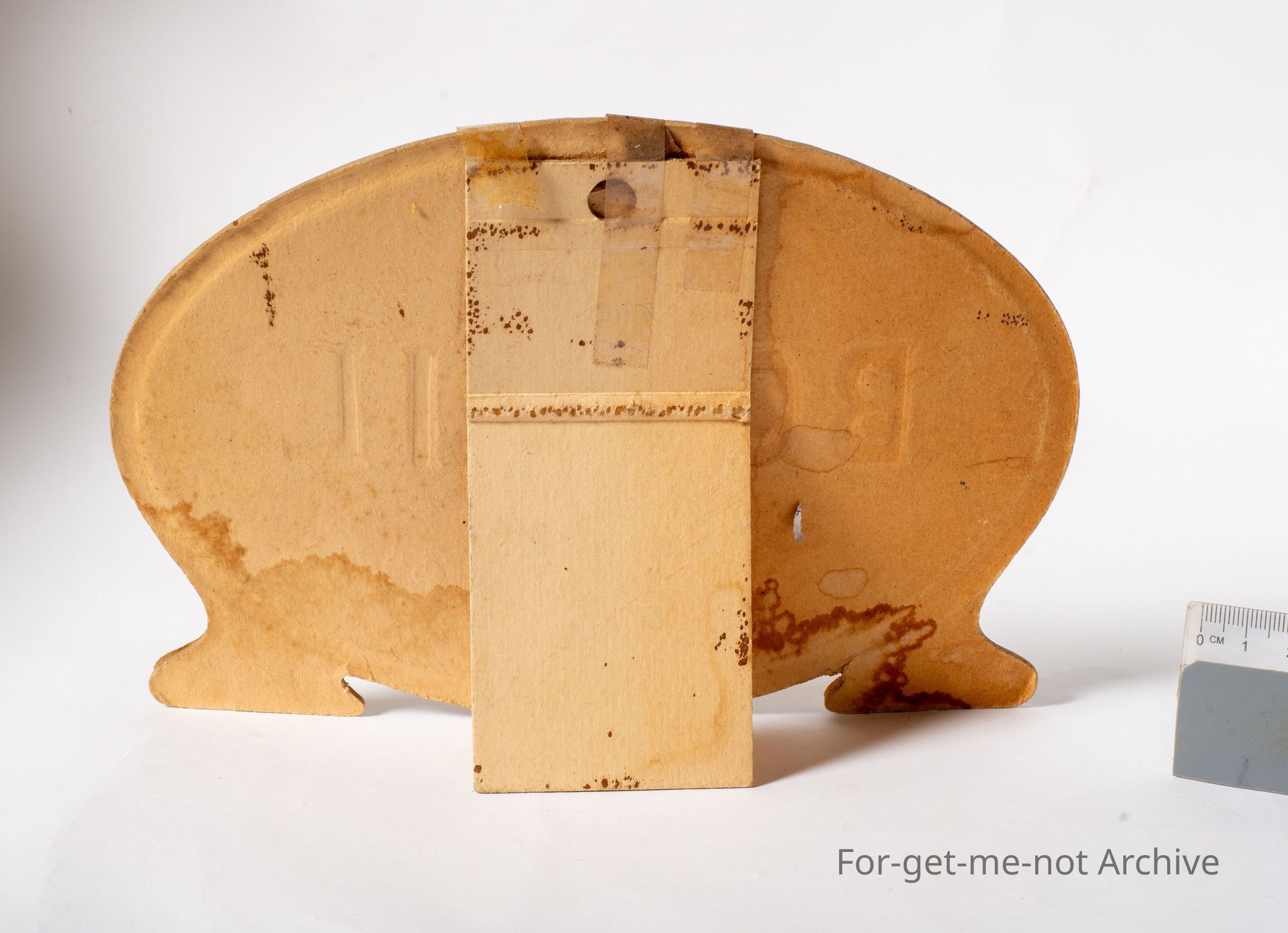 A cardboard counter piece, in an oval shape with legs. This is an advertising piece for a Bovril served hot, which was like a, base for a drink, based on beef. Quite an original little piece.Collection