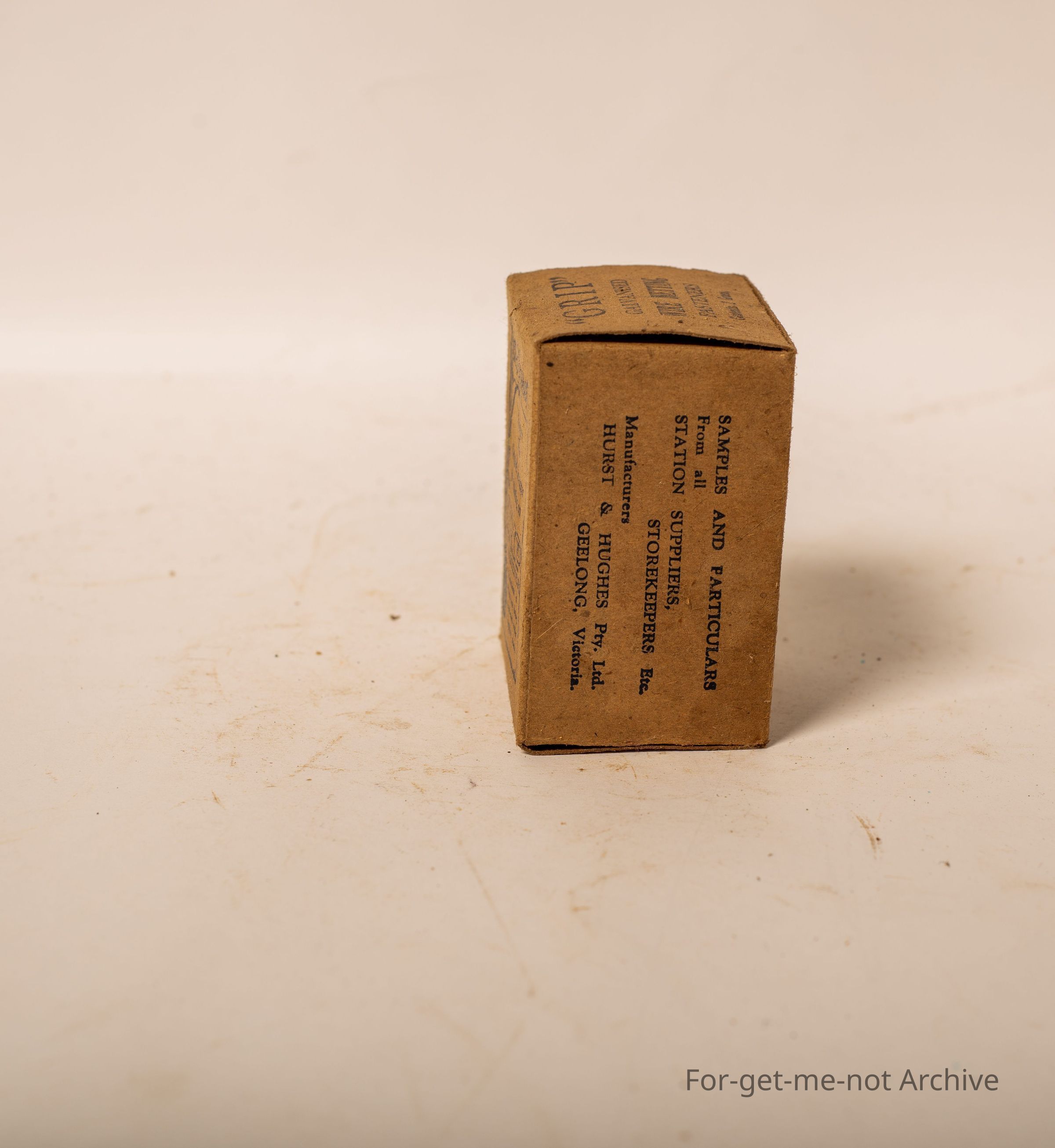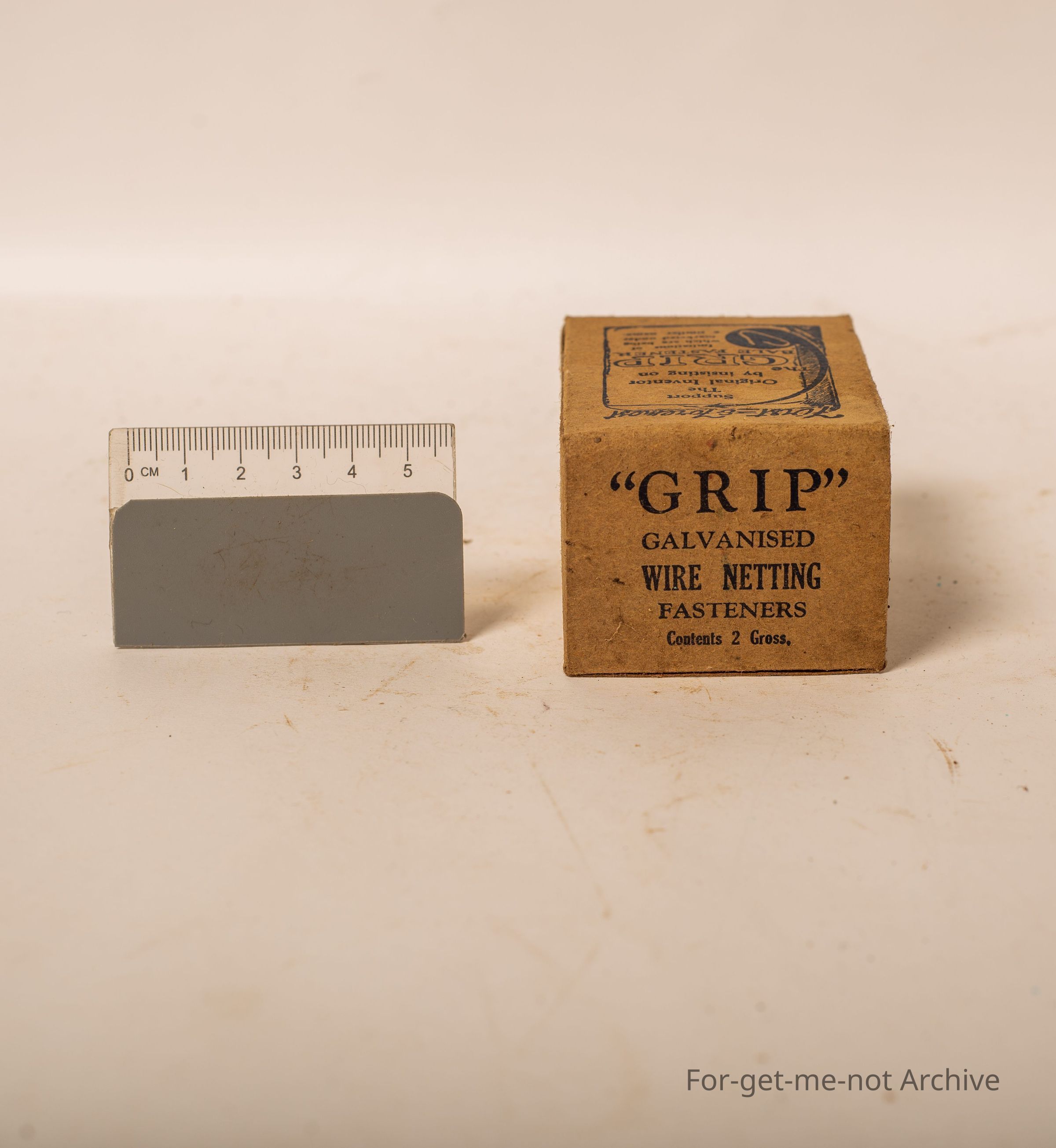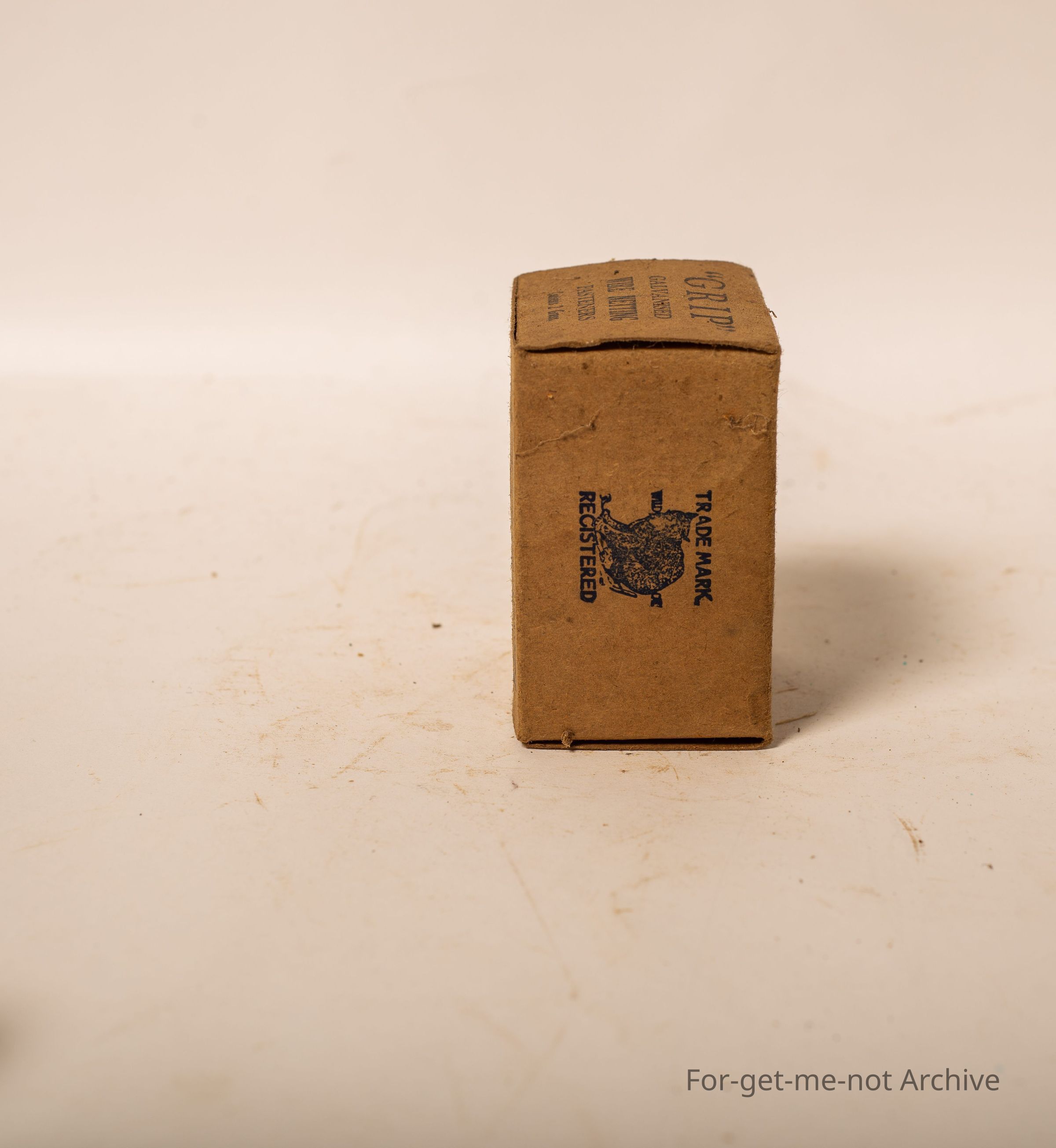 Is a cardboard box. Of Grip galvanized netting fasteners. Contents, 2 gross. Also advertising the wool bail clips on the box manufactured by Hurst and Hughes Geelong Victoria.