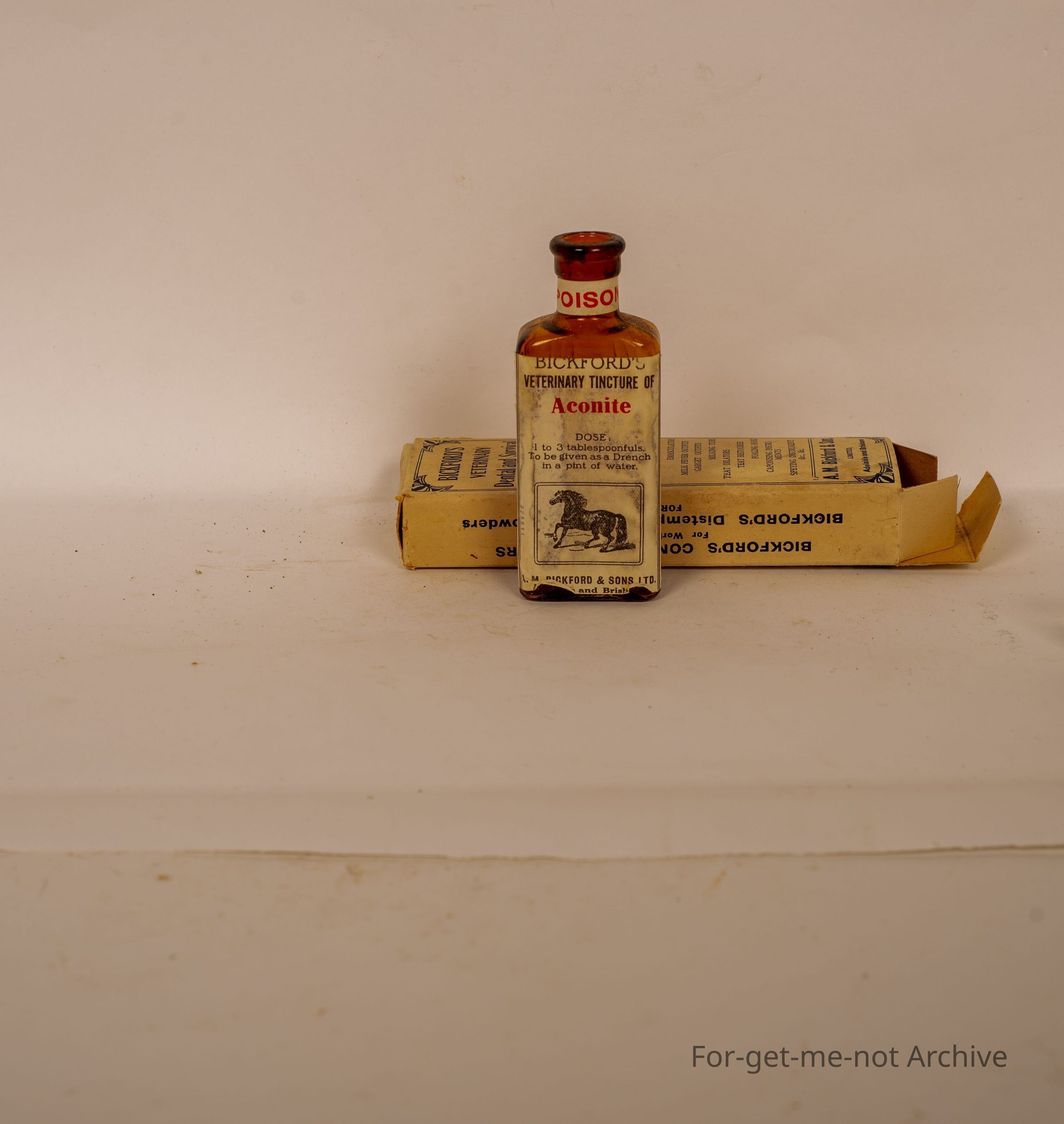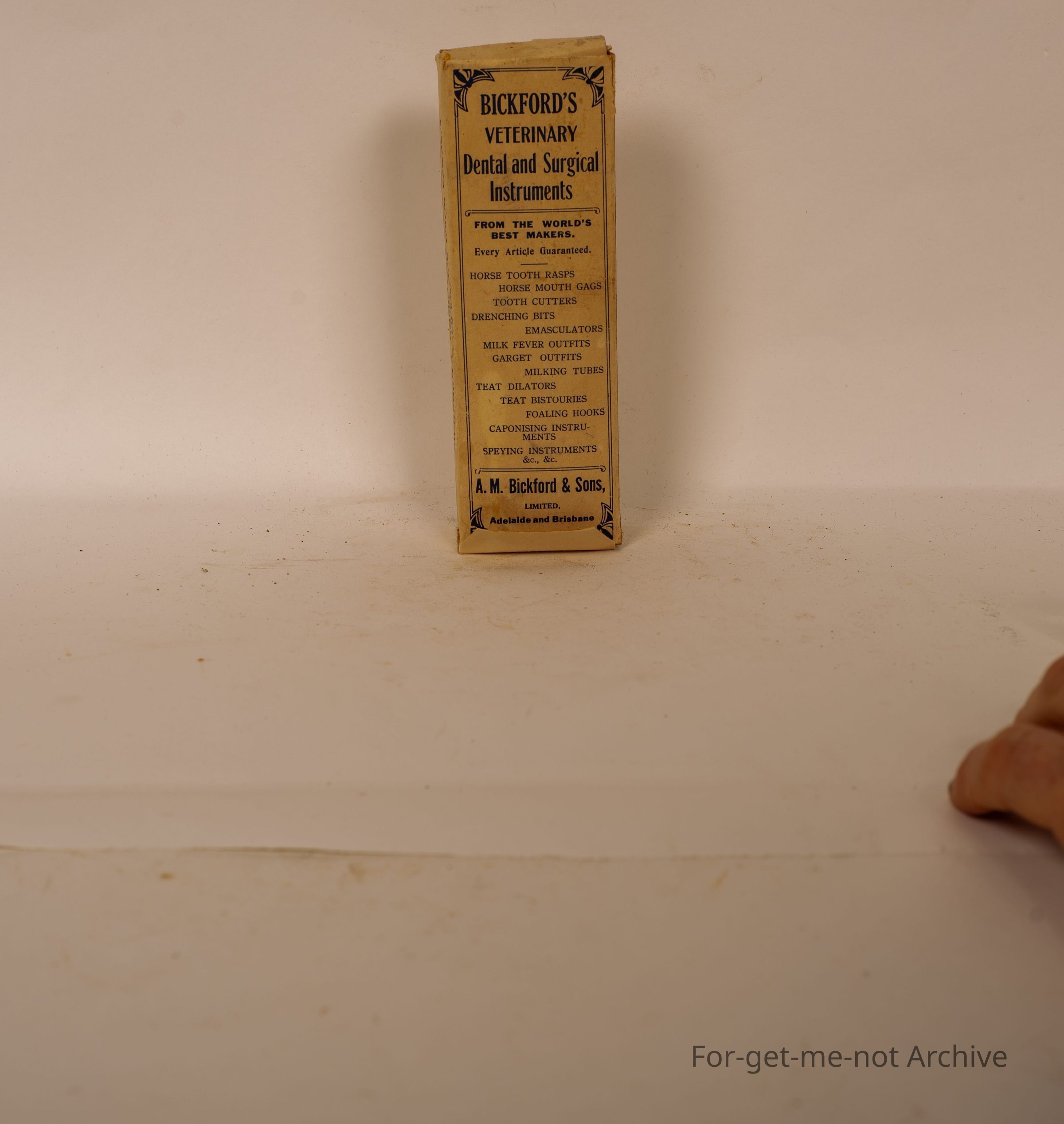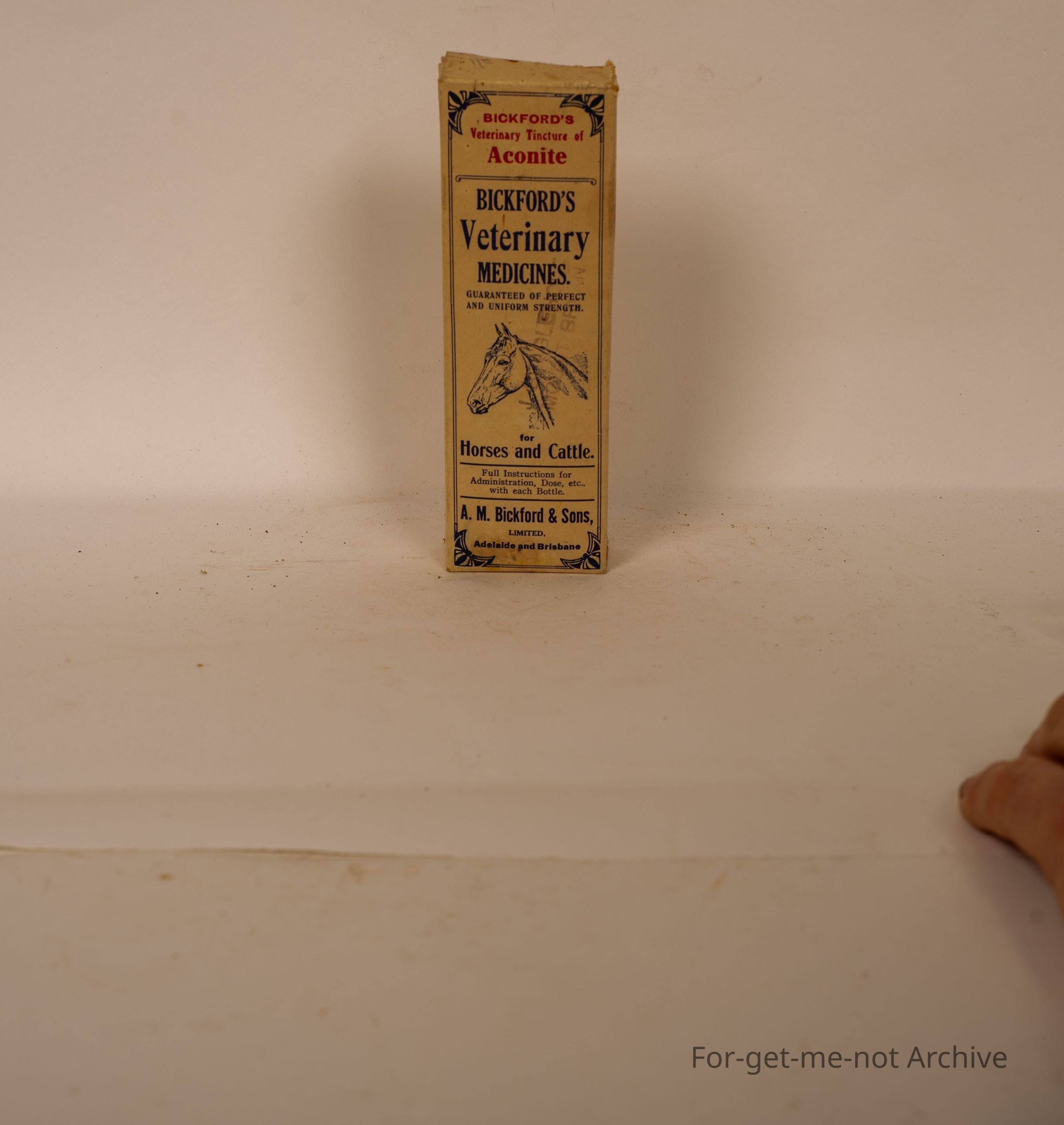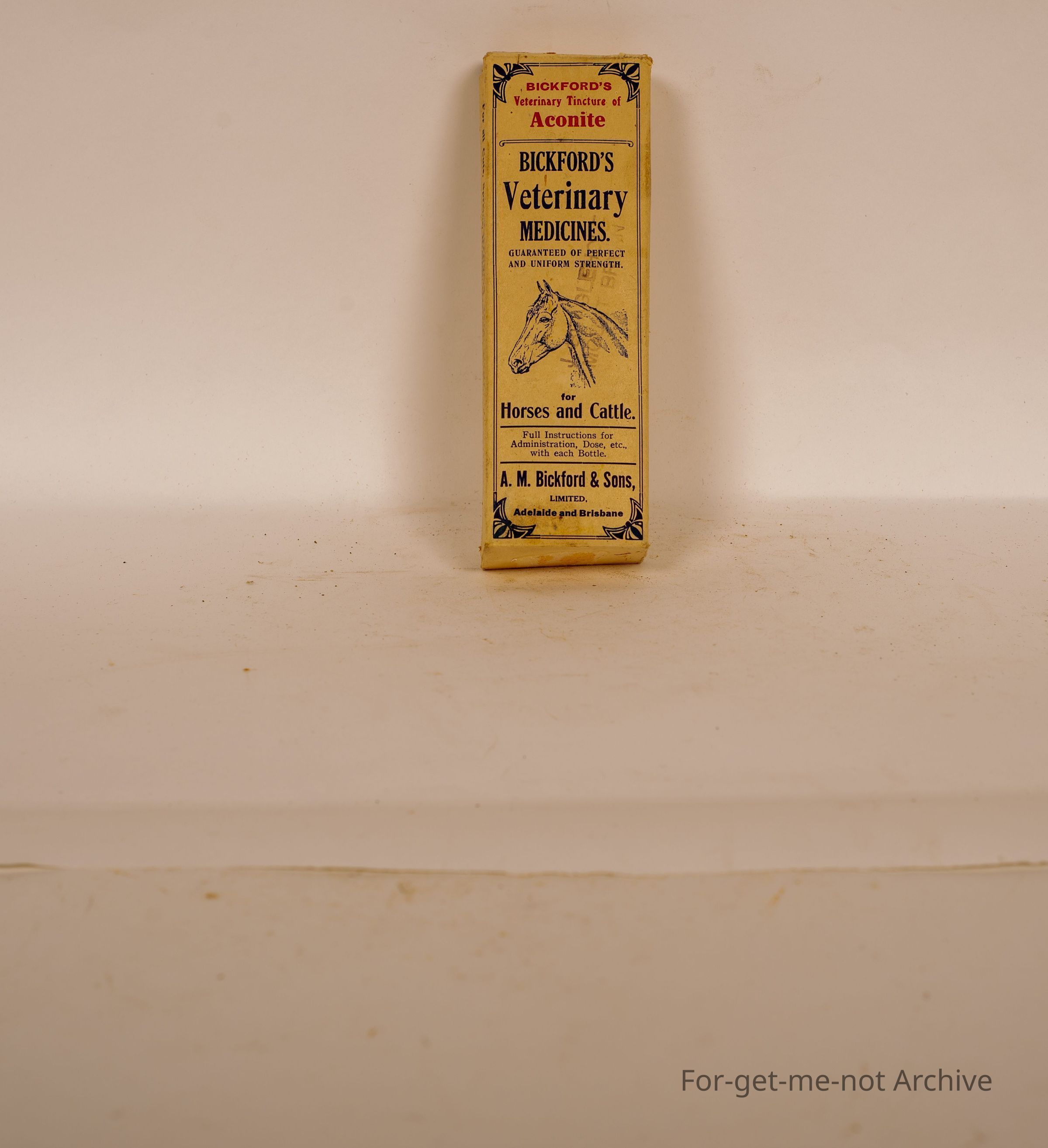 Cardboard box with contents, Bickfords Veterinary Products with Image of Horse, Adelaide and Brisbane