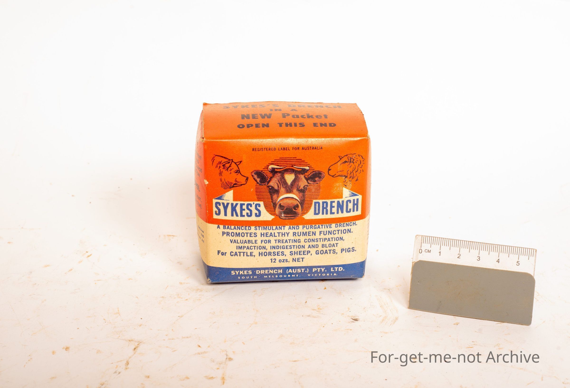 This is a cardboard container of Sykes Drench for pigs, cows, and sheep. This package is in very good condition. Content's still in it.