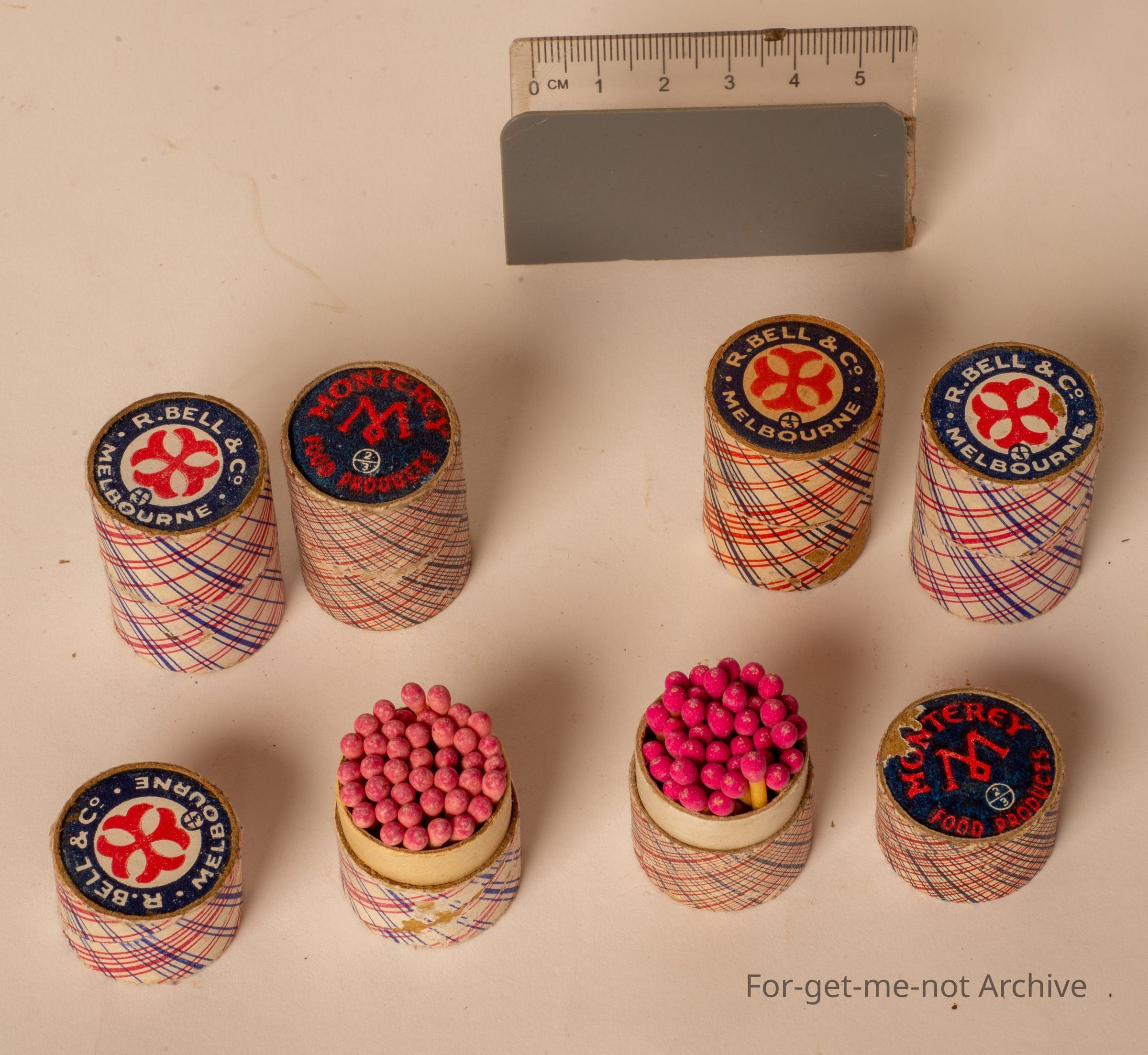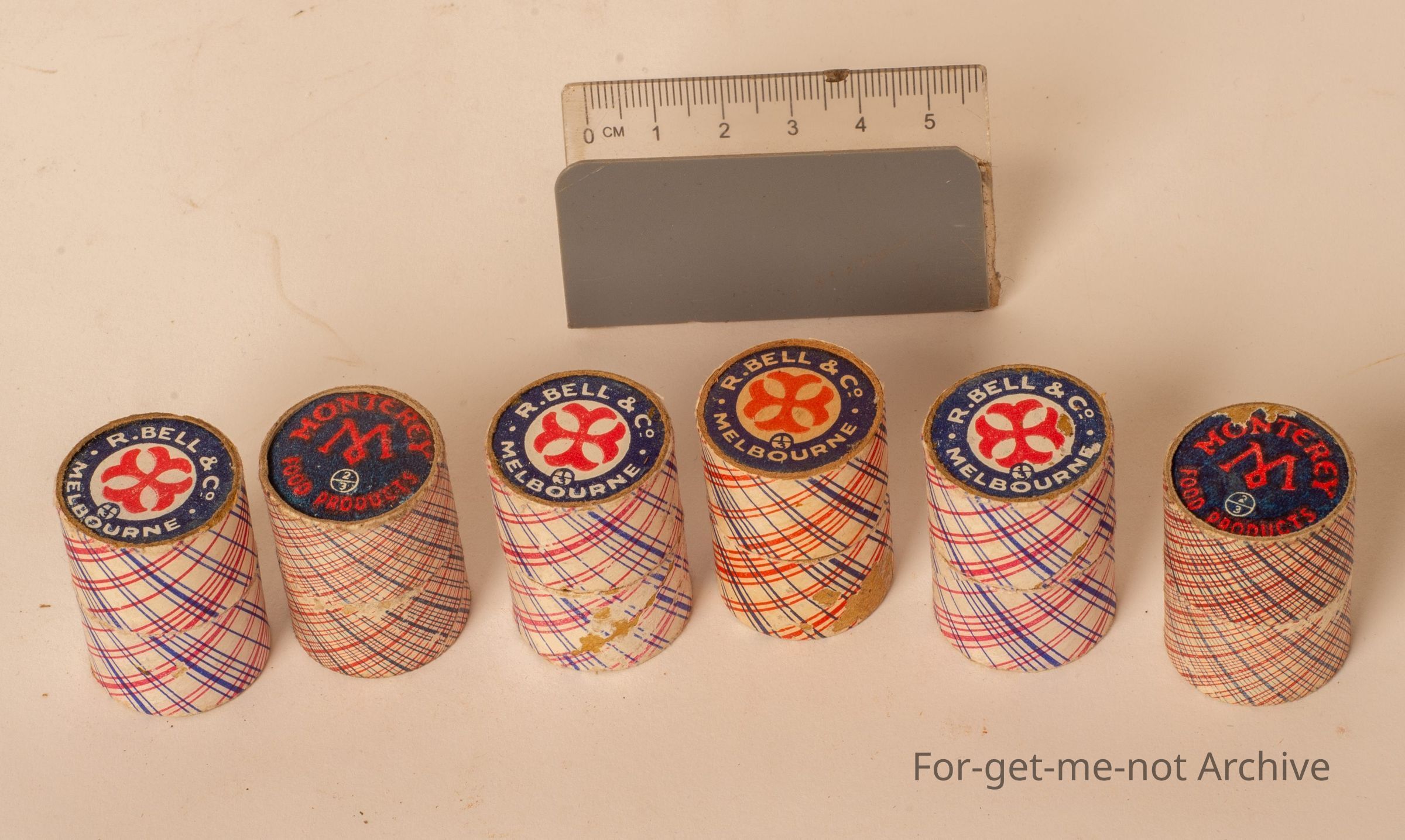 this is a group of 6 cardboard Vesta containers, 4 from R Bell, Melbourne, the other 2 from Monterey.