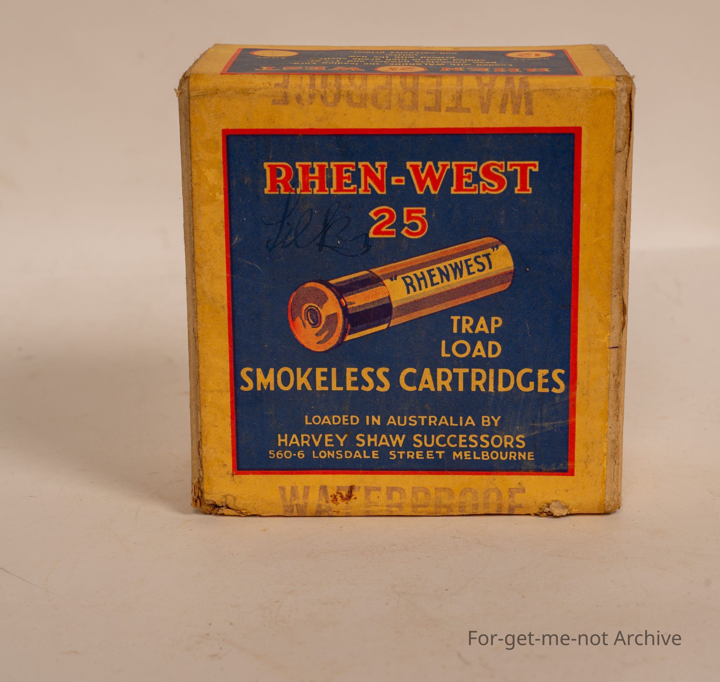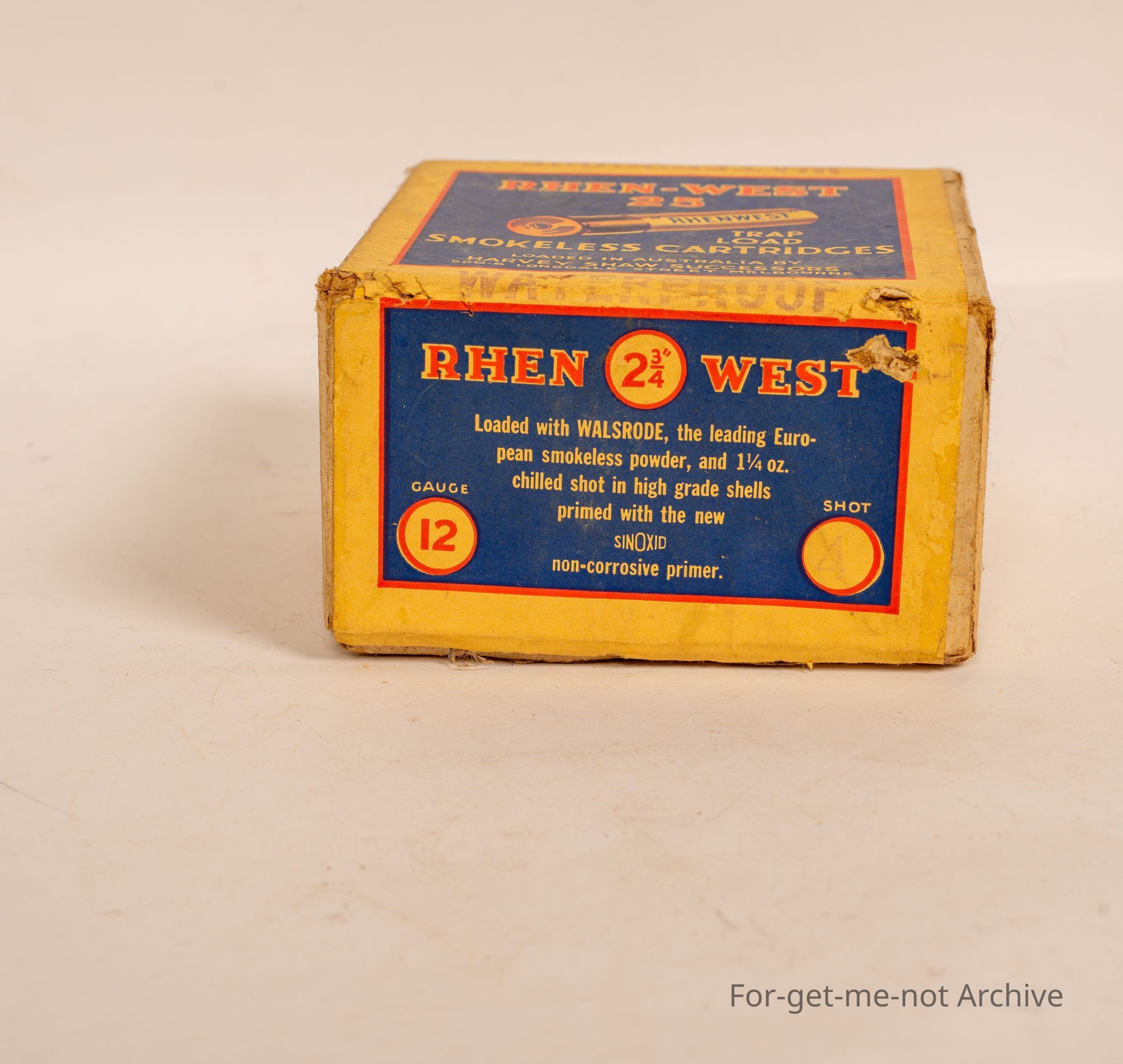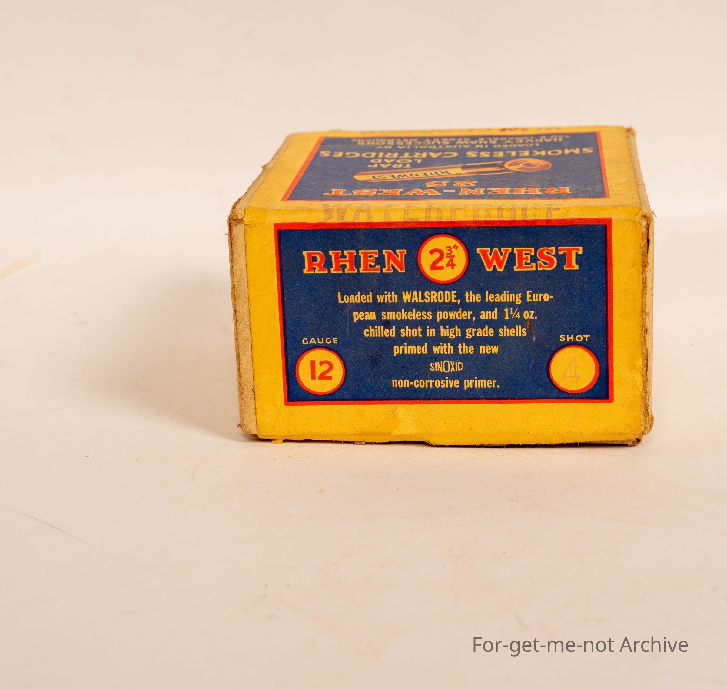 Cardboard cartridge box, 12 gauge called Renwex 25. Snorepeless,