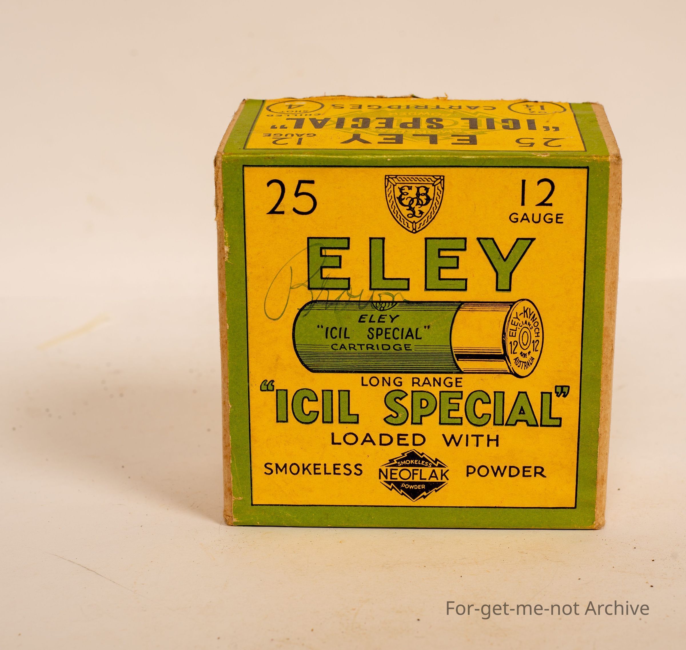 Cardboard cartridge box, 12 gauge called Eerie Isil Special Smokeless Powder. Radio,
