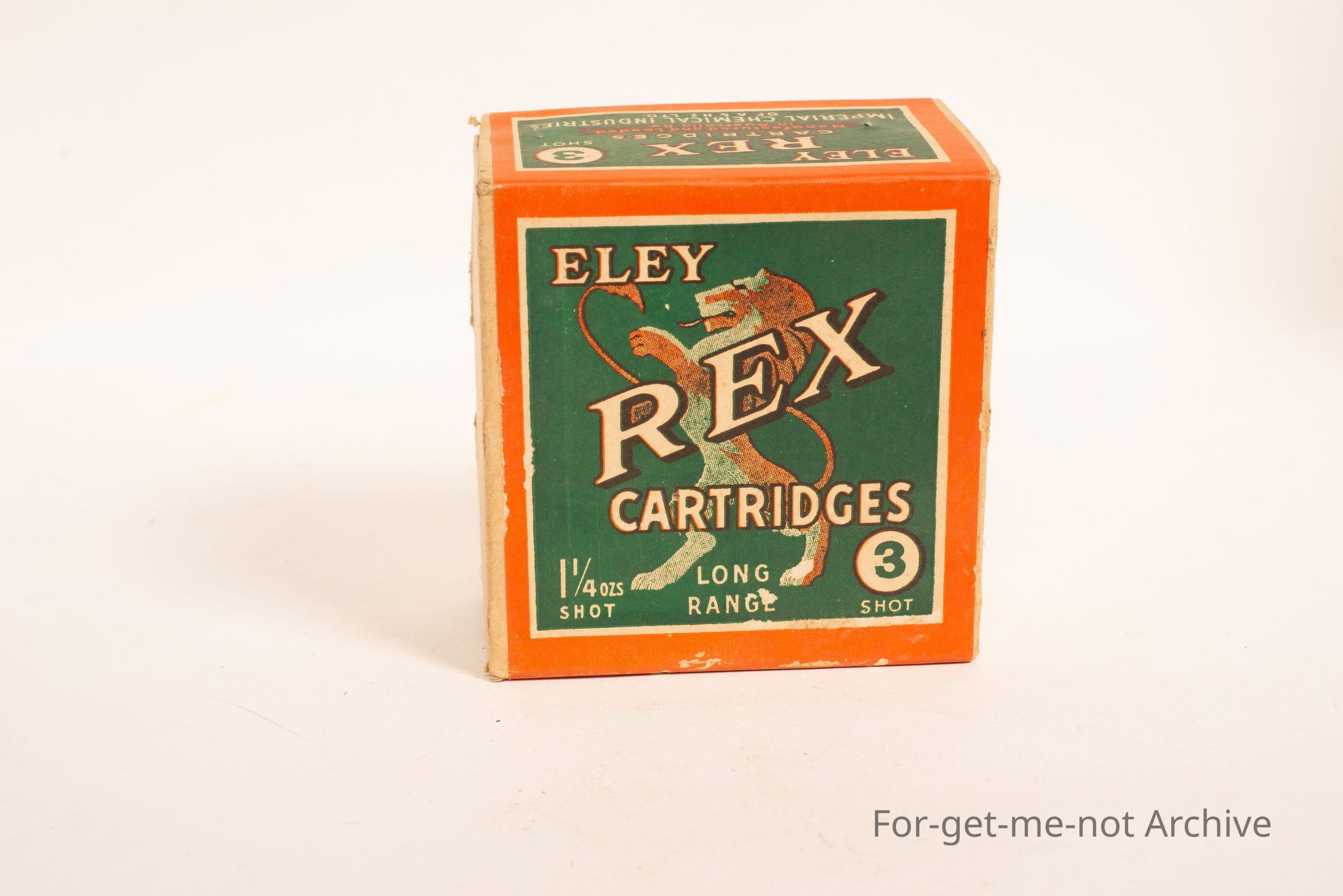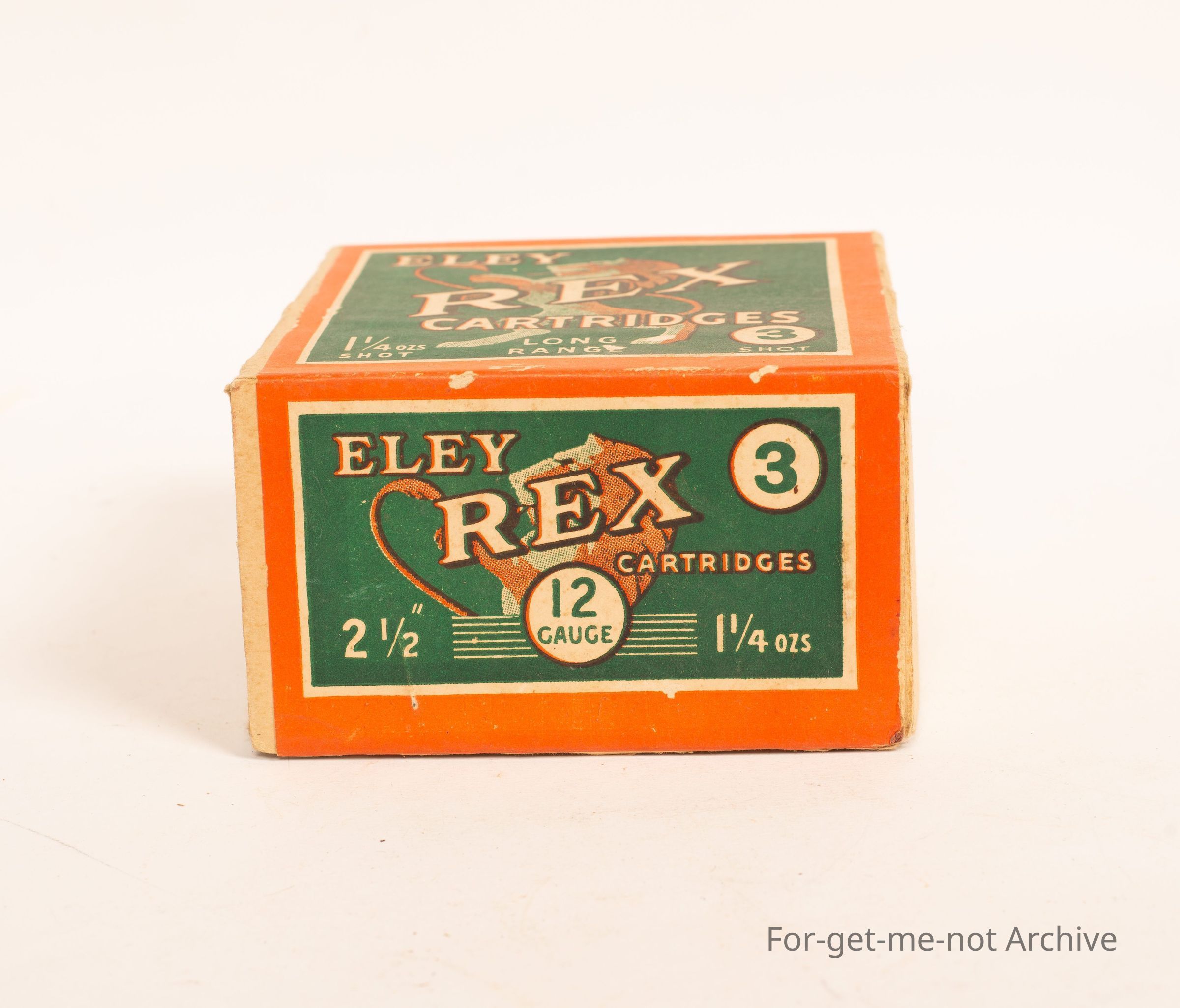Cardboard, cartridge box, 12 gauge, called Ealyrex Cartridges.