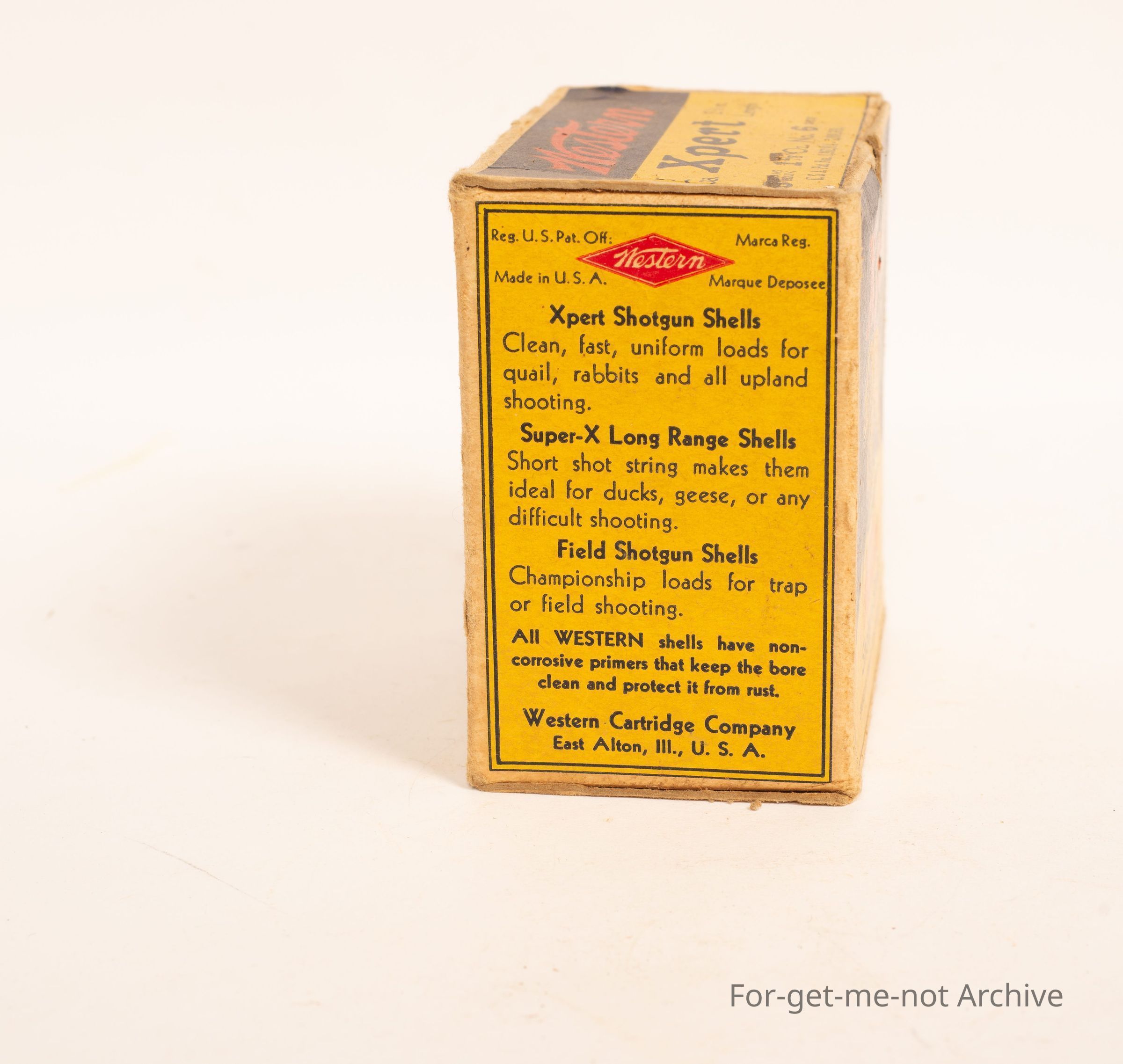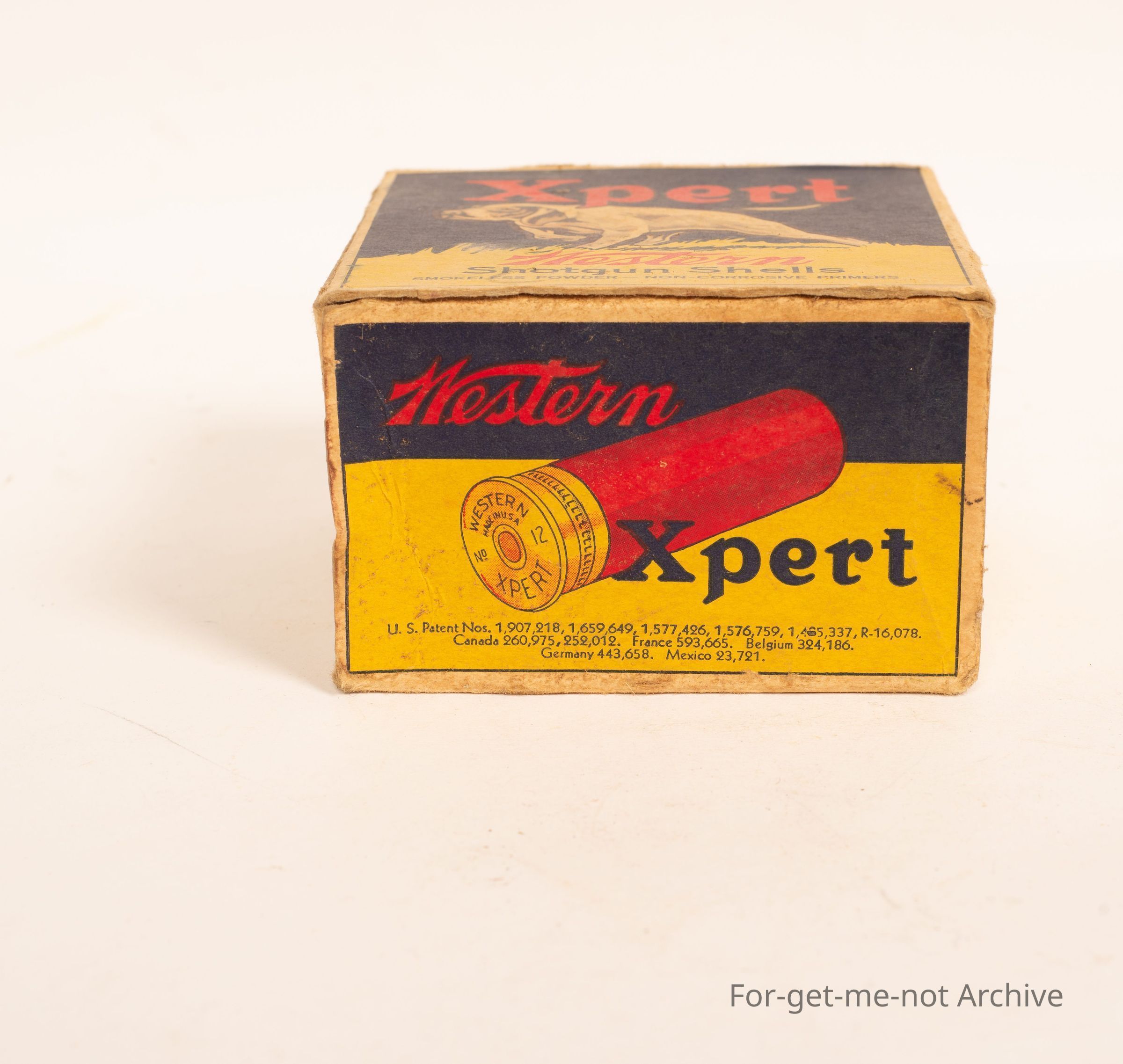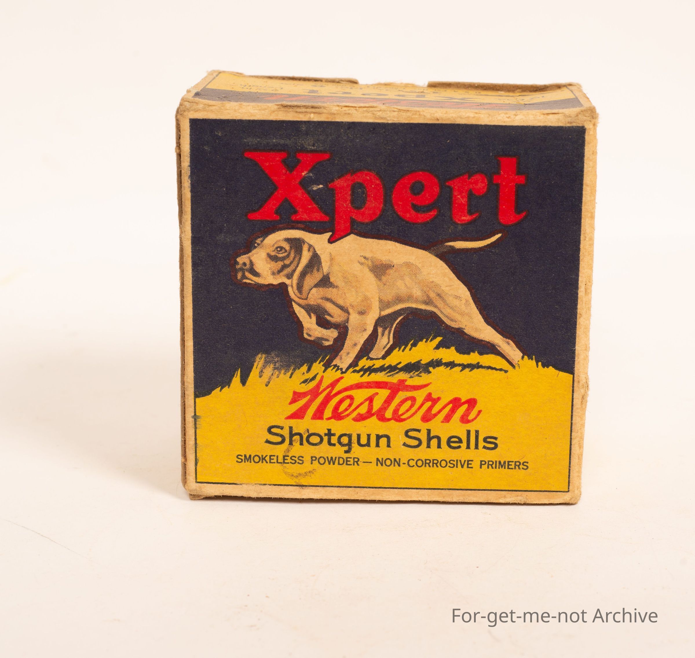 Cardboard cartridge box titled Expert Western with hunting dog on the on the top.