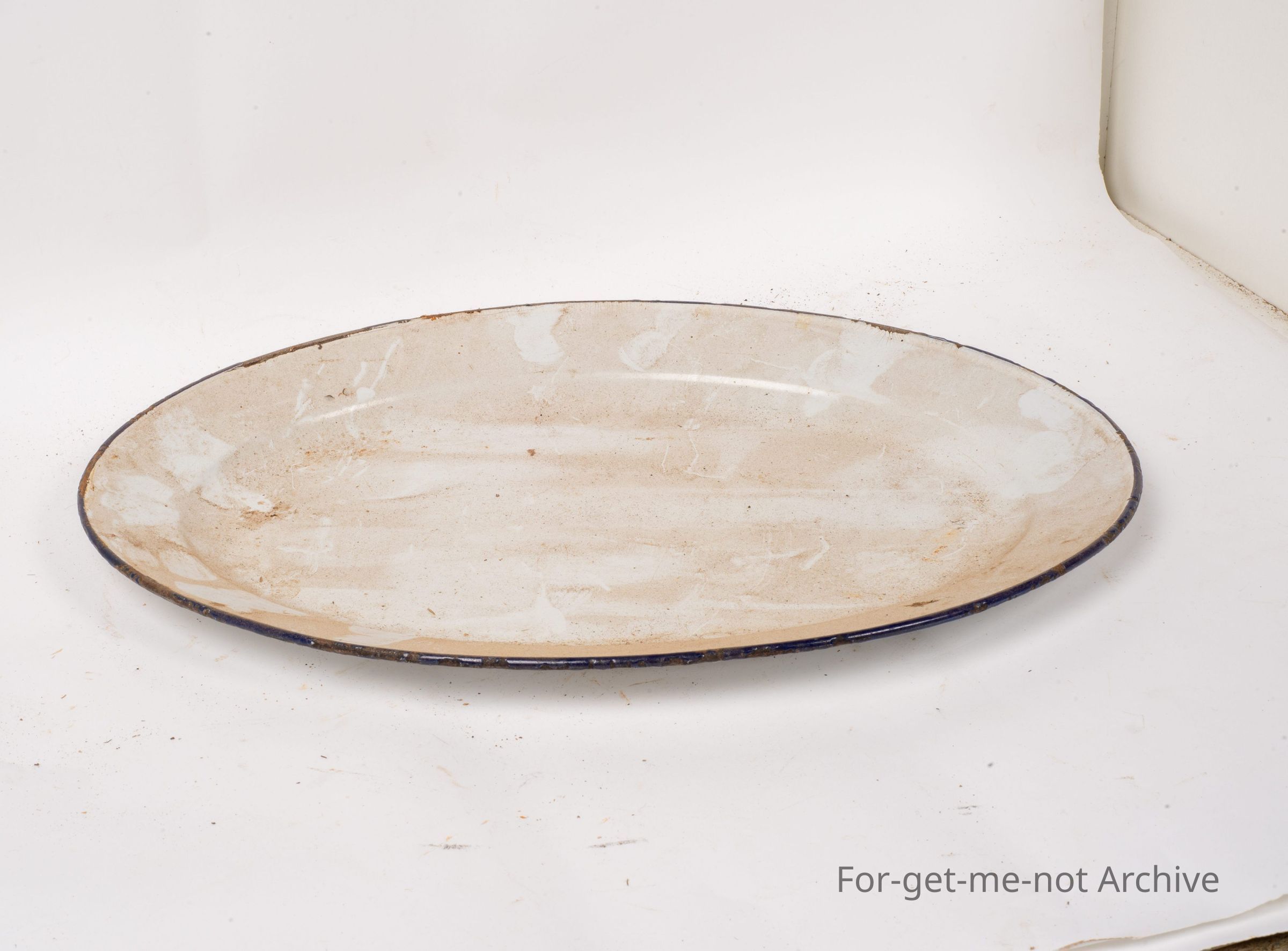 is a large oval shaped enamel carving dish. These were used commonly, in the twenties thirties. This one is in remarkably good condition. Good enough to use today.