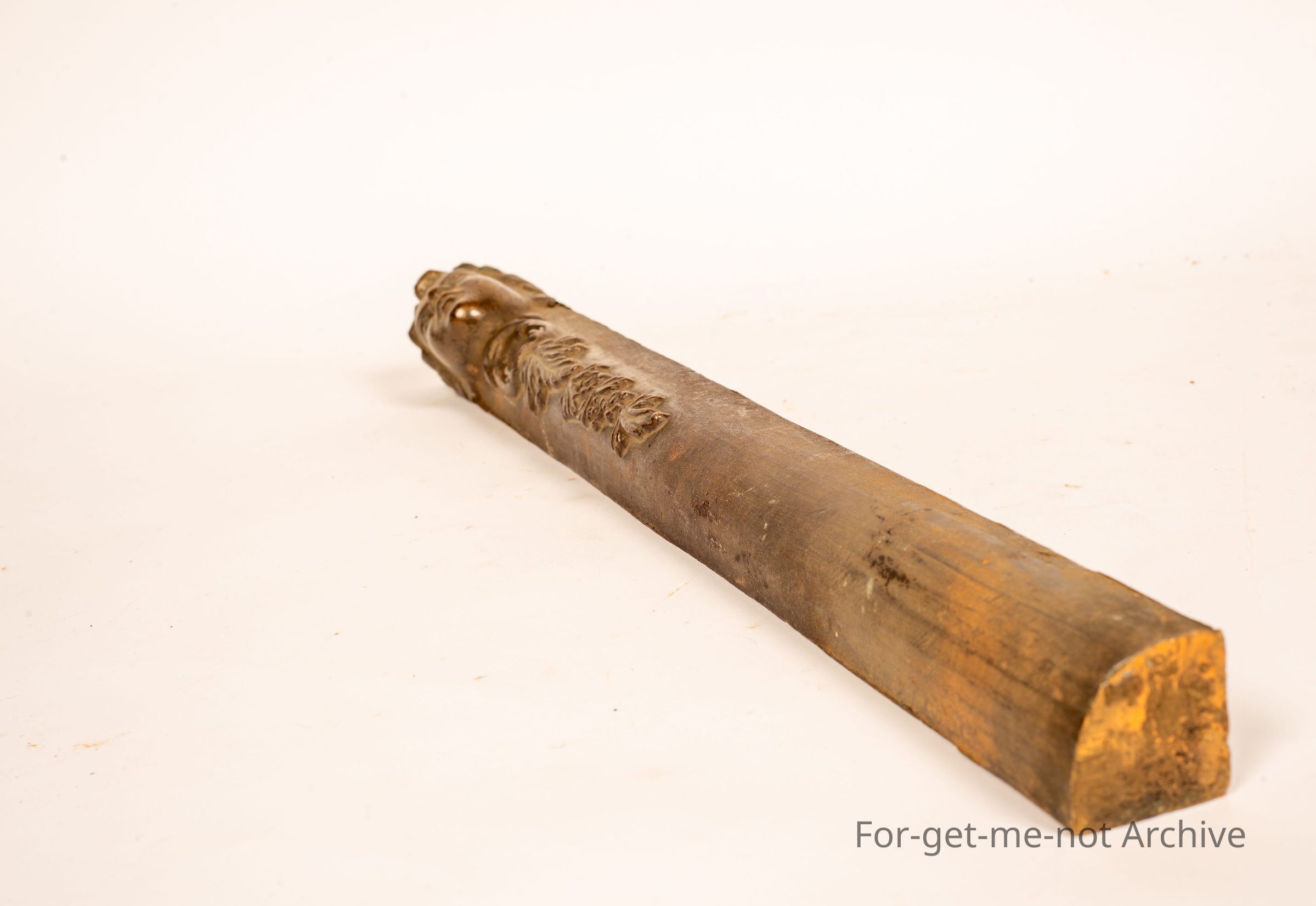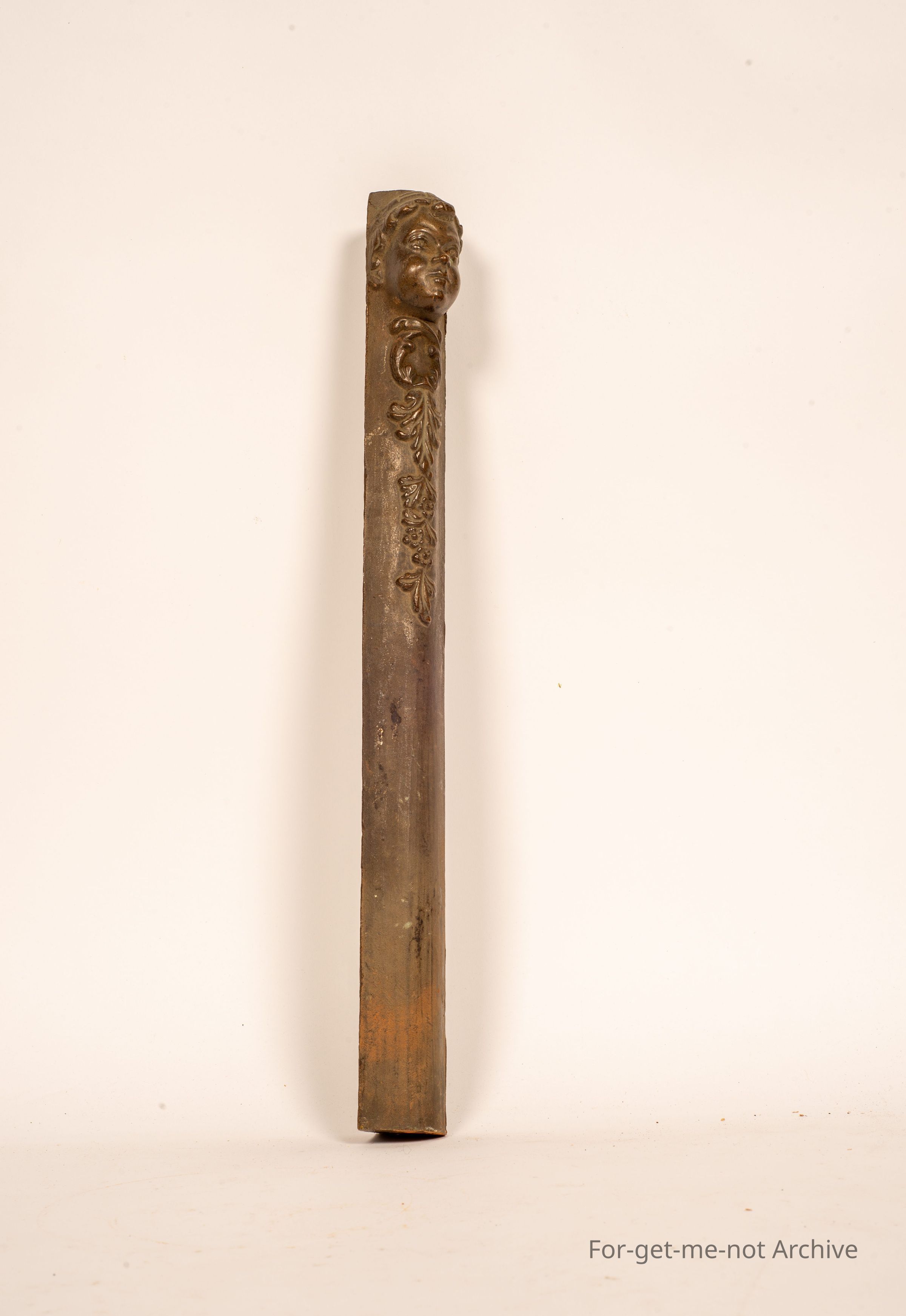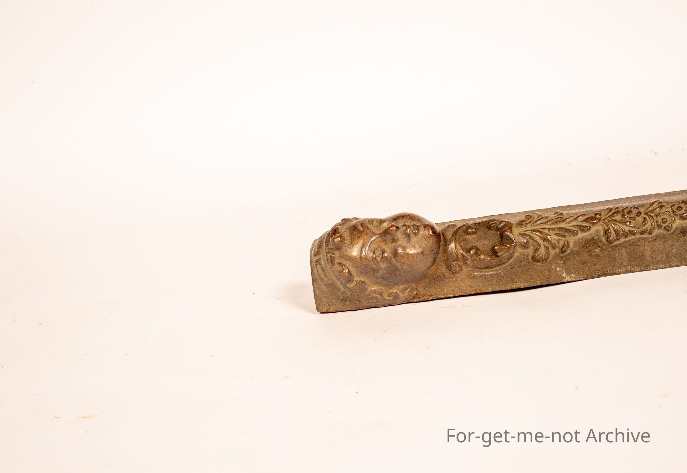Is a lump of cast brass with the image of, like, a cherub at the top with a floral design going down from her neck. Unknown person. Beautifully done. Not sure of its original purposeCollection