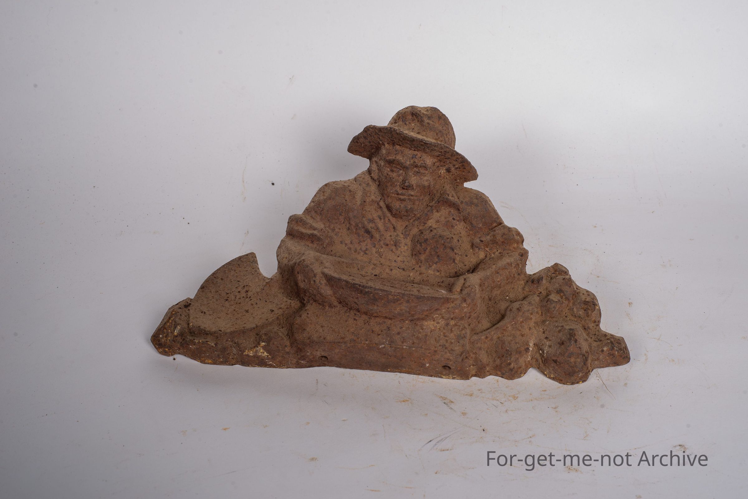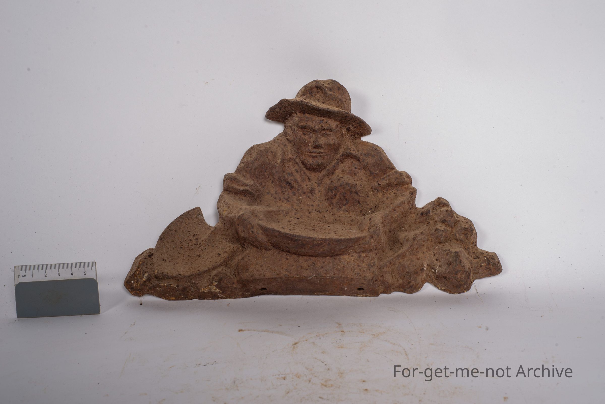 This is the image of a miner looking into his gold pan. The shovel one side, the pick the other. Beautiful piece. These are believed to have been cast in the Harding Foundry Ballarat.Collection