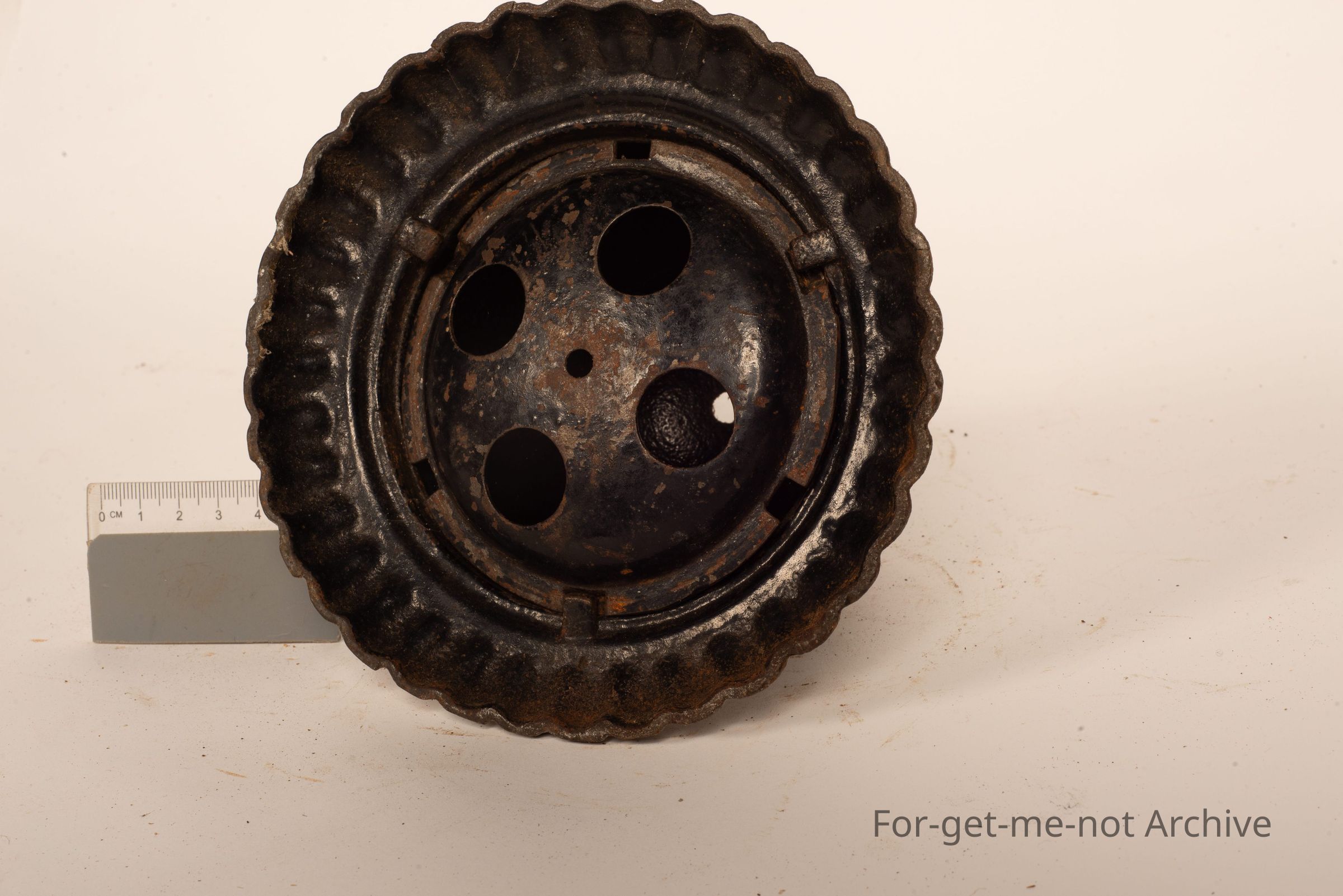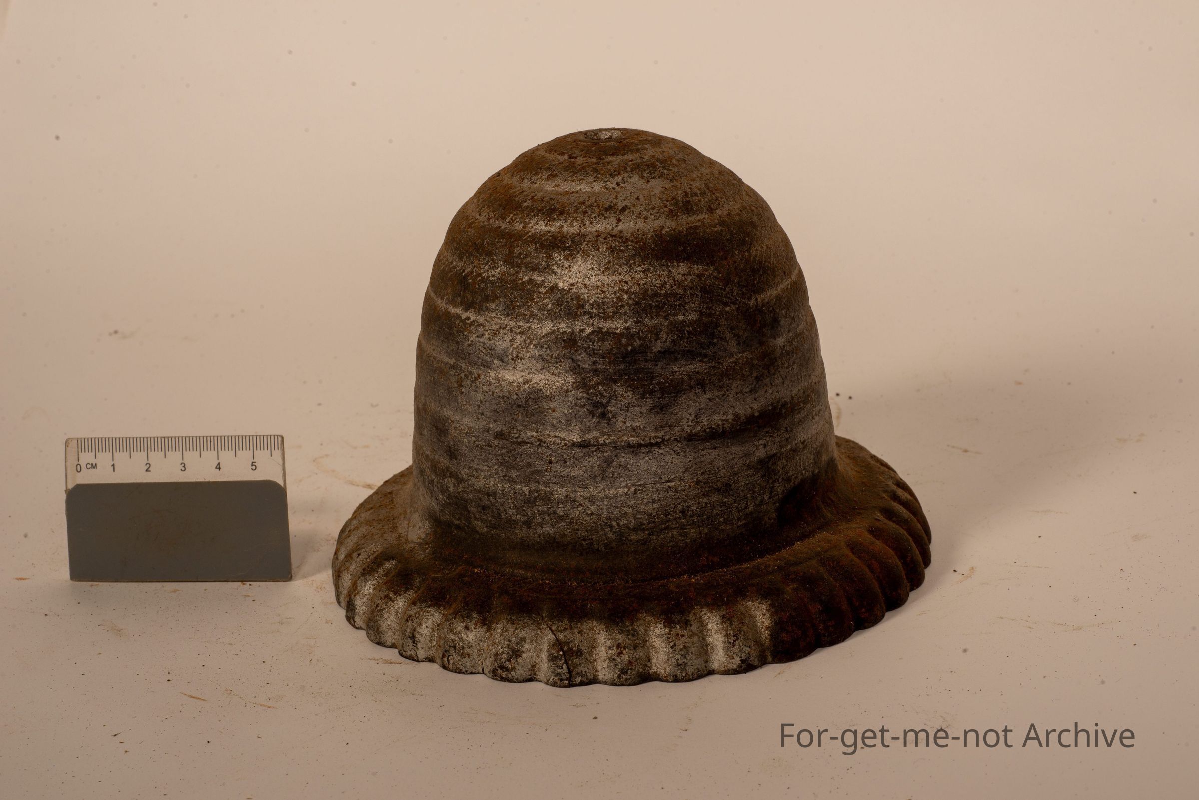 This is a cast iron string dispenser, another of the beehive model. This one has the original base in it. Once again, no cracks or chips. Very good condition.Collection