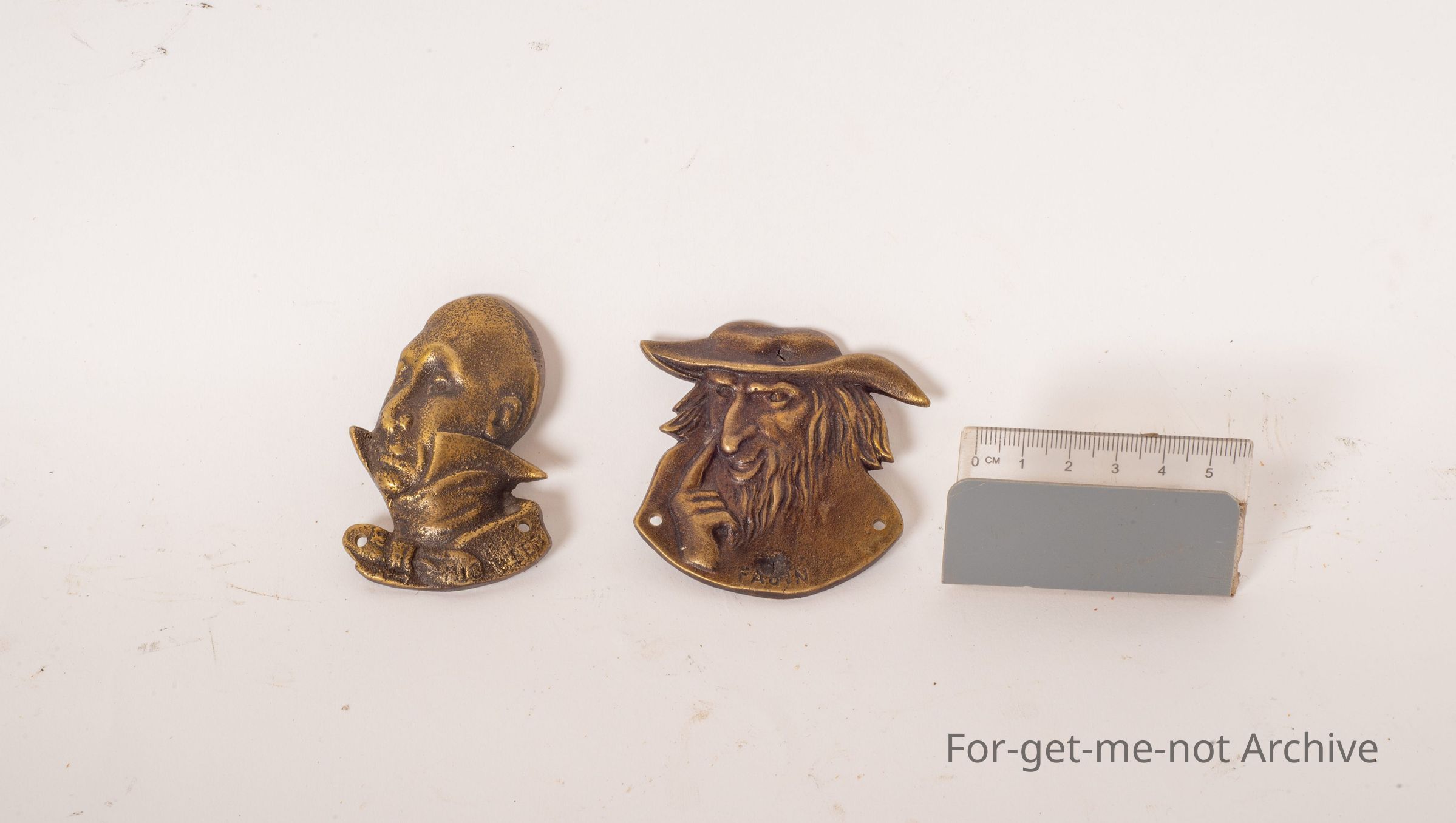 2 small profiles of Dickens' character. One, Fagan, the other one can't determine. Beautifully cast, in character tour