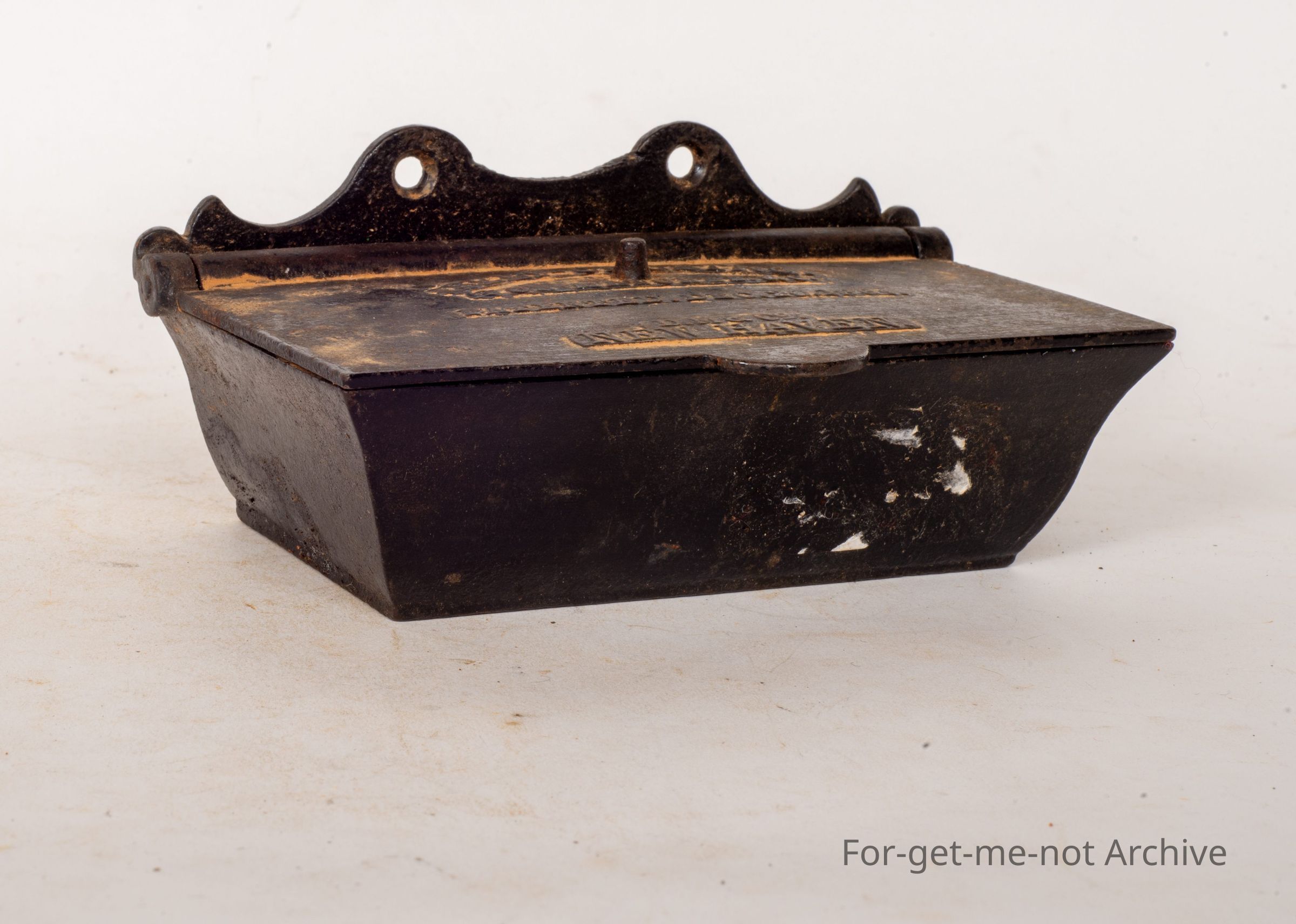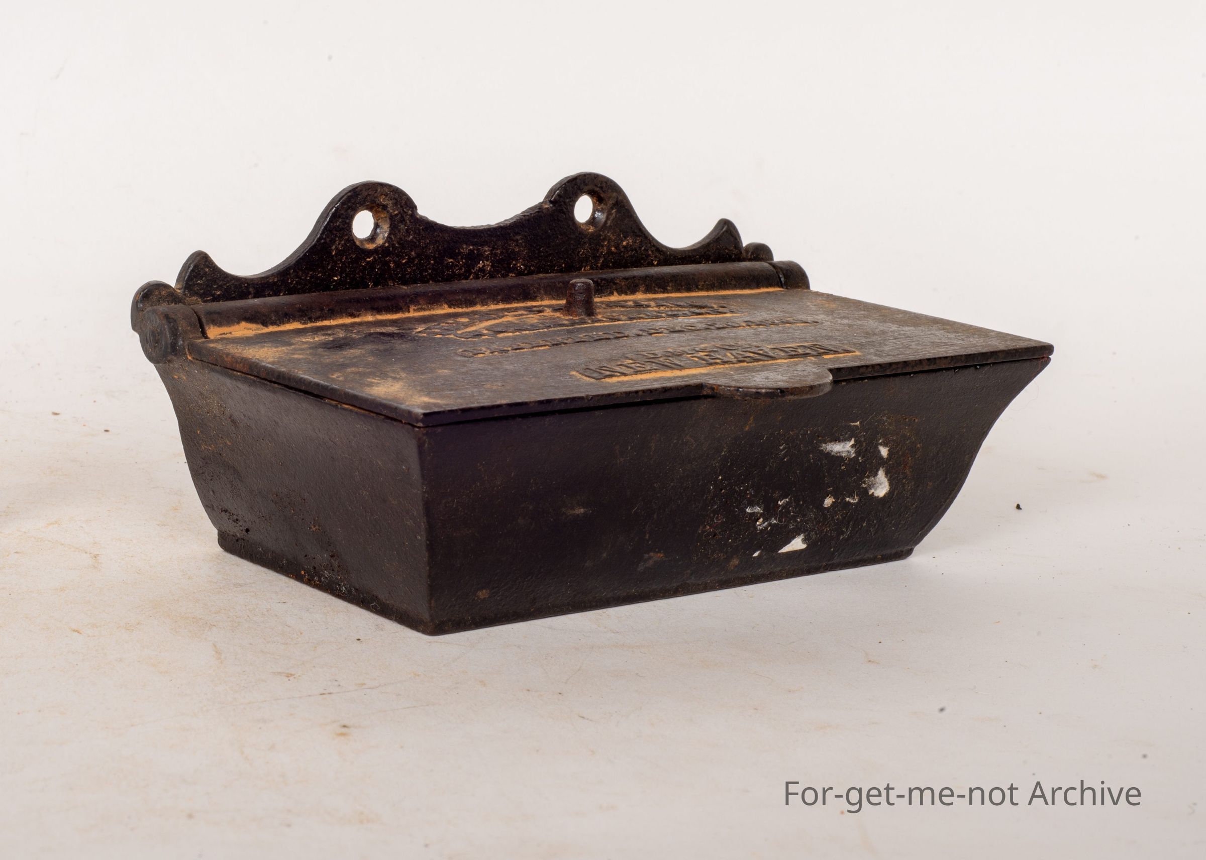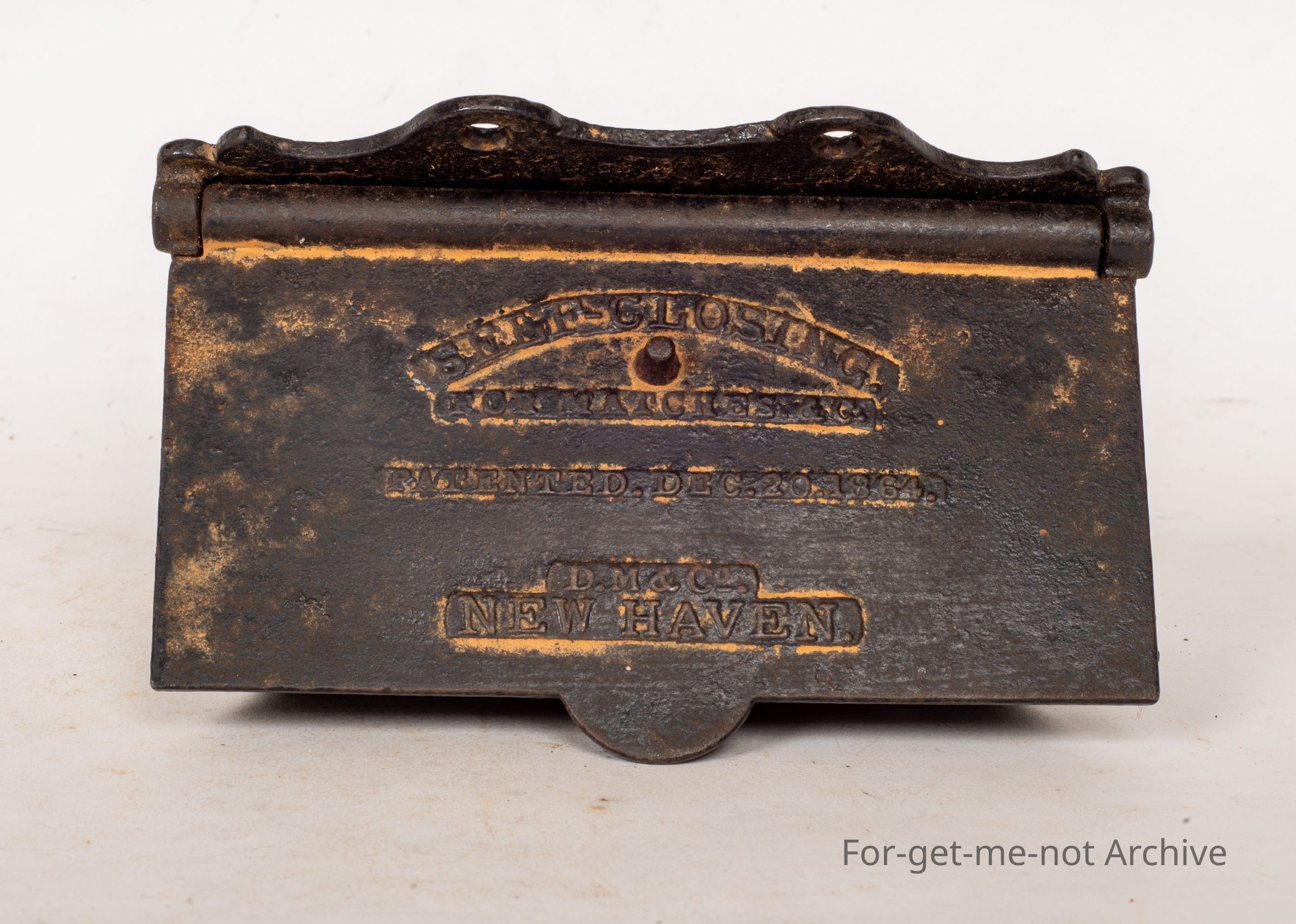This is another little cast-iron box for matches, self closing lid made by the DM and C Company, New Haven. Beautiful order.