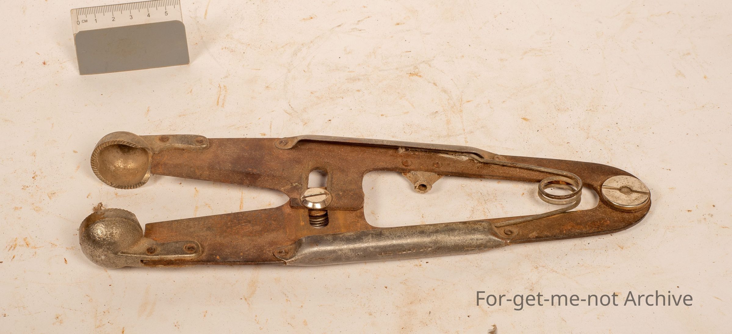 Castrating tools for, sheep. Has a blade cups for pulling out the testes. This is one of the more unusual ones. This was found in Russell Chic's store at Canowindra.