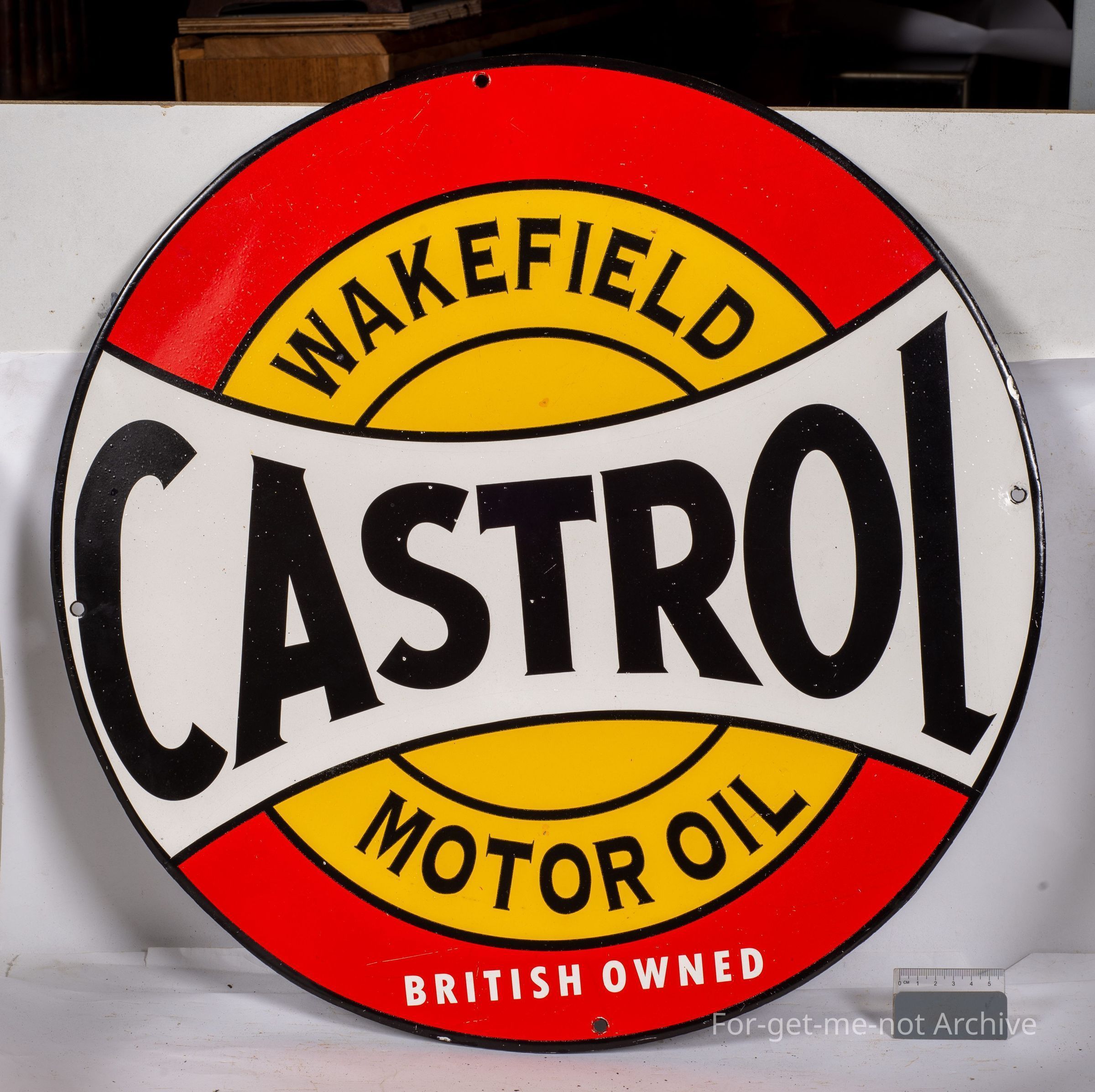 Sangeet Collection. This is a large circular enamel sign, advertising Castrol Wakefield Motor Oil. British owned. This is in good nick.
