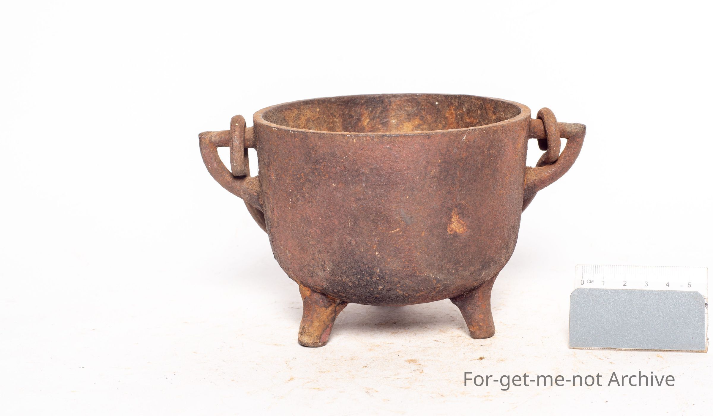 This is a cast iron, quart, cauldron type pot. Three legs, nice little handle, beautifully put together.