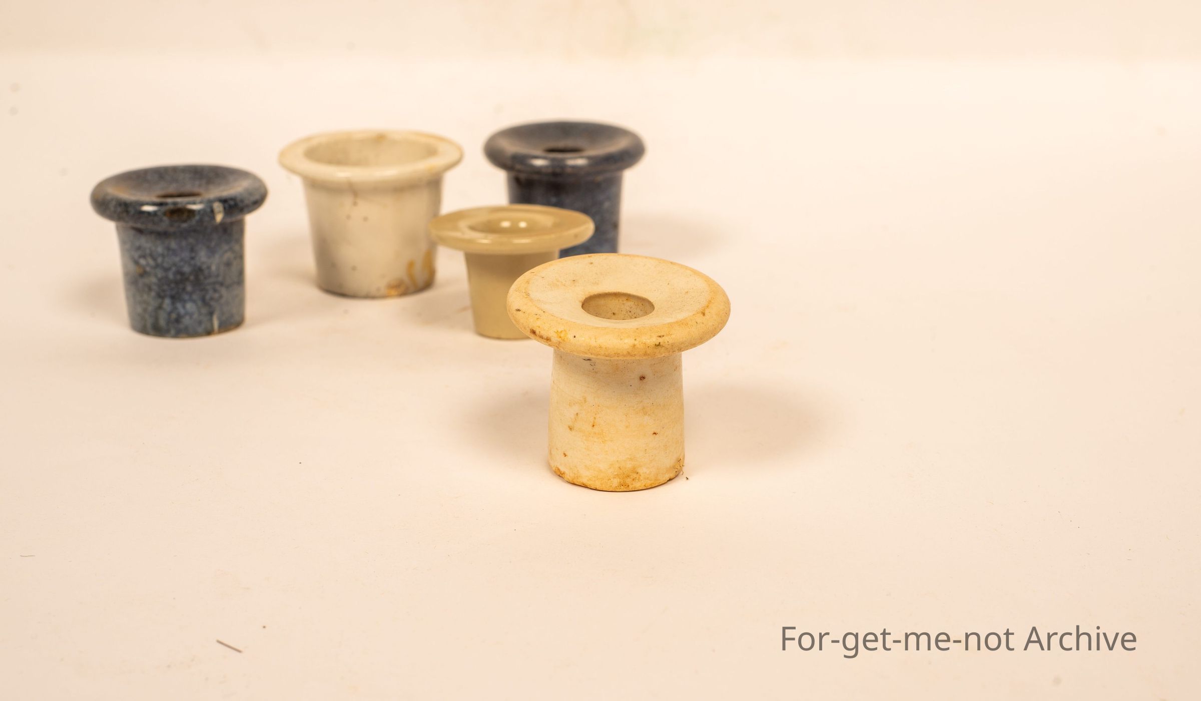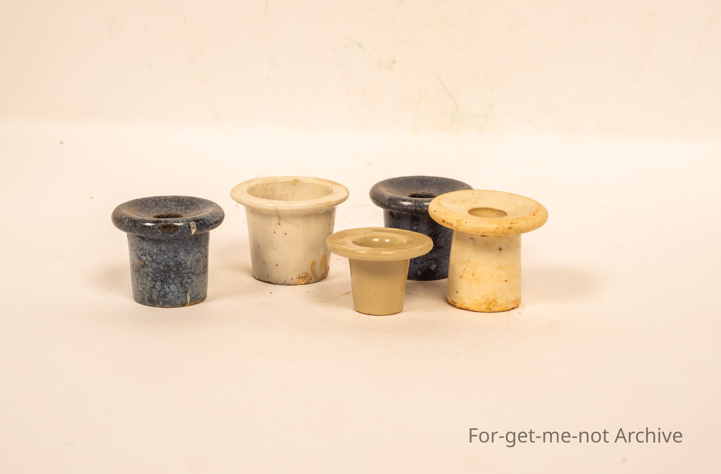 A group of 5 ceramic ink pots. One, the hat inkwell, very rare, very old.