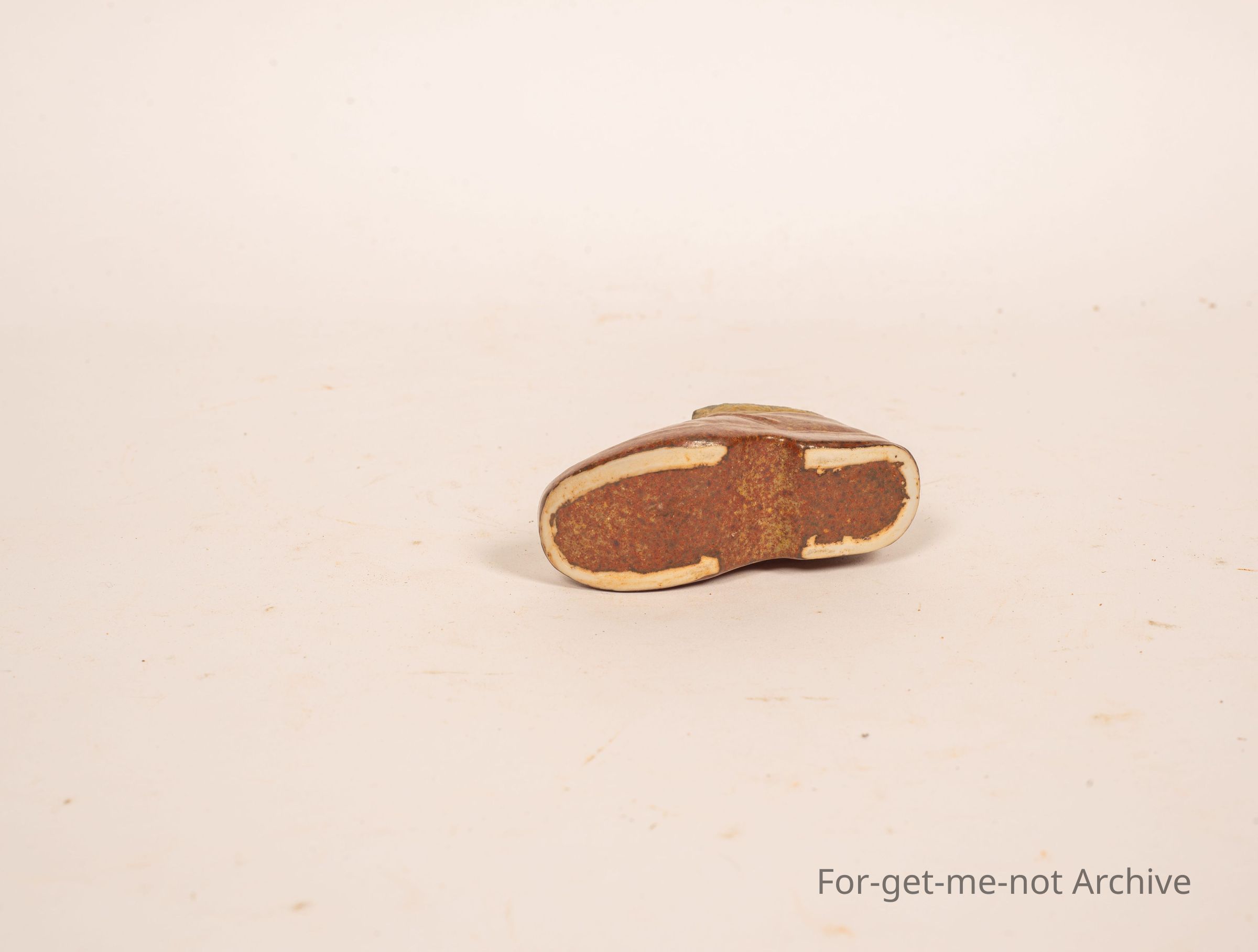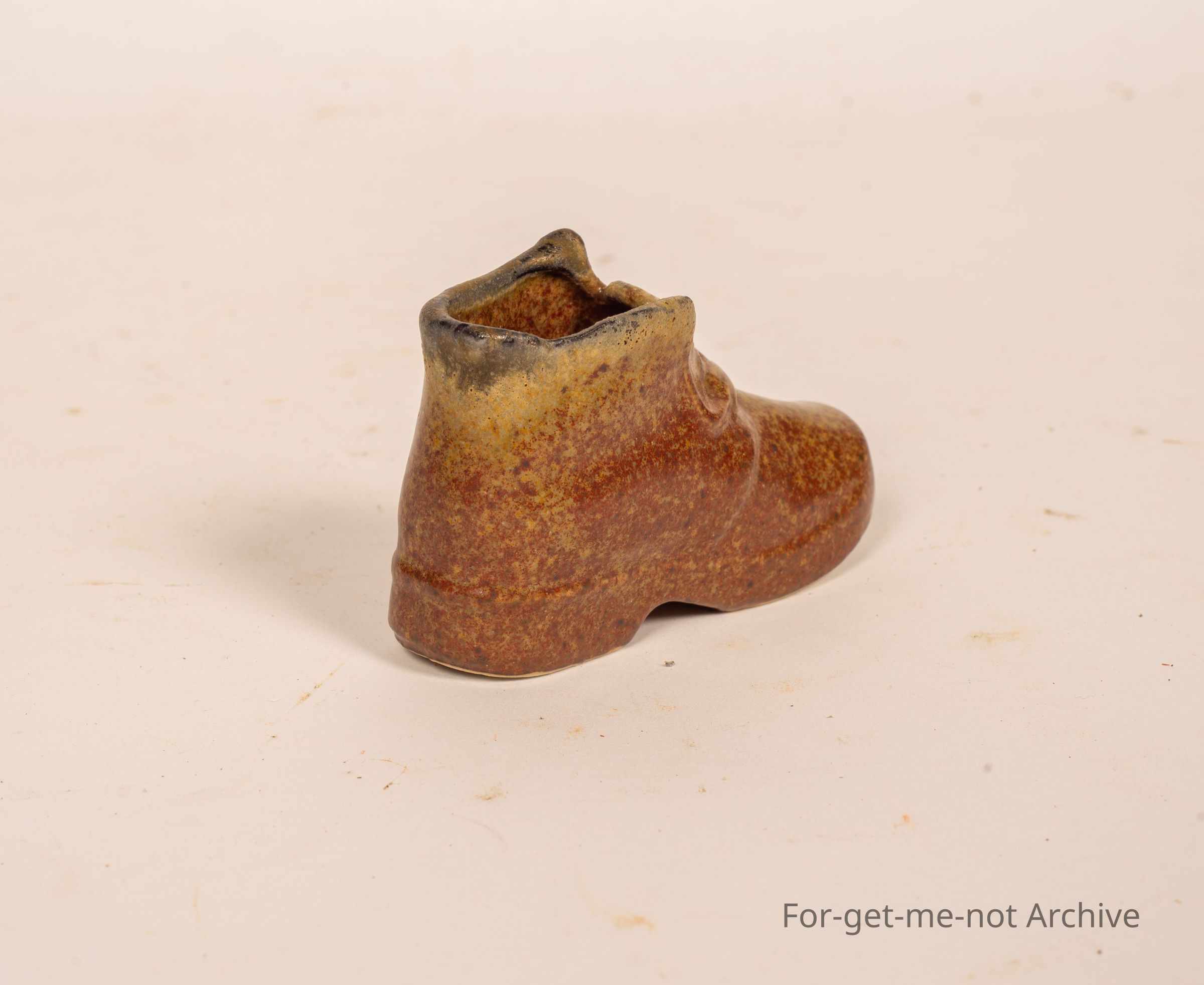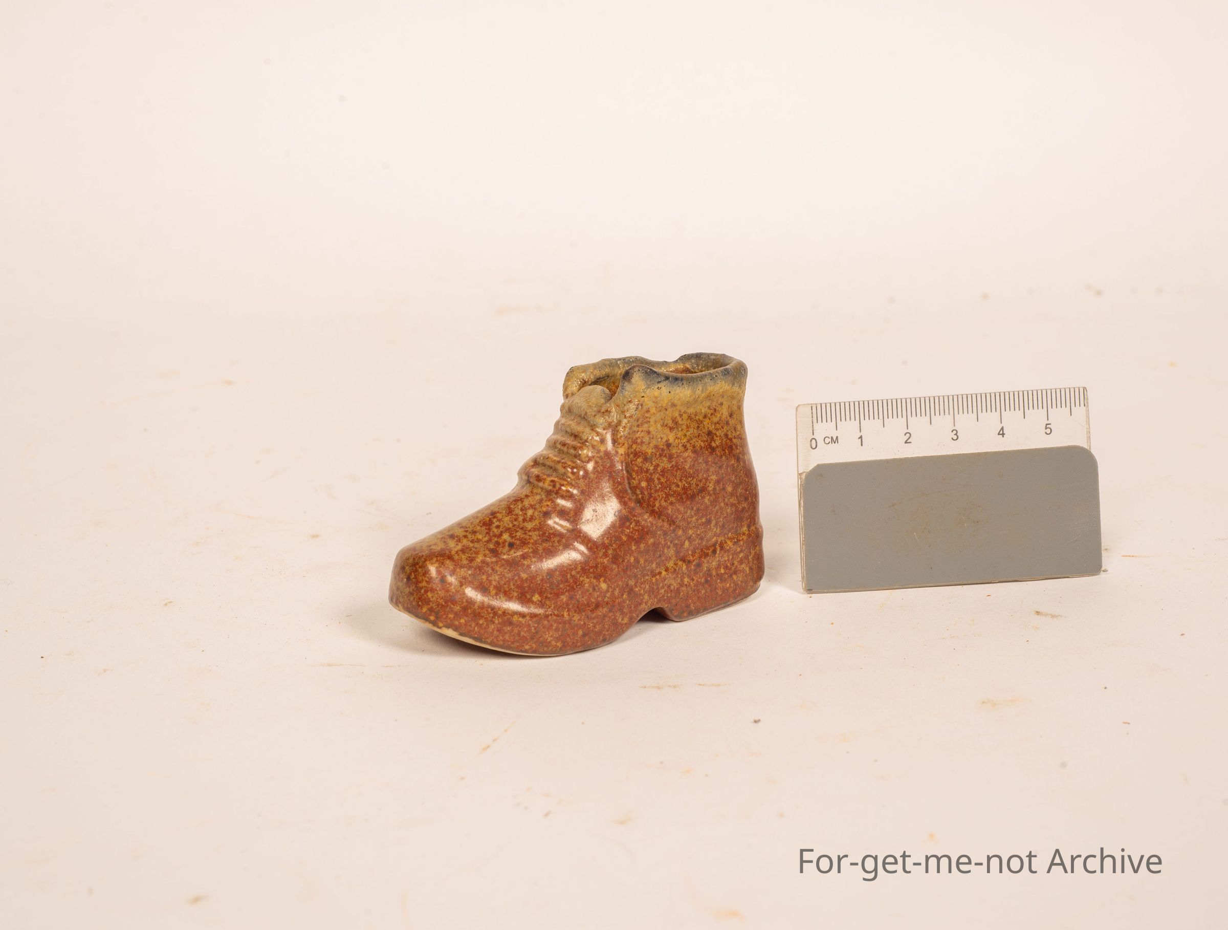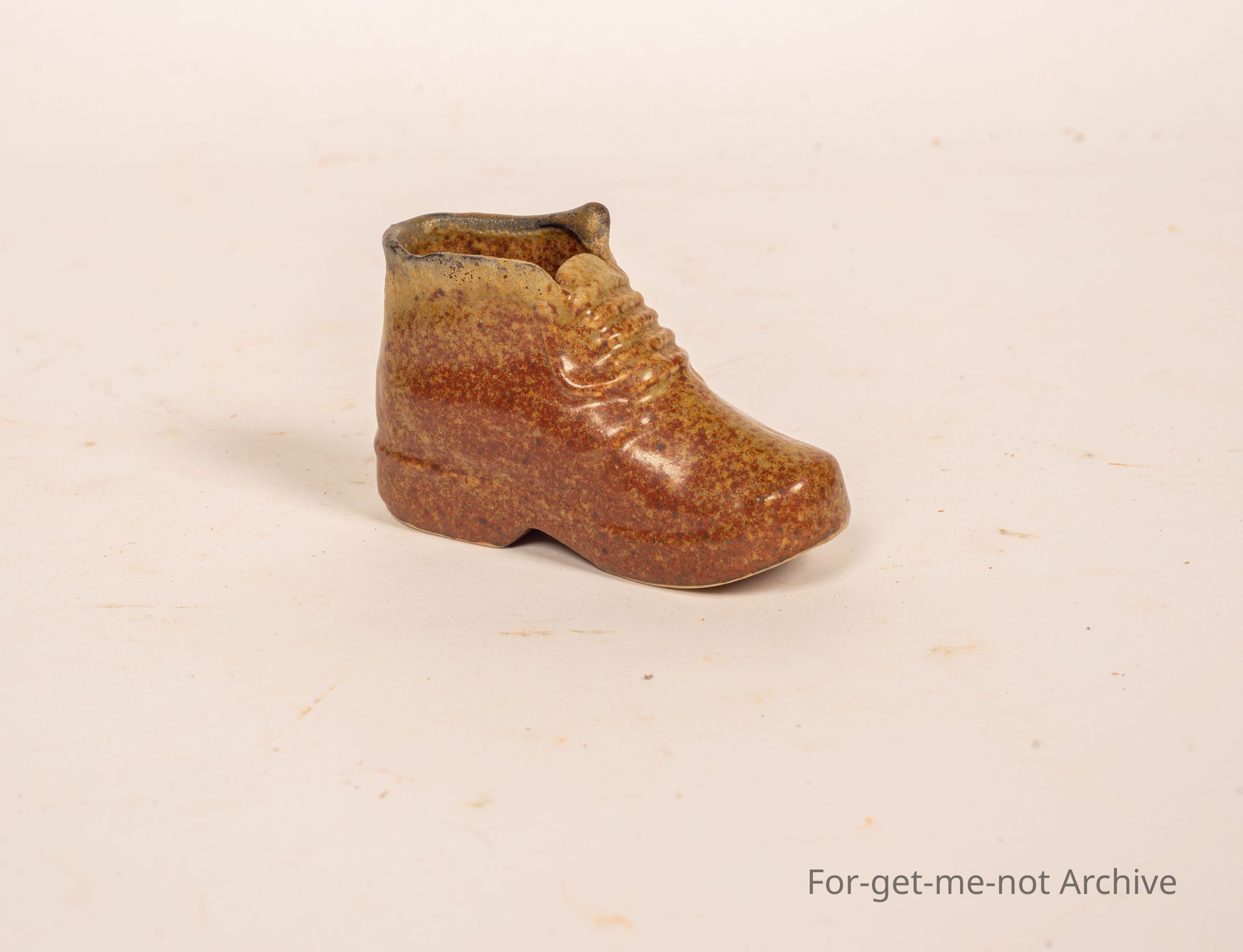 Is a little miniature ceramic boot, sole glazed. No idea what pottery, but a well done little thing,