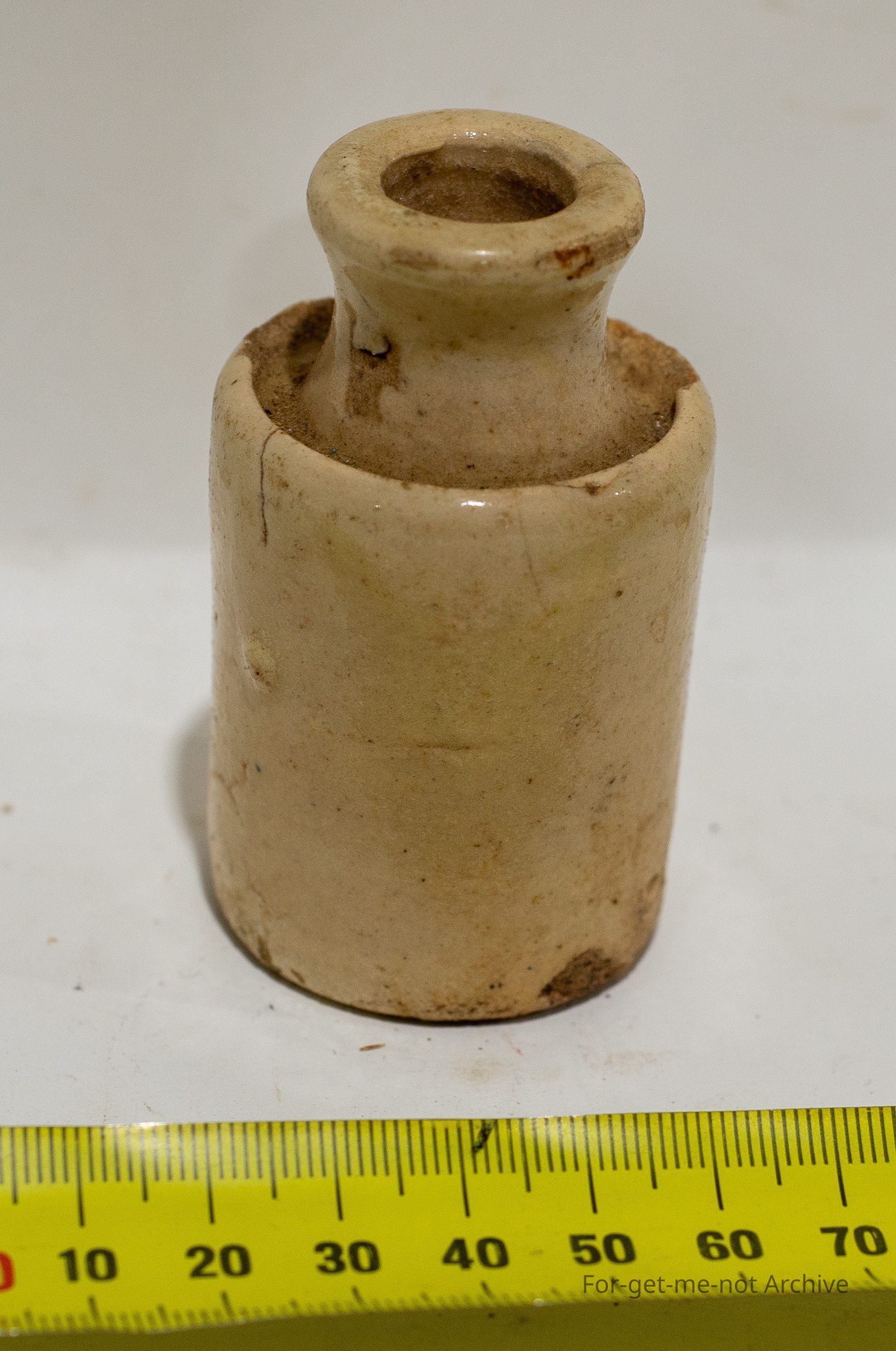 50mm high bottle with a drip catch lip, possibly for murcury ?