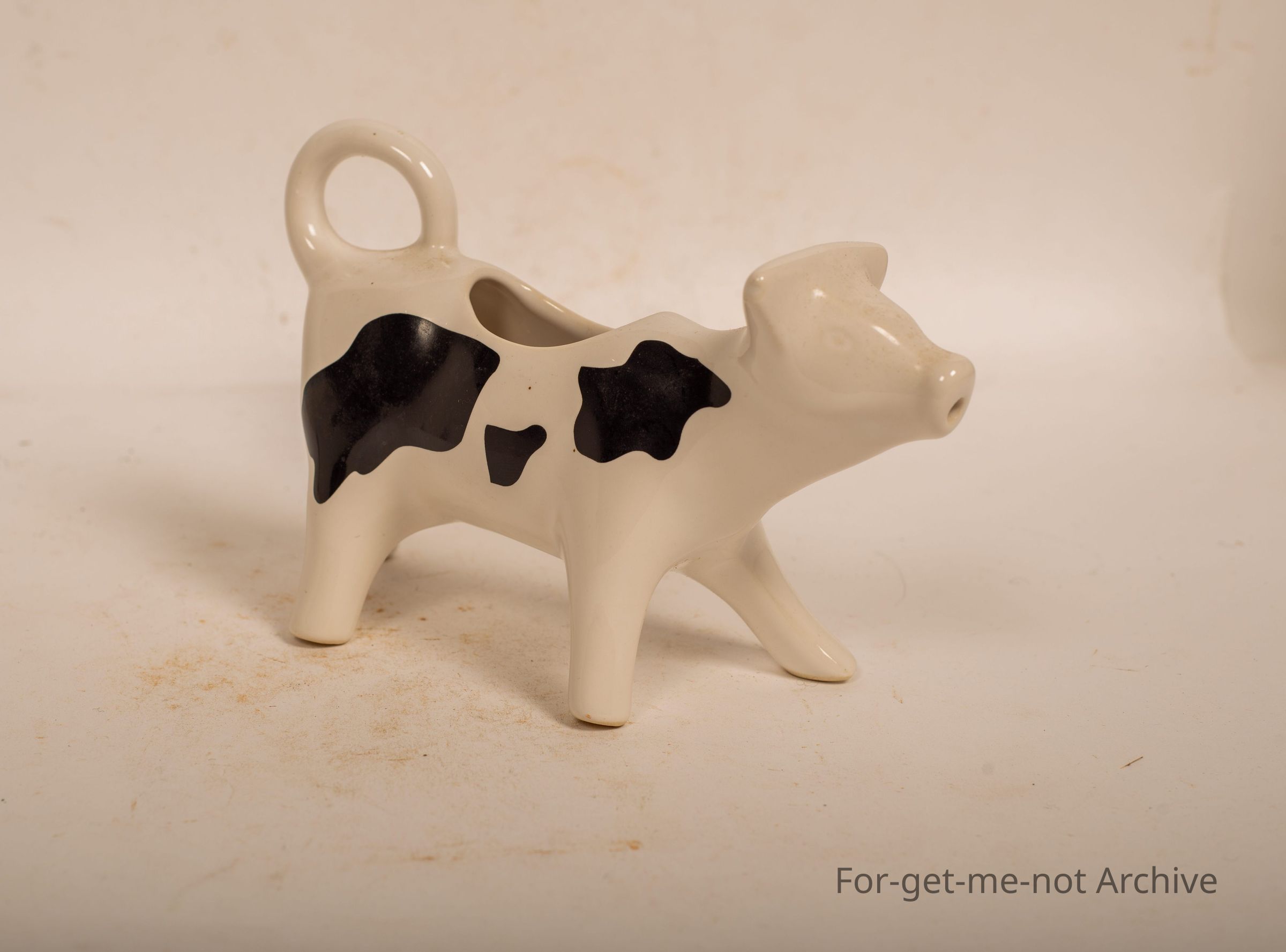 A ceramic cow advertising Ivomec Plus. This piece could possibly have used as a mug as it holds milk in the top, and the milk would pour out through the nose. Advertising piece or a gravy boatCollection