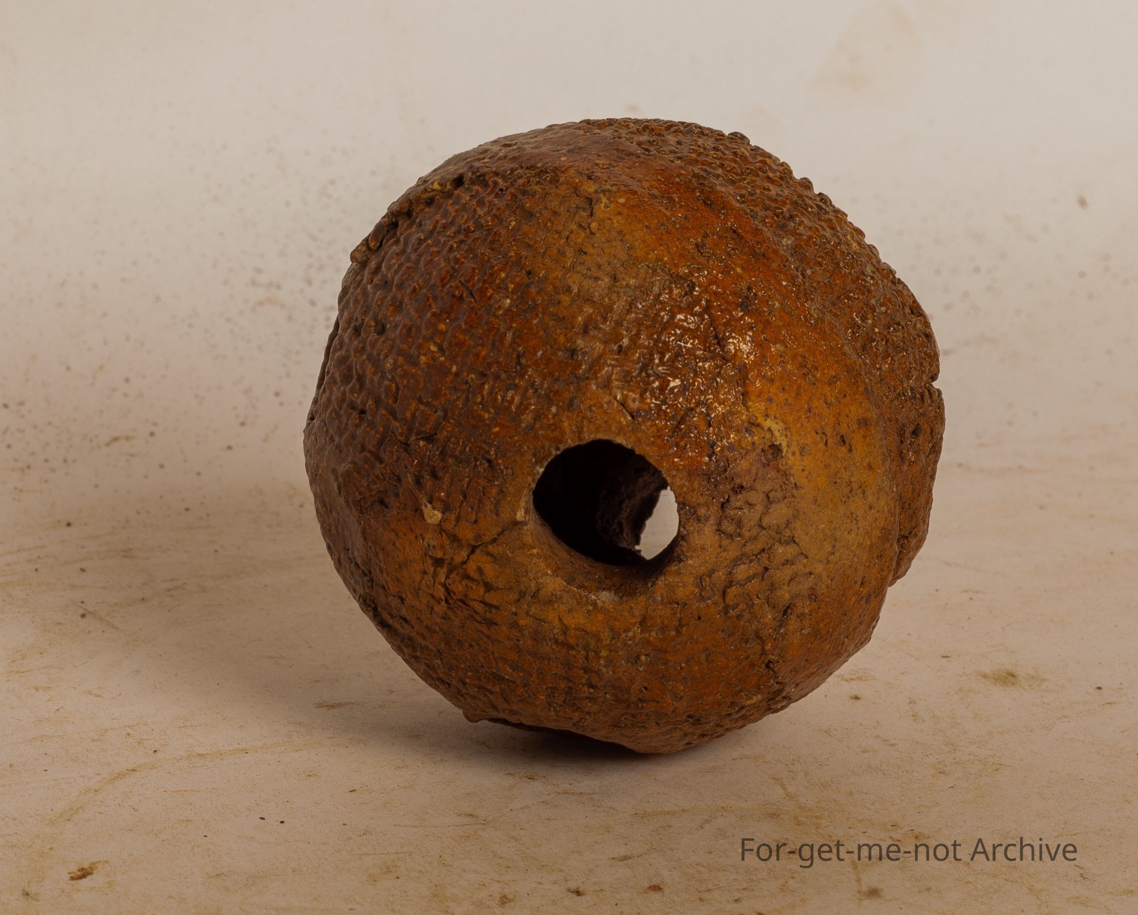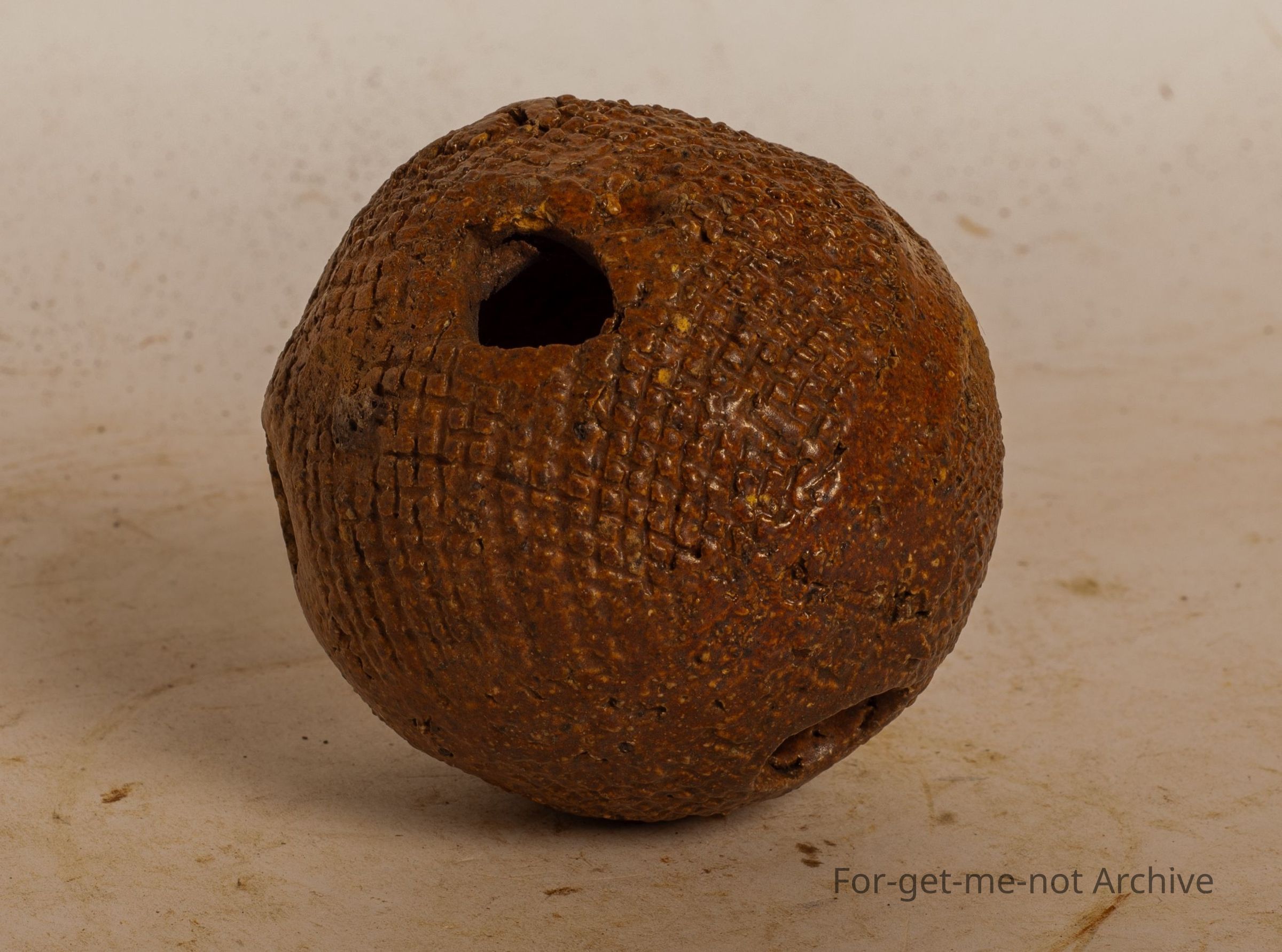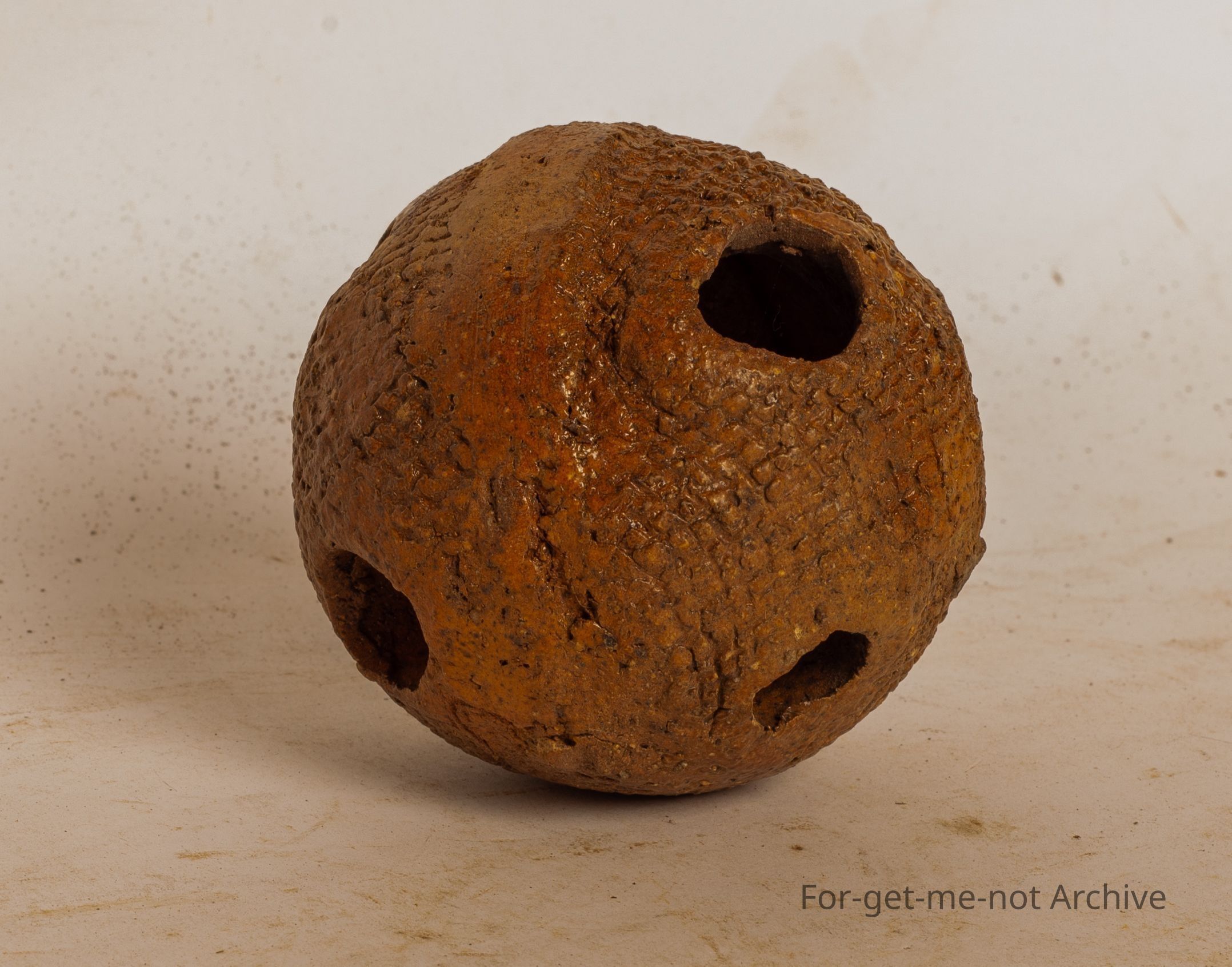 This is known as a ceramic fire ball. They were made, hollow in the centre with holes to jam, pieces of glass or pine needles or such in. They were lit and then used to, light numerous fires in the early homesteads. Very scarce, quite obscureCollection