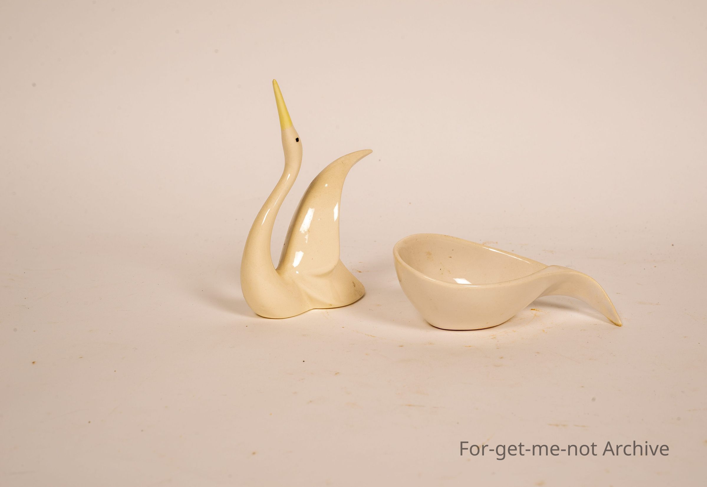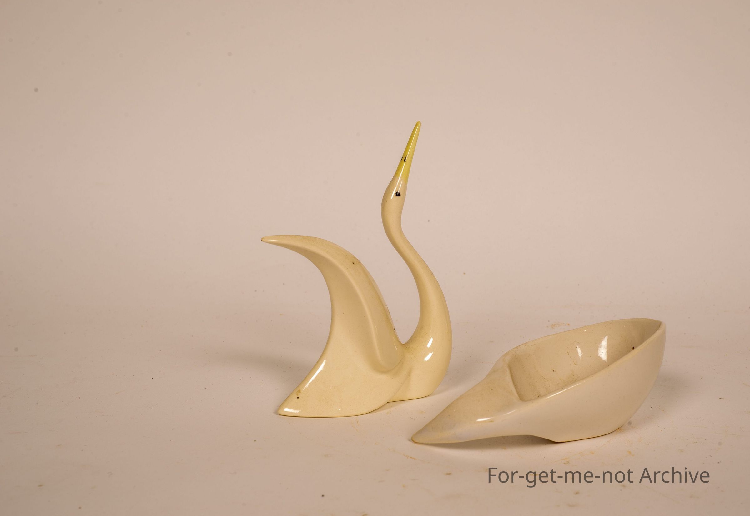 2 pieces of very fine elegant ceramics. One is the shape of the bird, the other one in a teardrop bowl. Both signed Martin Boyd.