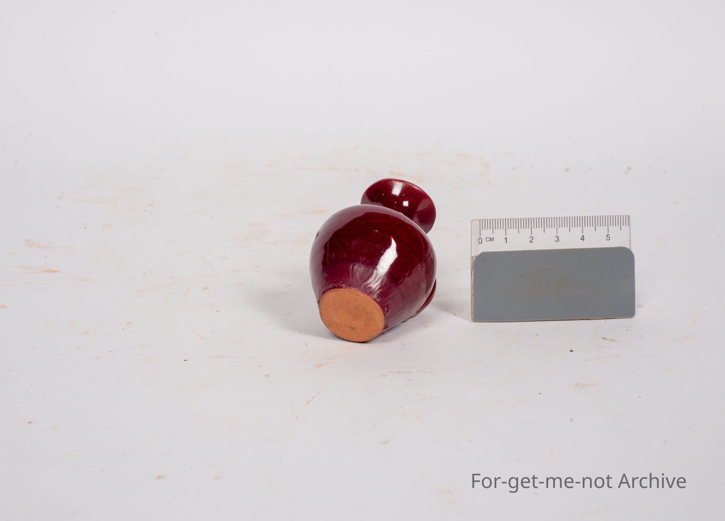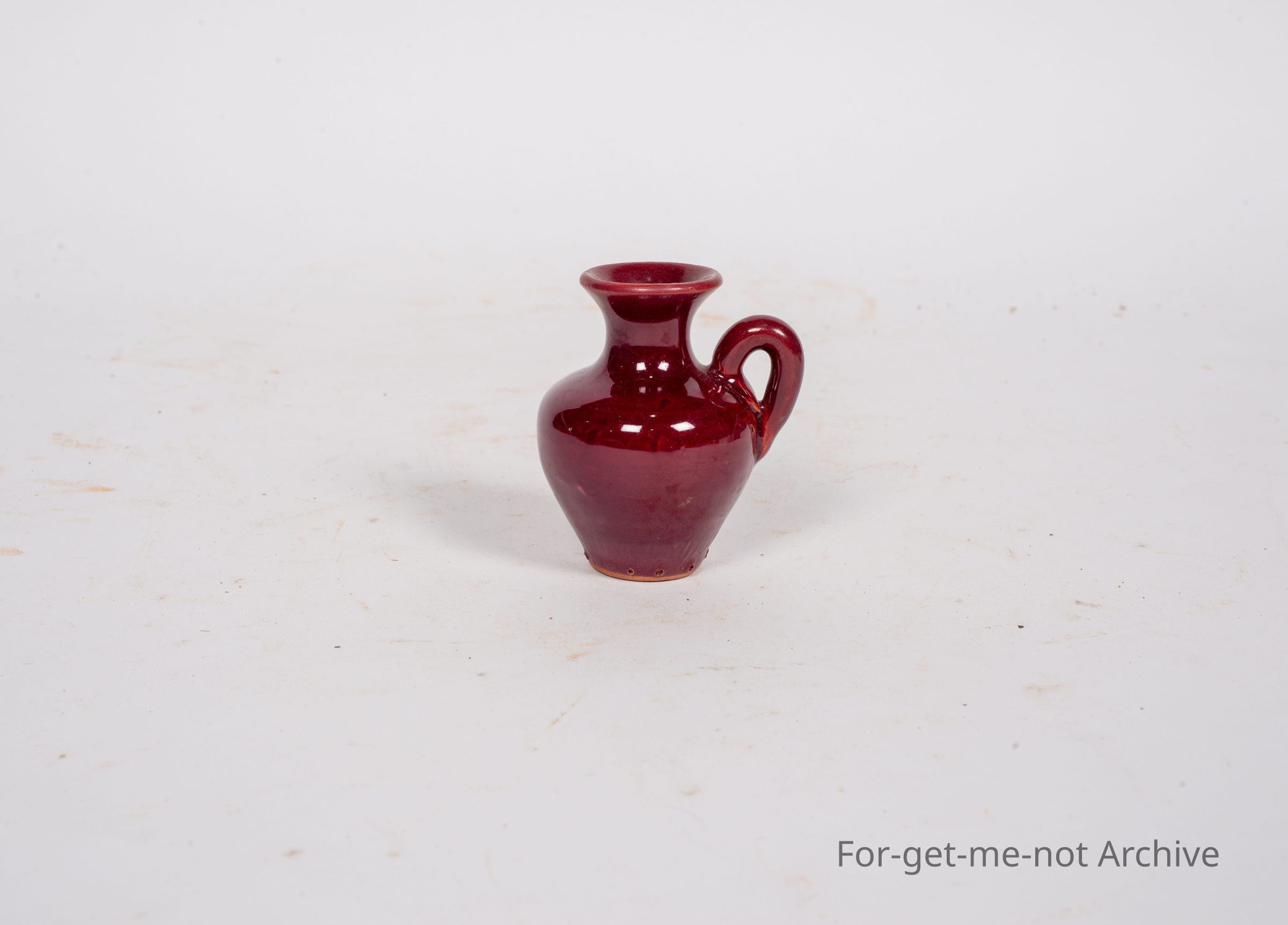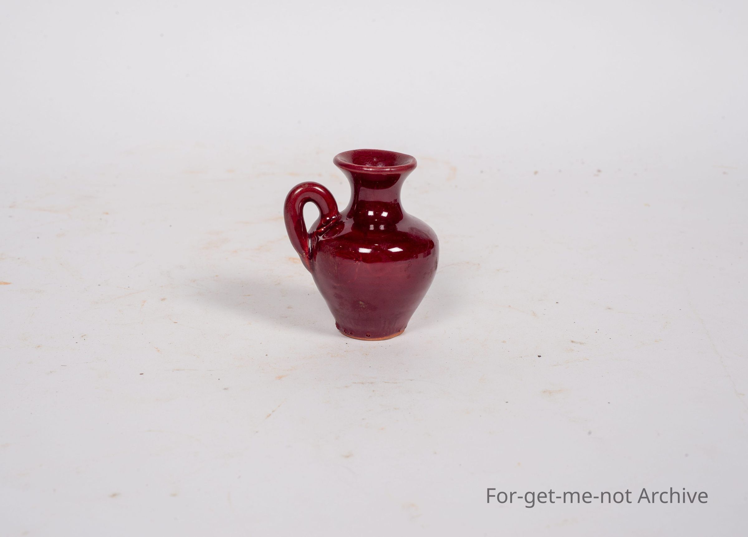 Another small ceramic pot. This one with a handle, a very deep burgundy glaze
