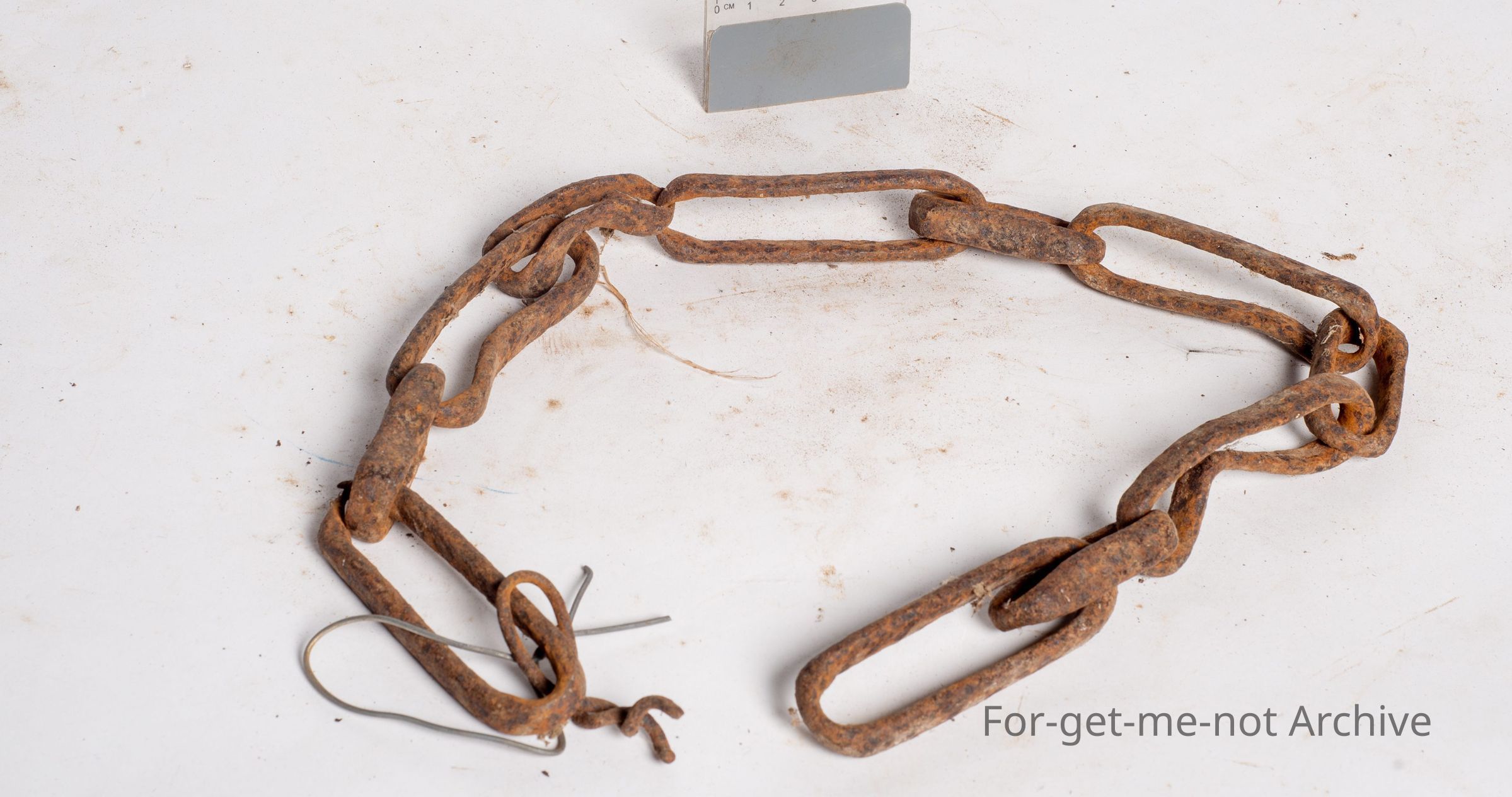 3 foot piece of chain, blacksmith made. They're flat steel wrapped, chain links, different the one one short one. Early century.