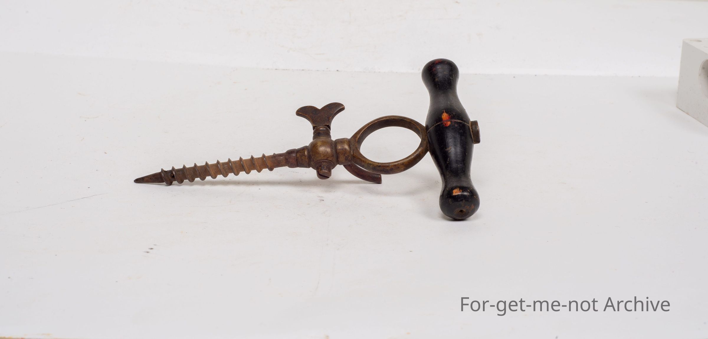 Is another quite ornate and very old champagne tap with a tap wooden handle and a thumb, a finger piece to give you extra momentum of turning. This one would polish up into a glorious little piece.Collection