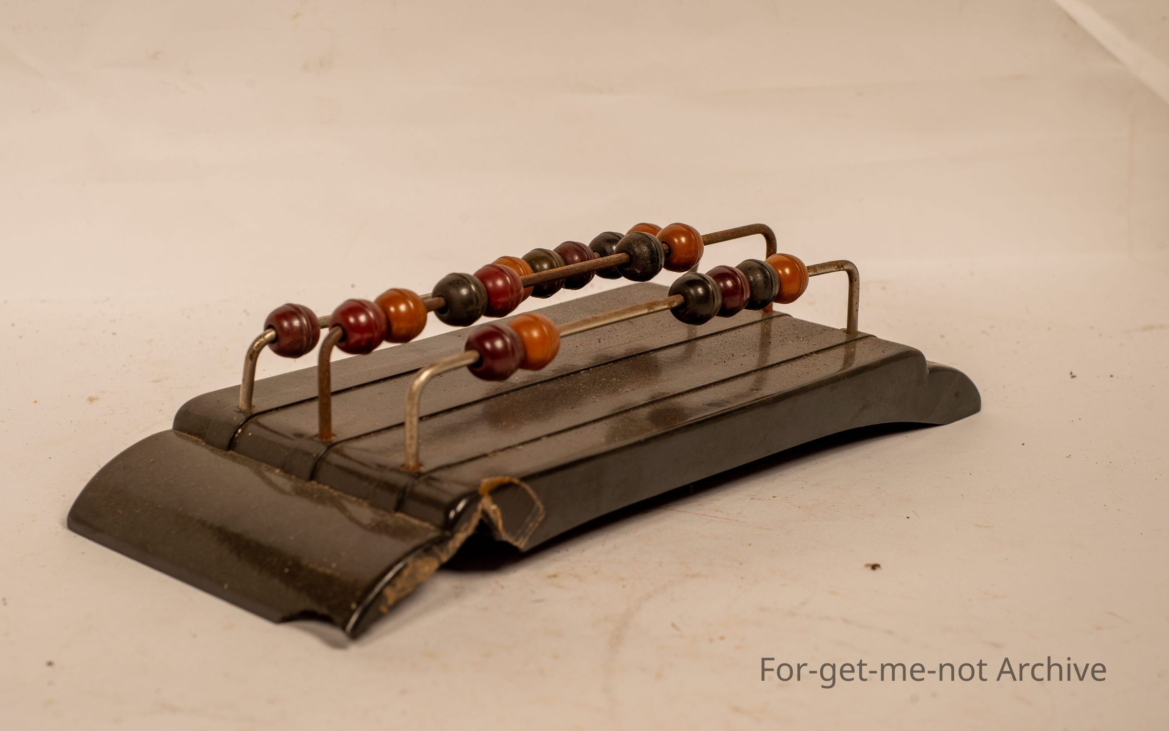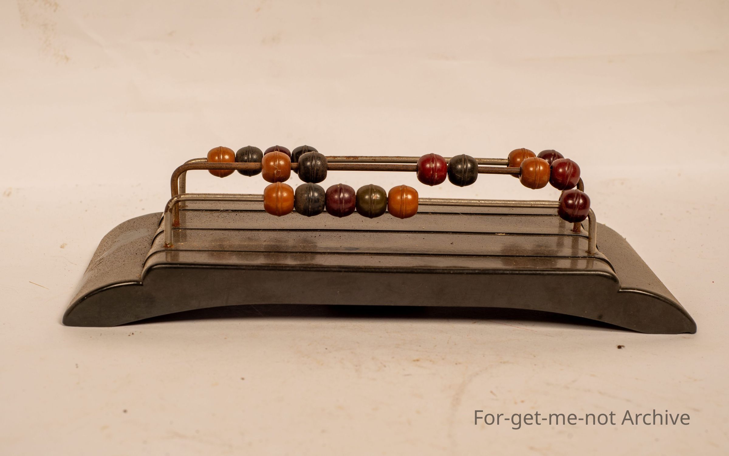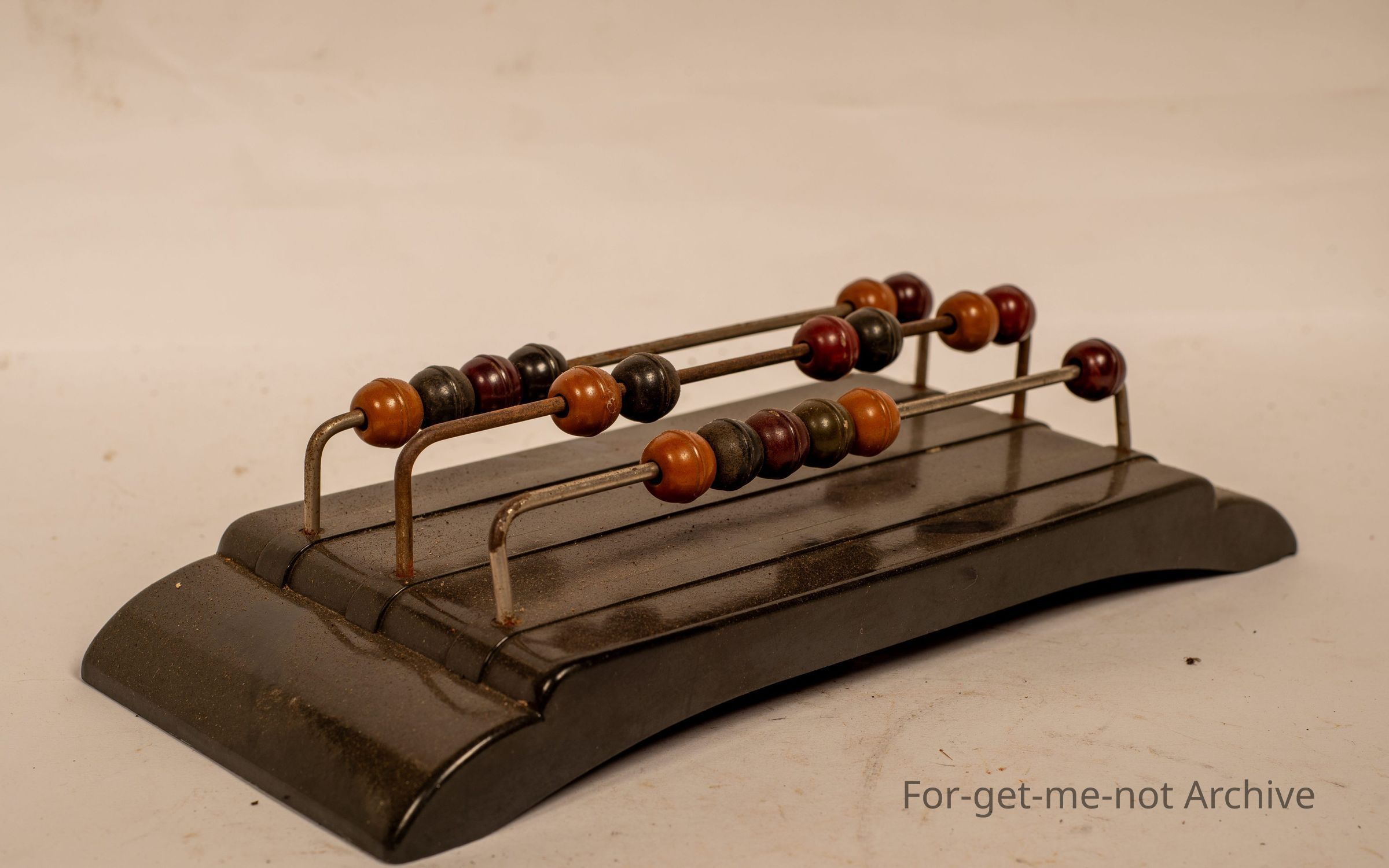 Bakelite base. With 3 rows of balls on a wire frame