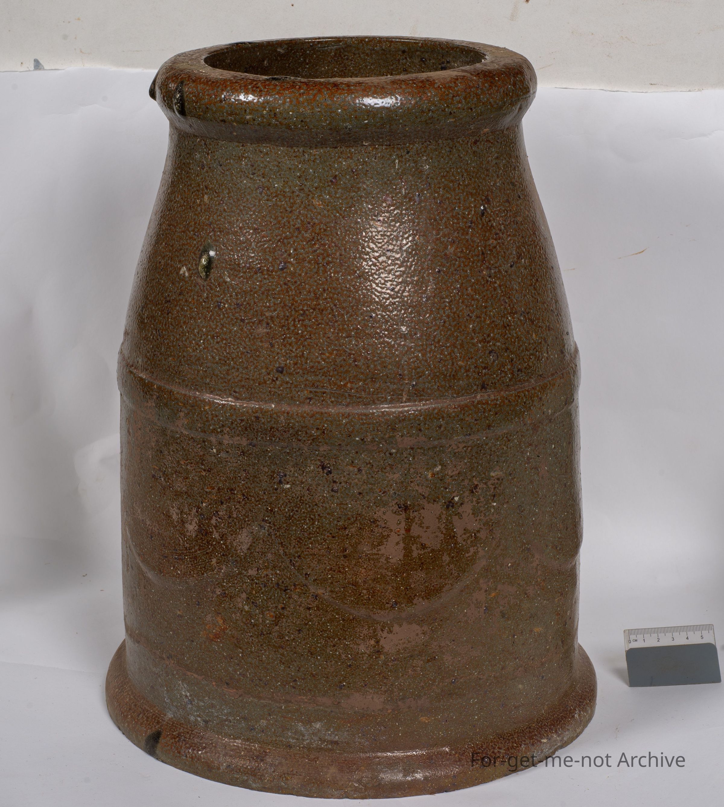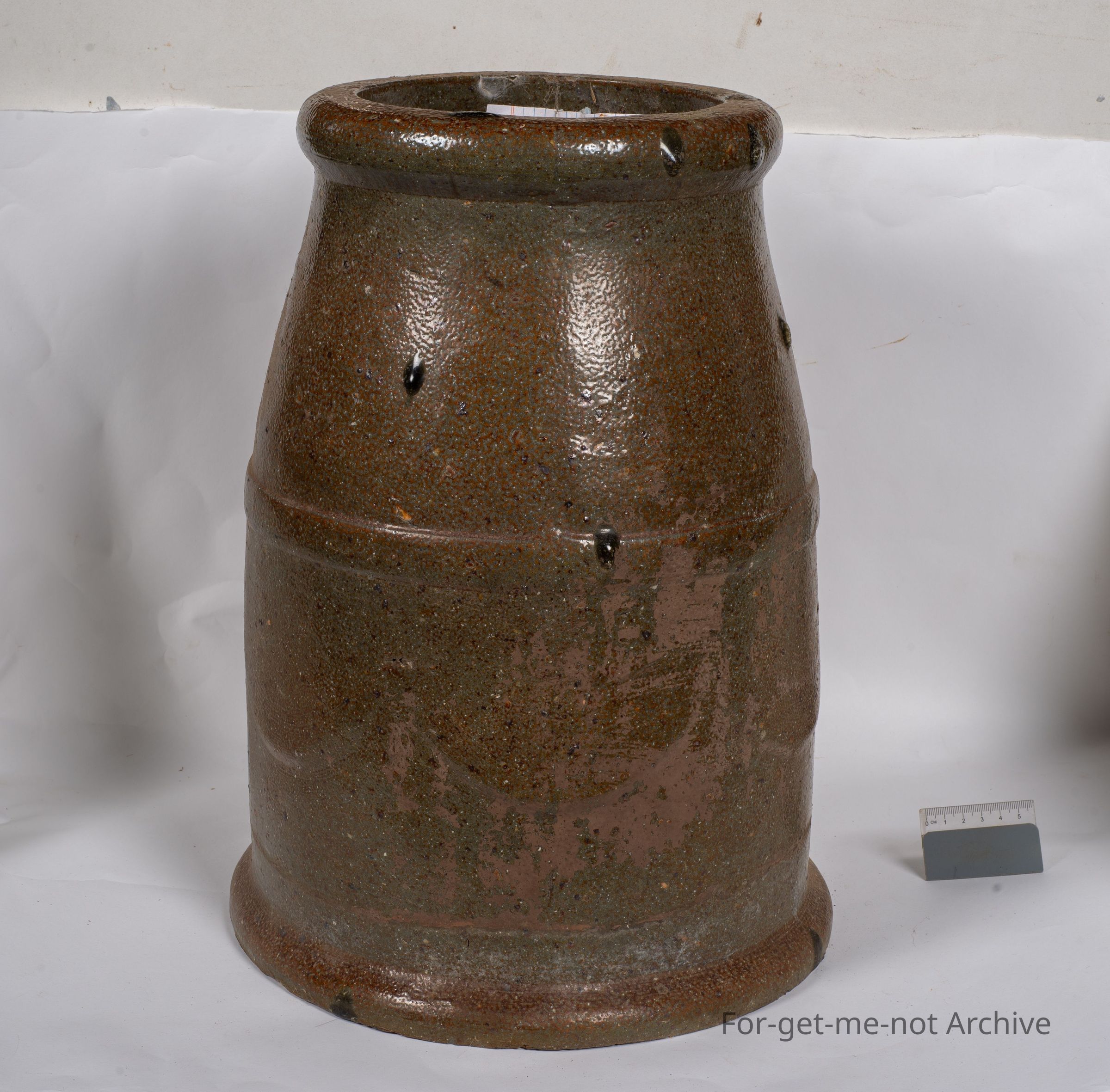 This is, ceramic pottery. This is a very large heavy chimney pot, done by George Marks Ballarat Pottery. No stamping. He didn't stamp anything, but very identifiable by the extraordinarily heavy build of everything he made and the excessive use of salt in the glaze. A marvellous early piece before Marks left and went to South Australia to open up Ballarat Pottery. Ballarat. Marks went to South Australia and open opened up Adelaide Pottery, South Australia. Correction. It was not Ballarat Pottery South Australia. The Ballarat Pottery was in Ballarat.Collection