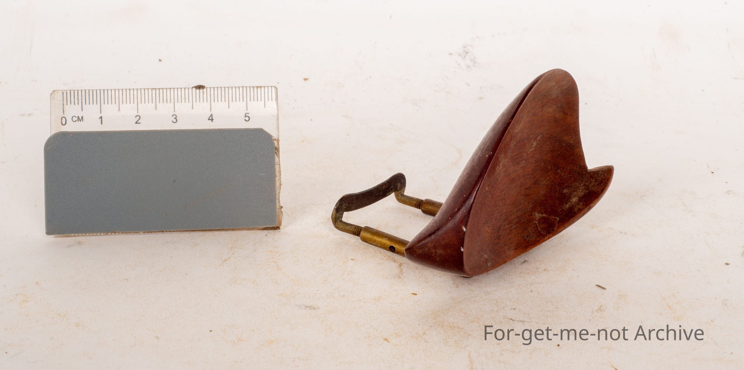 This is a beautiful little chin rest for a violin player. The section where the chin goes is carved wood. The remainder of the apparatus is adjustable on little, glass turnbuckles. Beautifully made. Quite an unusual piece when you're not a musicianCollection