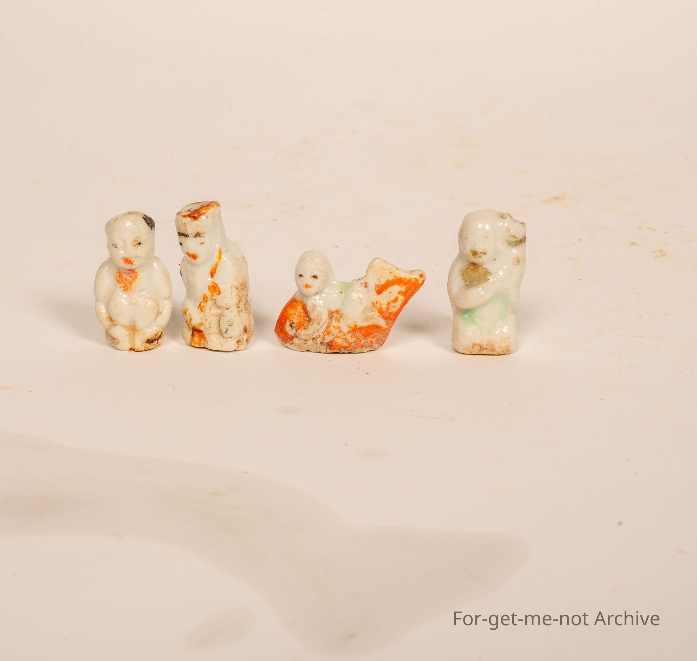 This is a group of 4 Chinese blessing dolls. These are quite old. Most almost lost all their original hand paint work. the group of 4