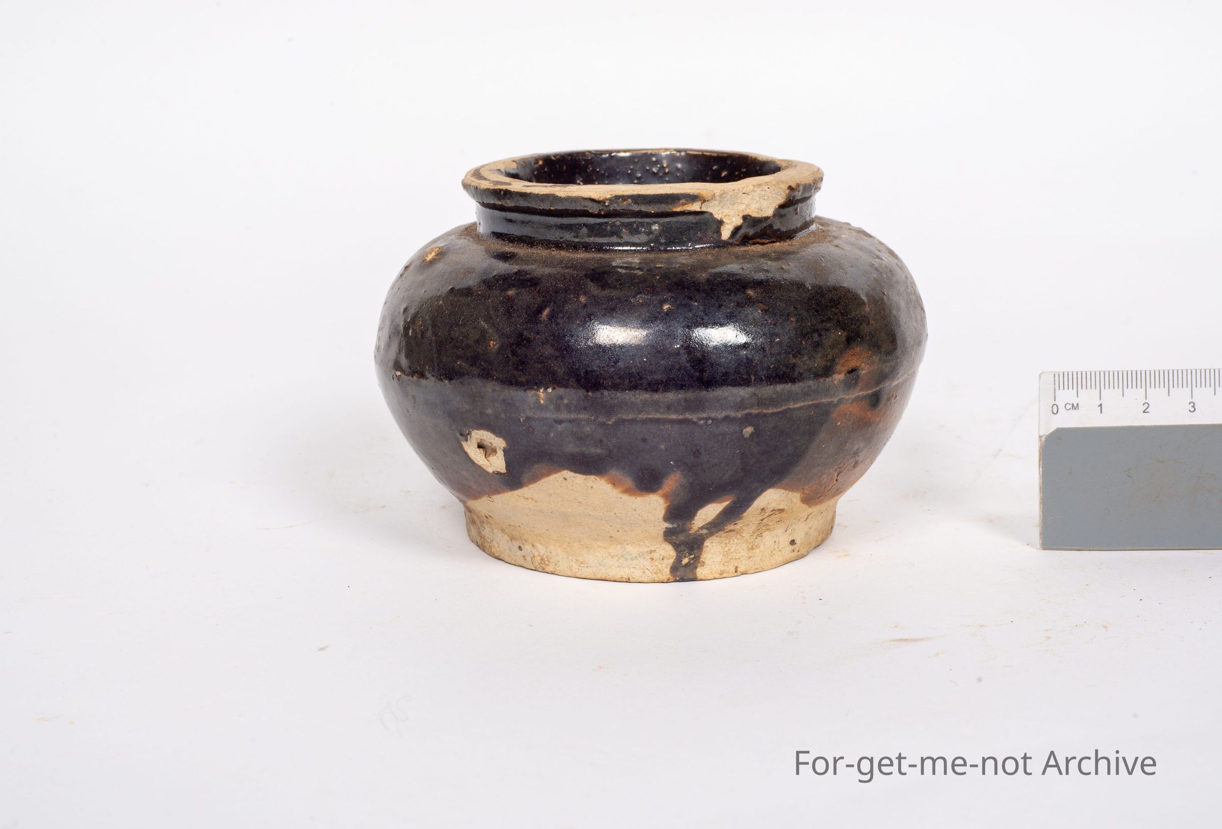 Another Chinese jar. This time with, a dark ruffle glaze, perhaps a, preservative jar,