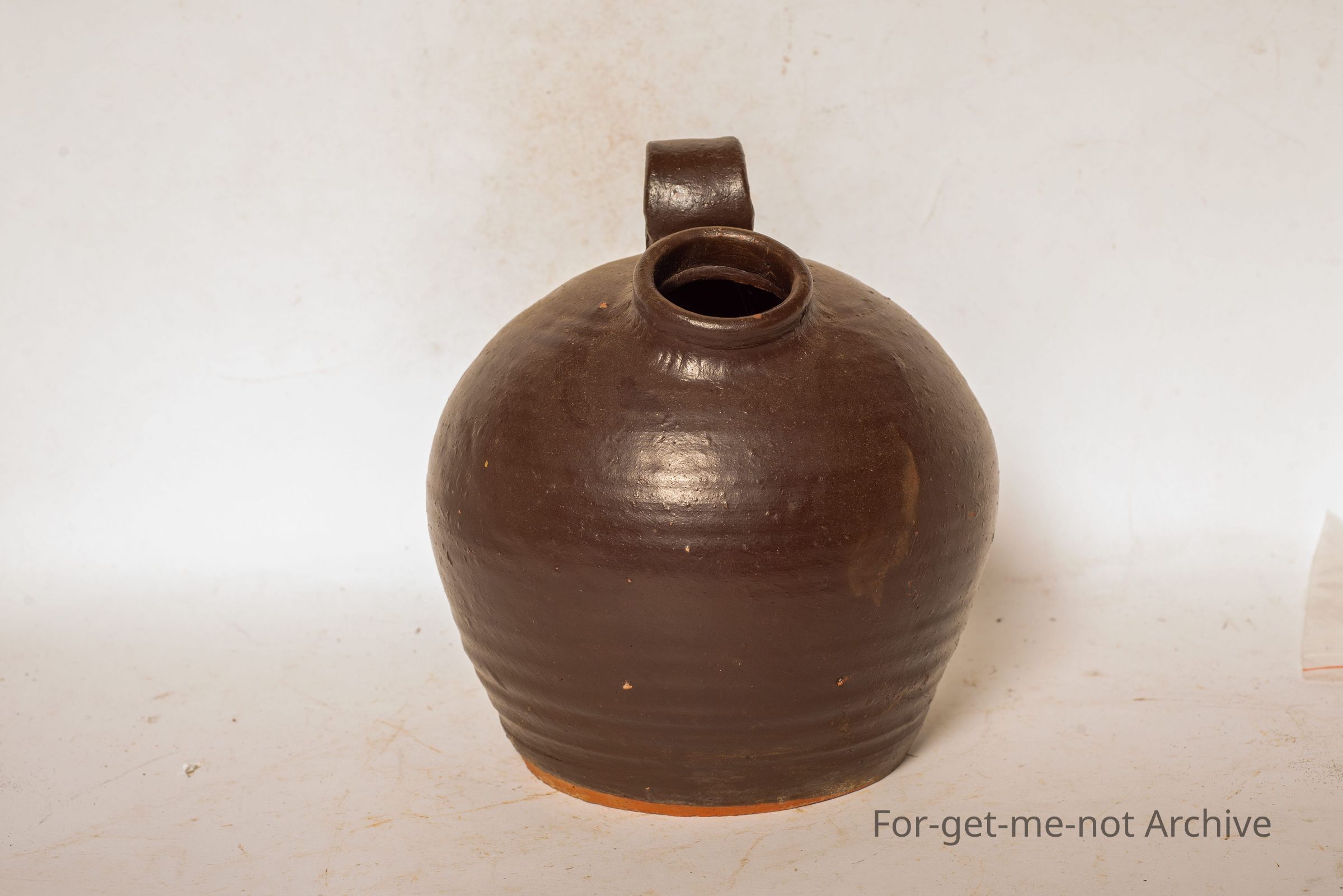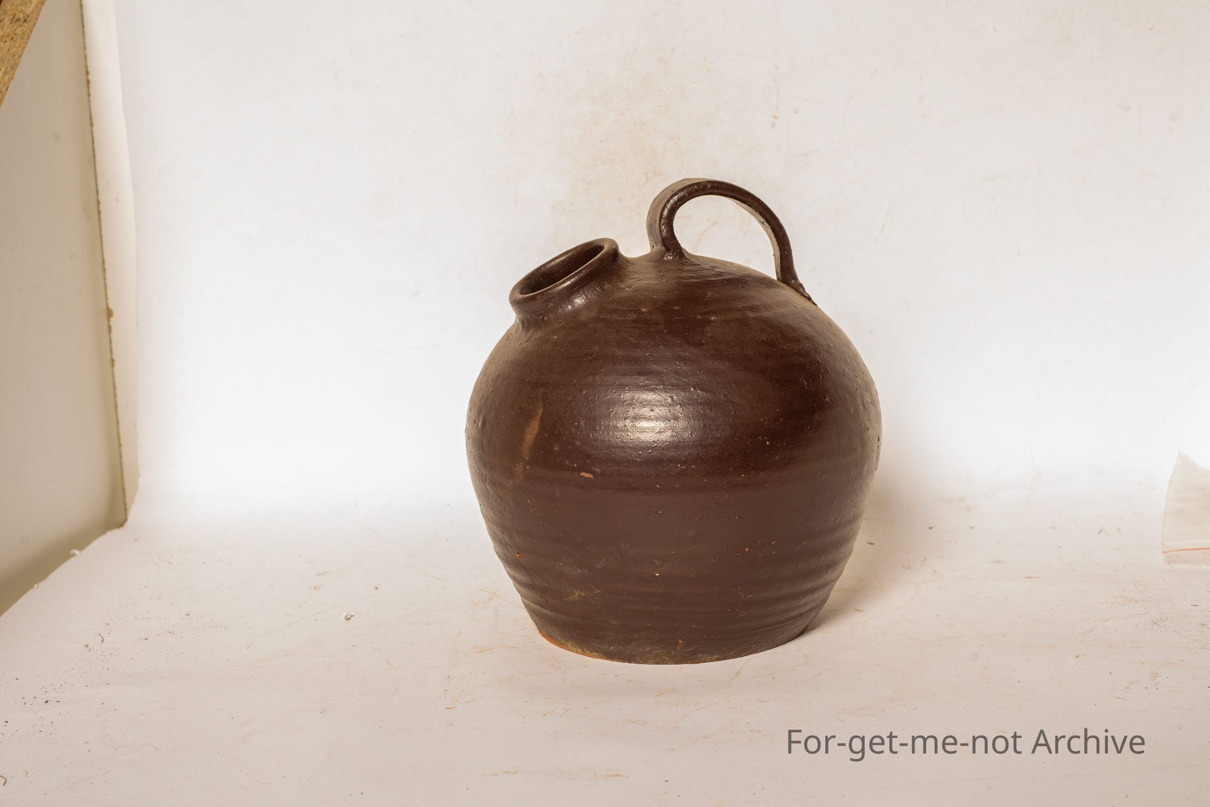 Another Chinese pot. This is the traditional, dark brown glaze, almost a terracotta type firing. This piece was used as a water pour at meals.