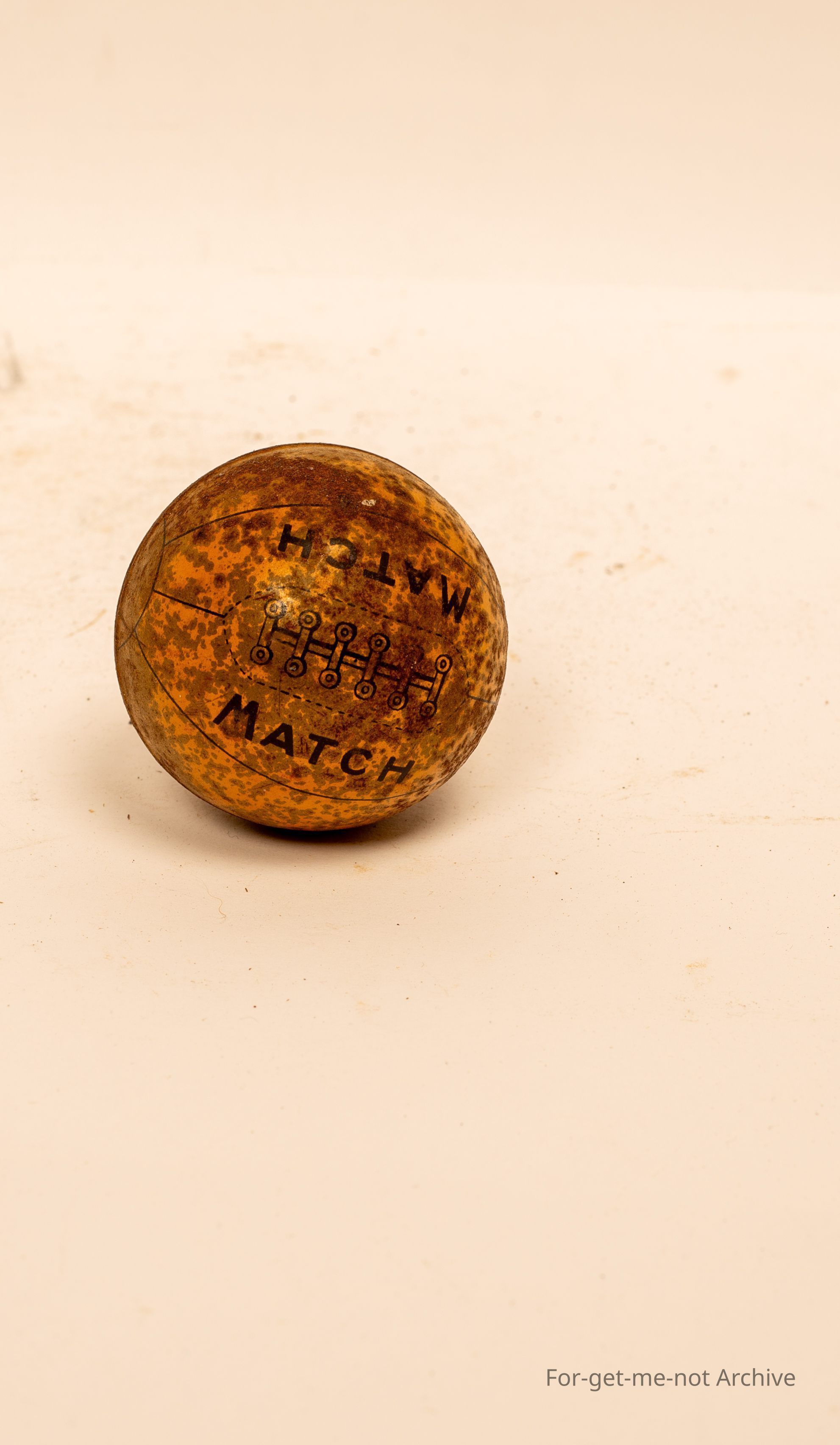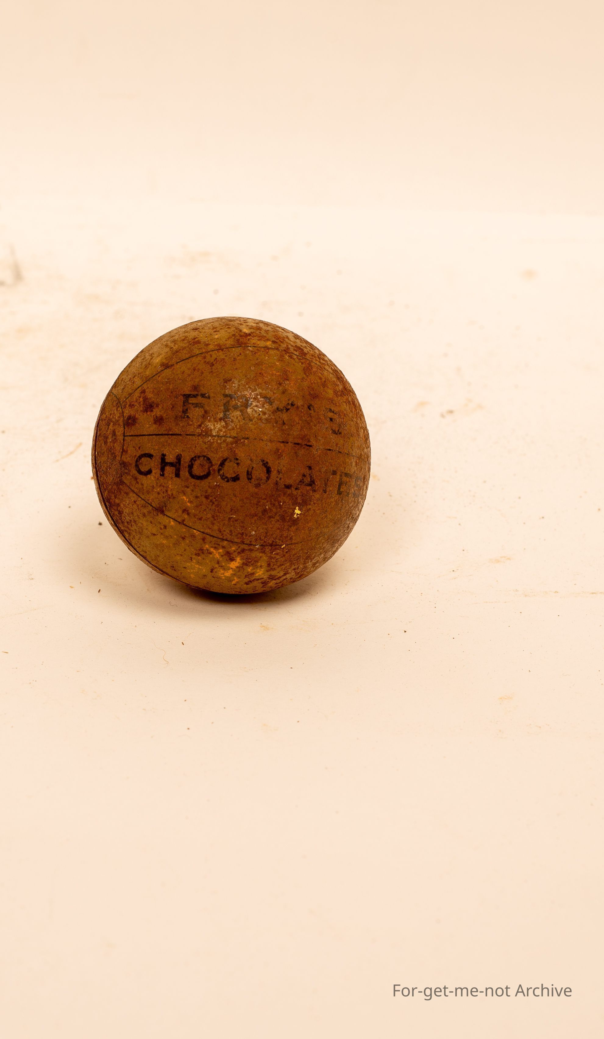 Fry's, chocolate tin, in the shape of a soccer ball called Match, in very down condition, but a rare item.