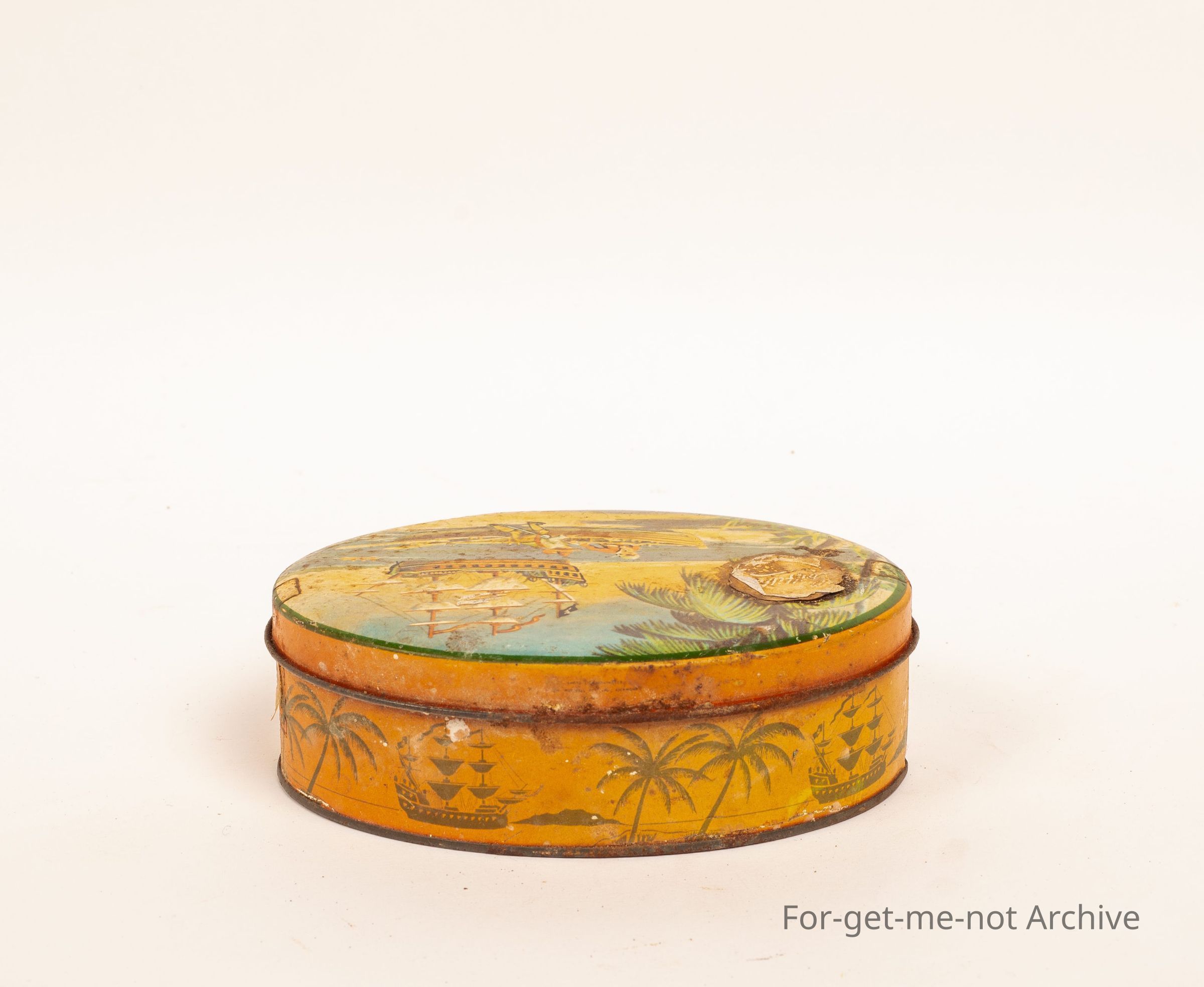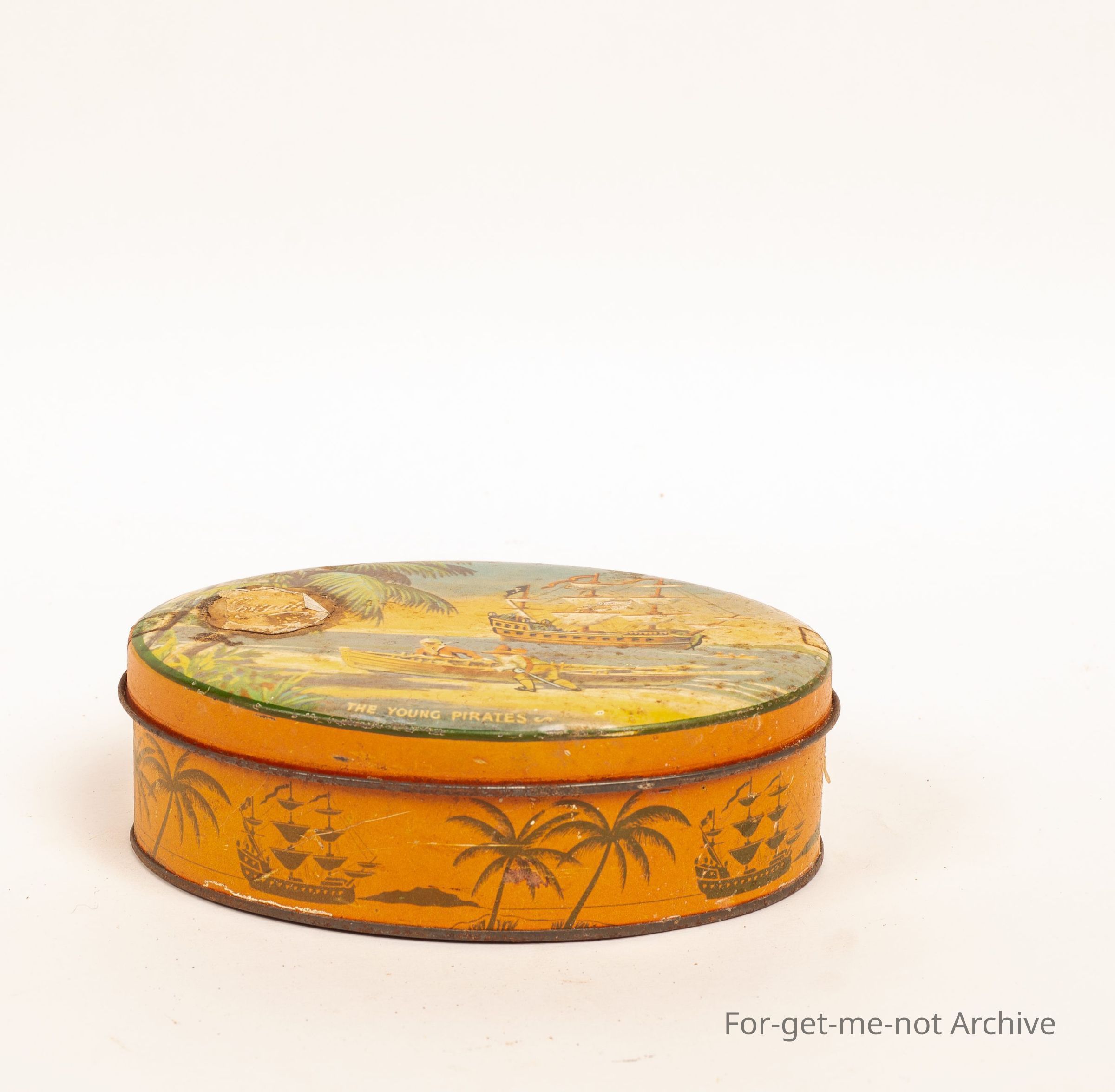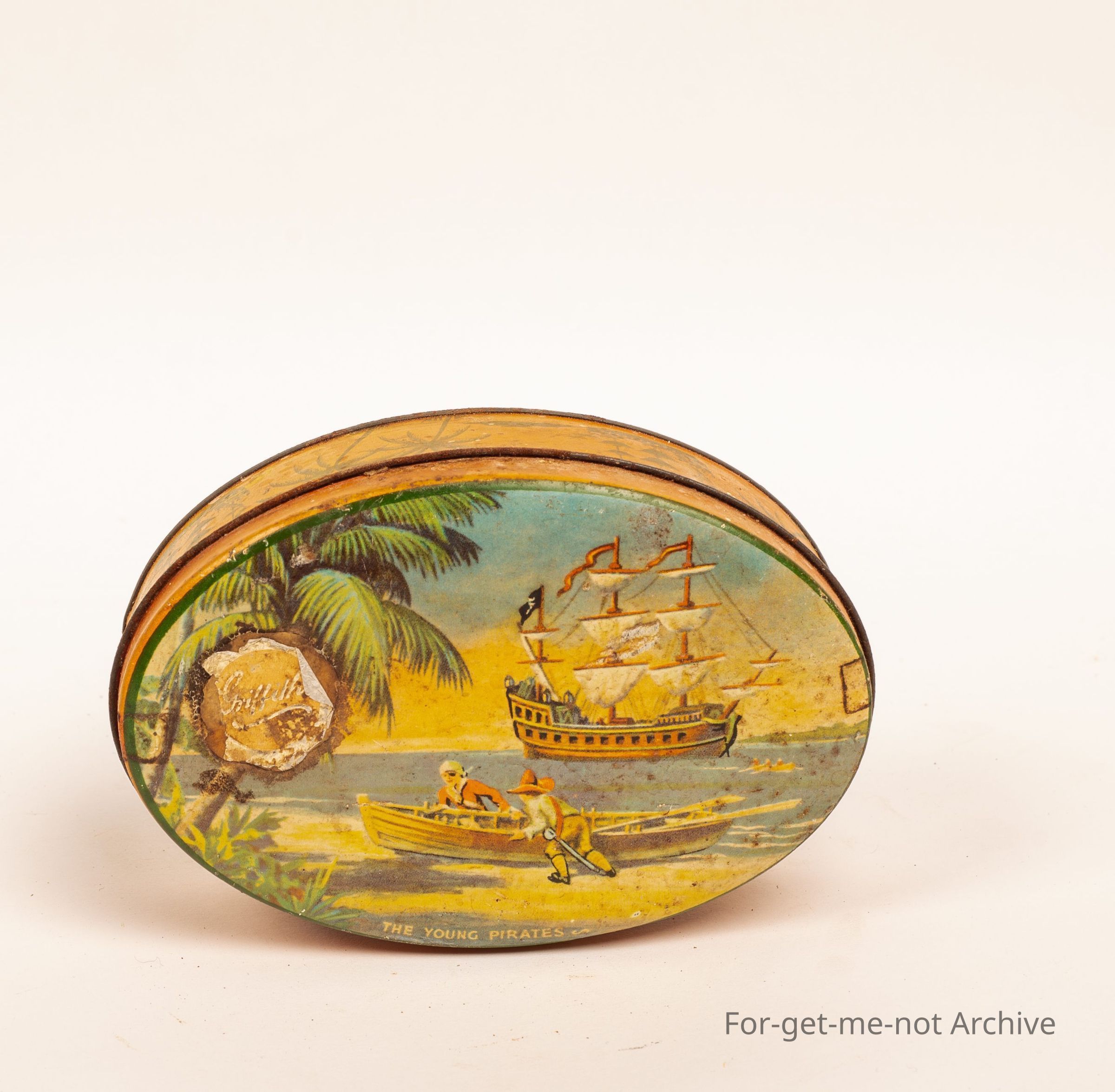 Griffiths tin featuring pirates on the lid, oval tin