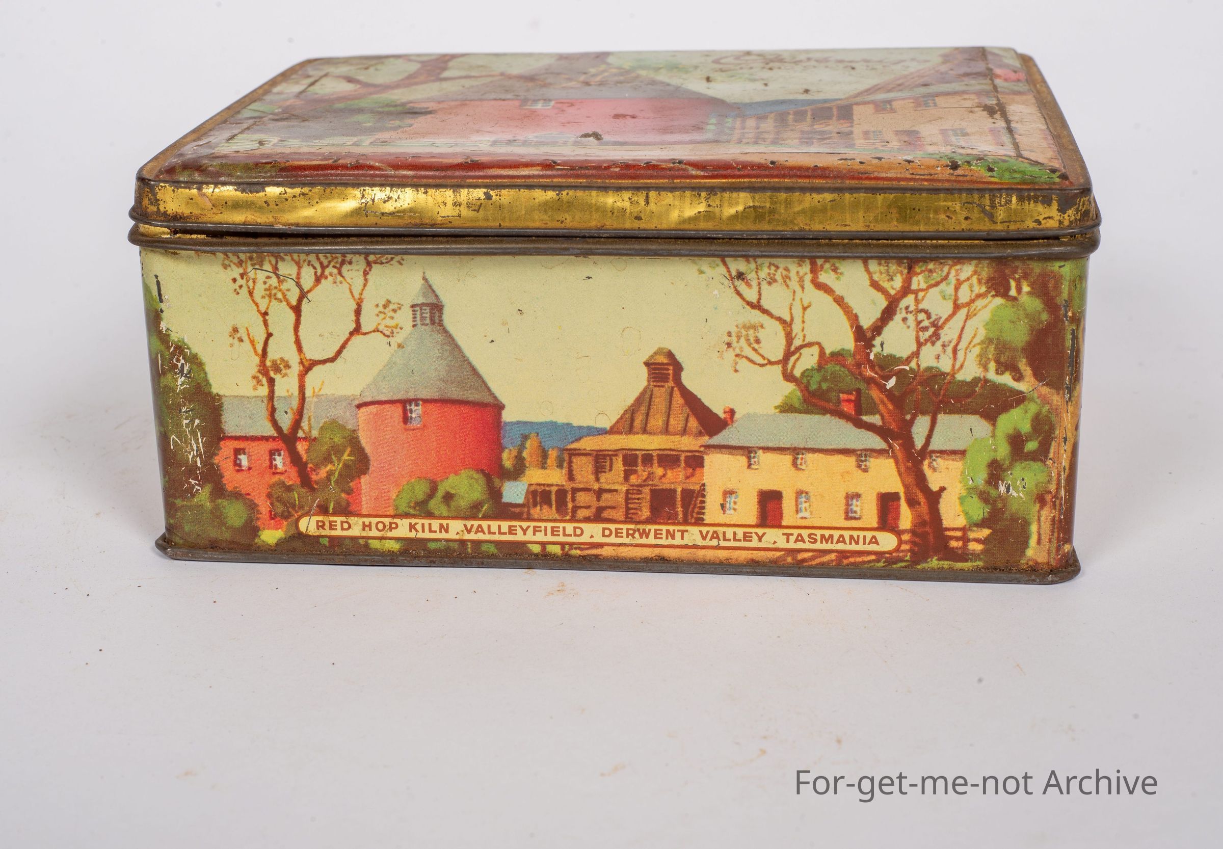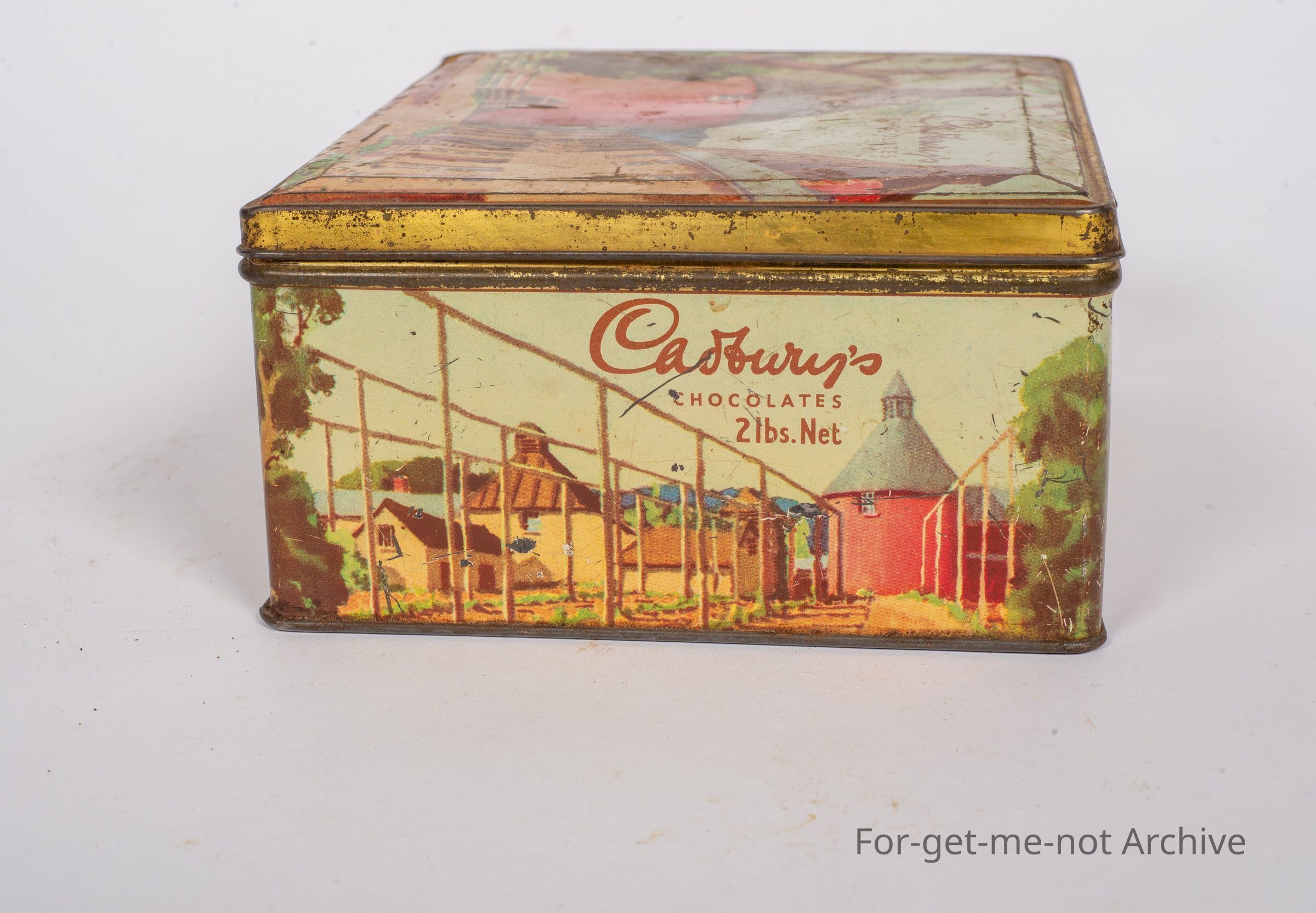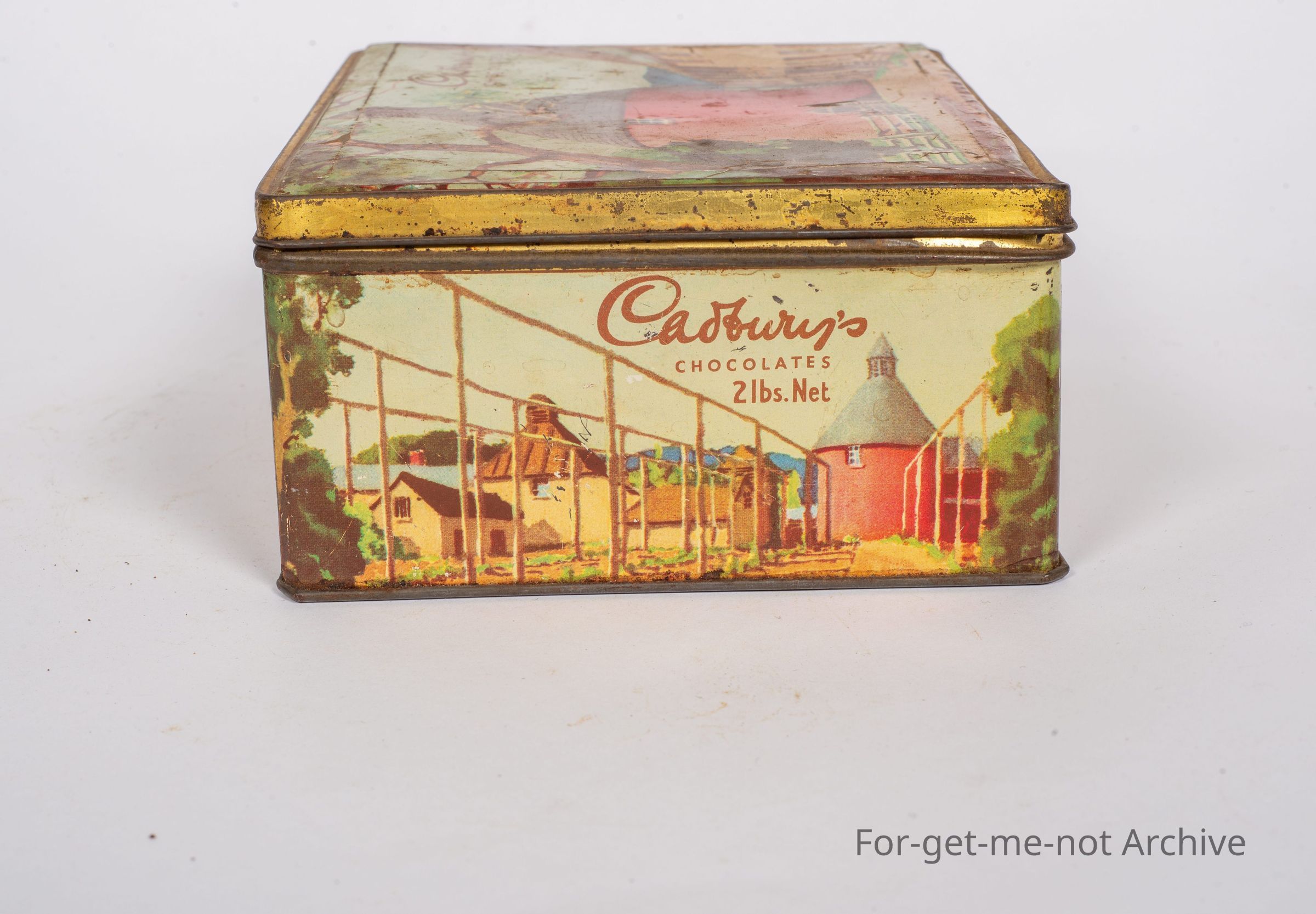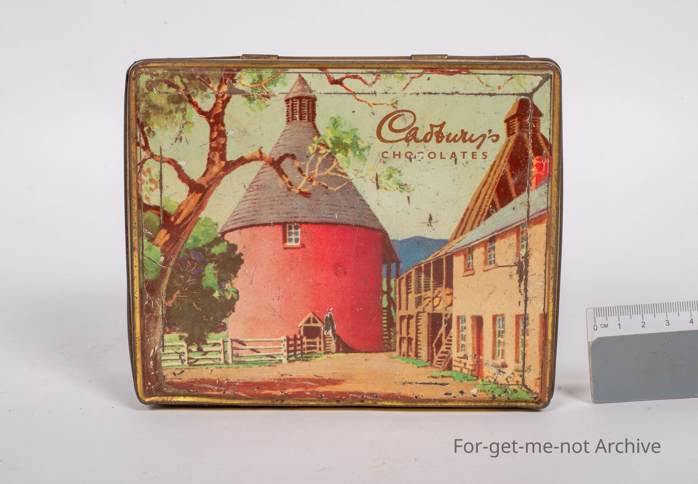 A Cadbury's Chocolates Tin. This is the images of the Red Hawk Kiln Valleyfield, Derwent Valley, Tasmania. The 2 pound tin, reasonable condition.