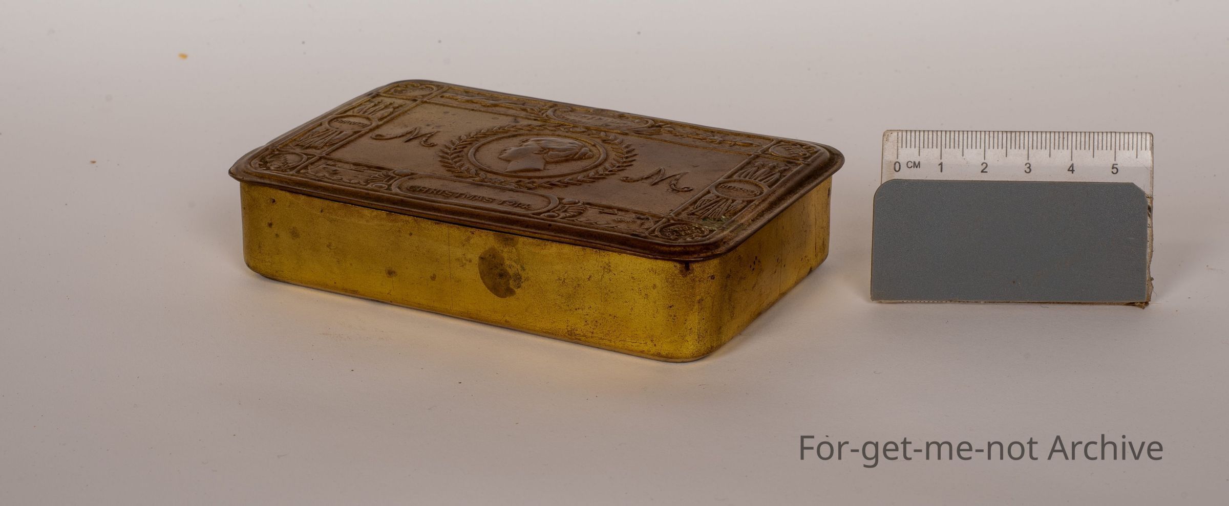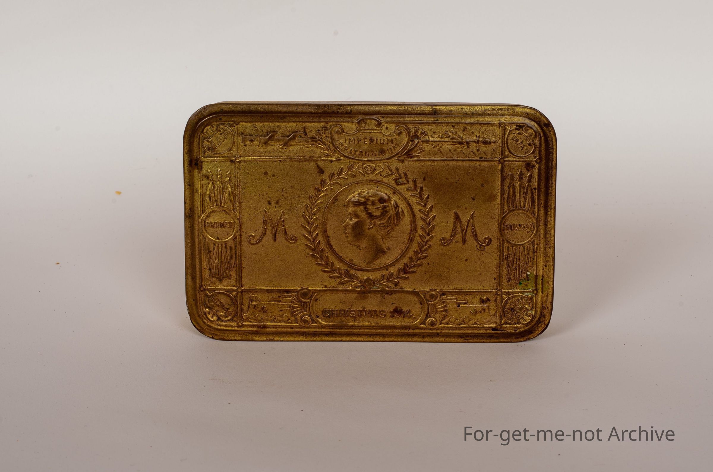This is a Christmas, tin sent to the soldiers 1914, in beautiful order, all made of, of brass preps with the countries all at war.
